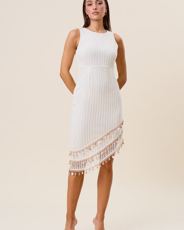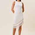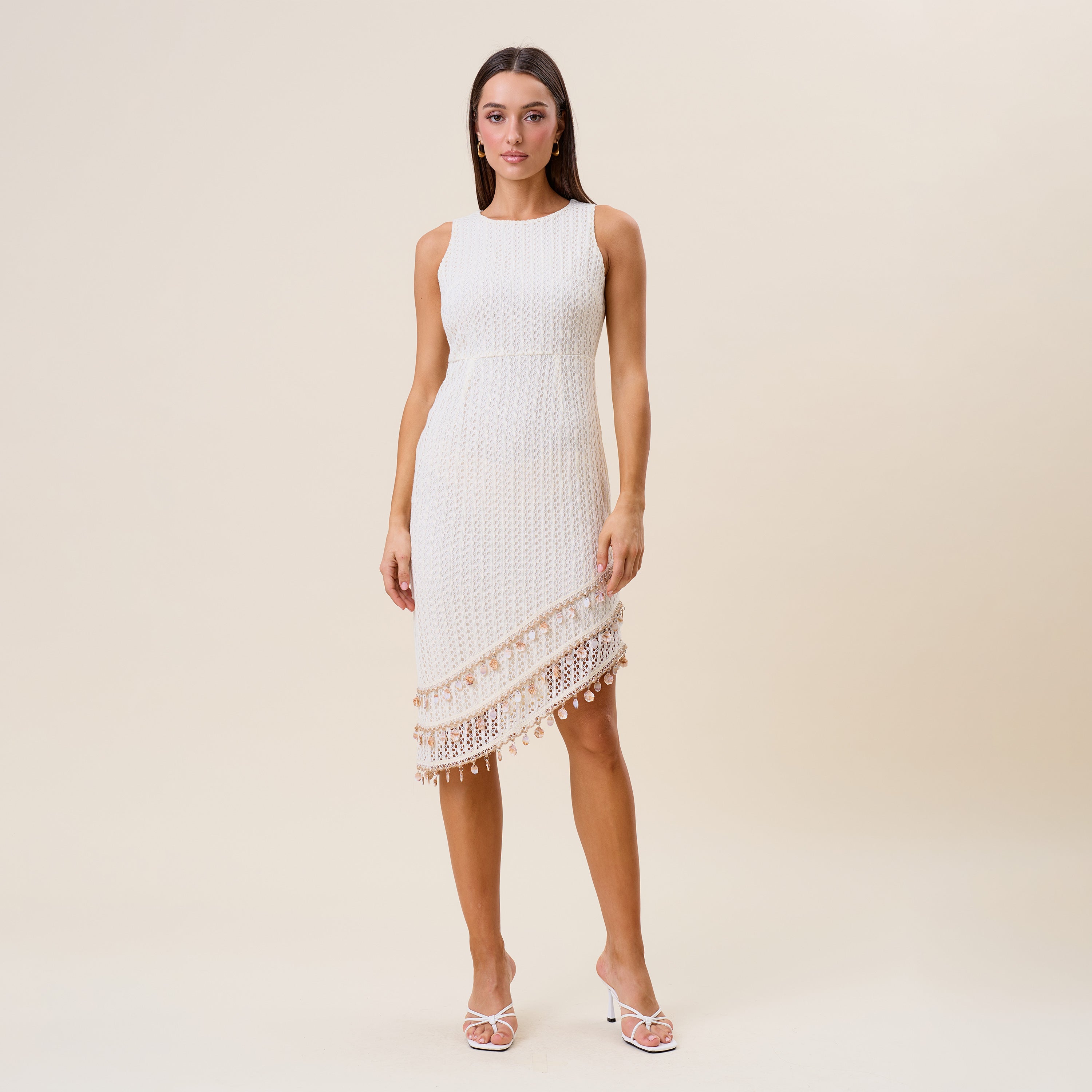 Embellished asymmetric midi dress