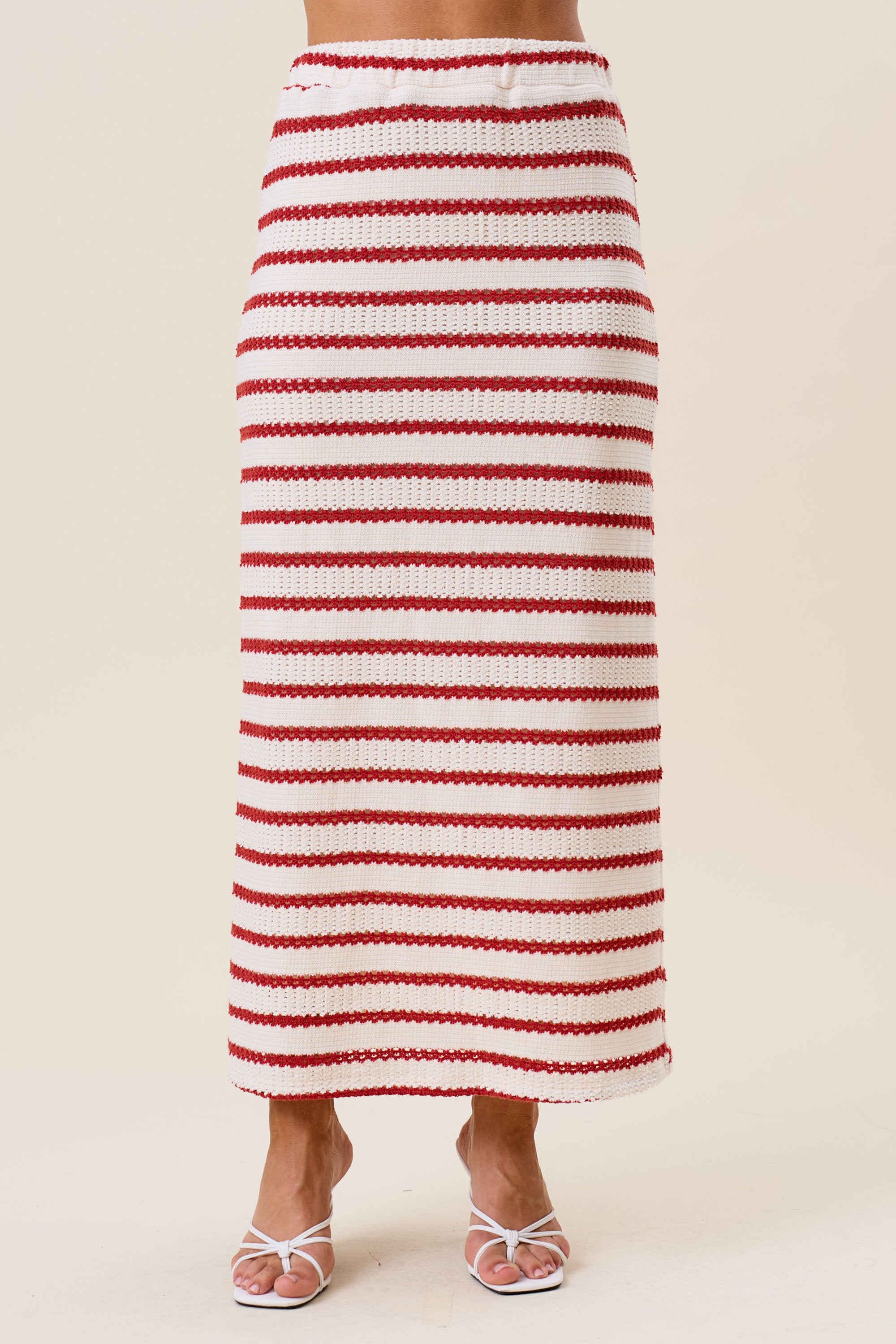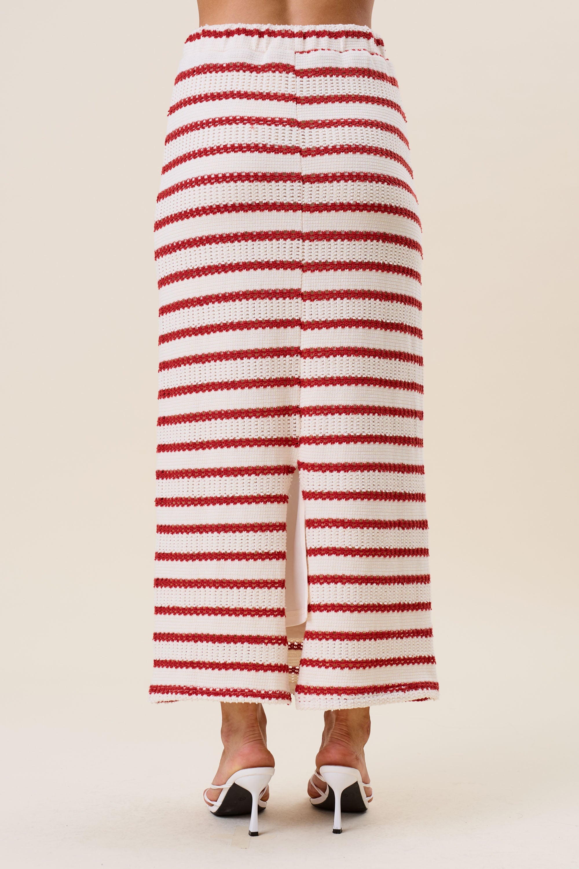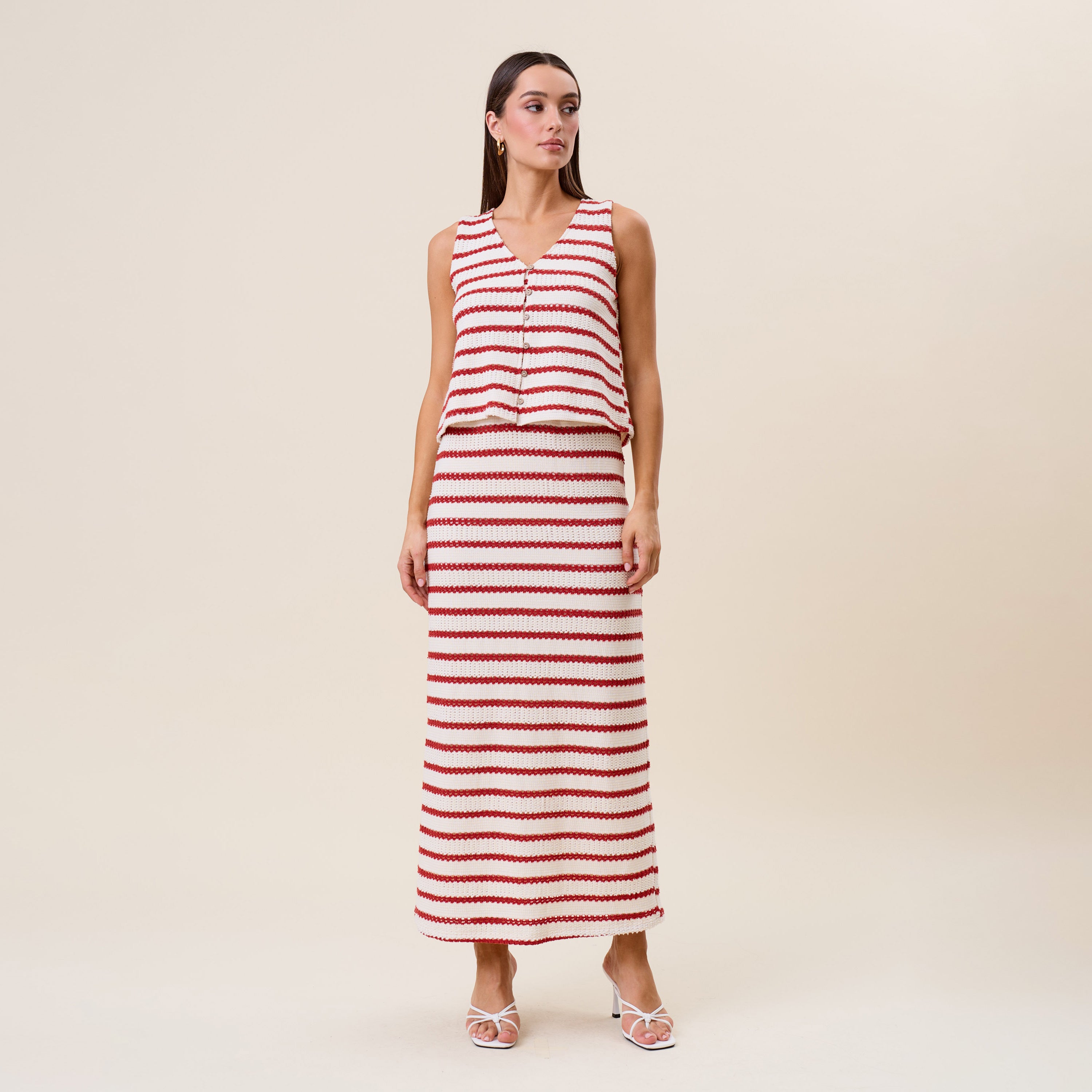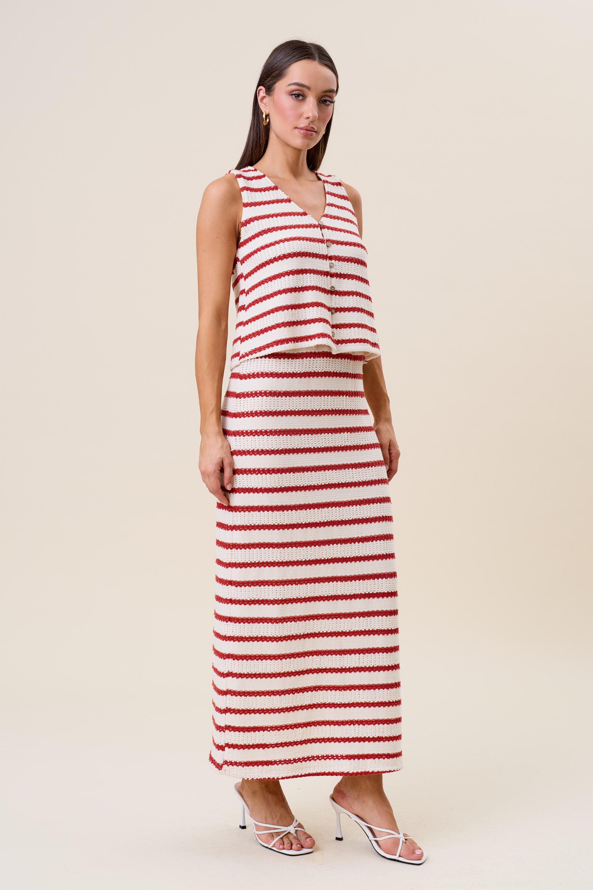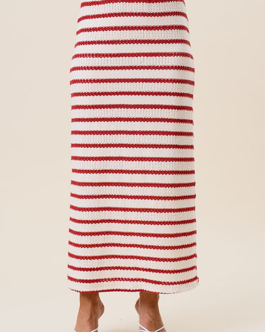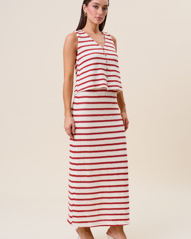 Striped openwork knit vest & skirt set