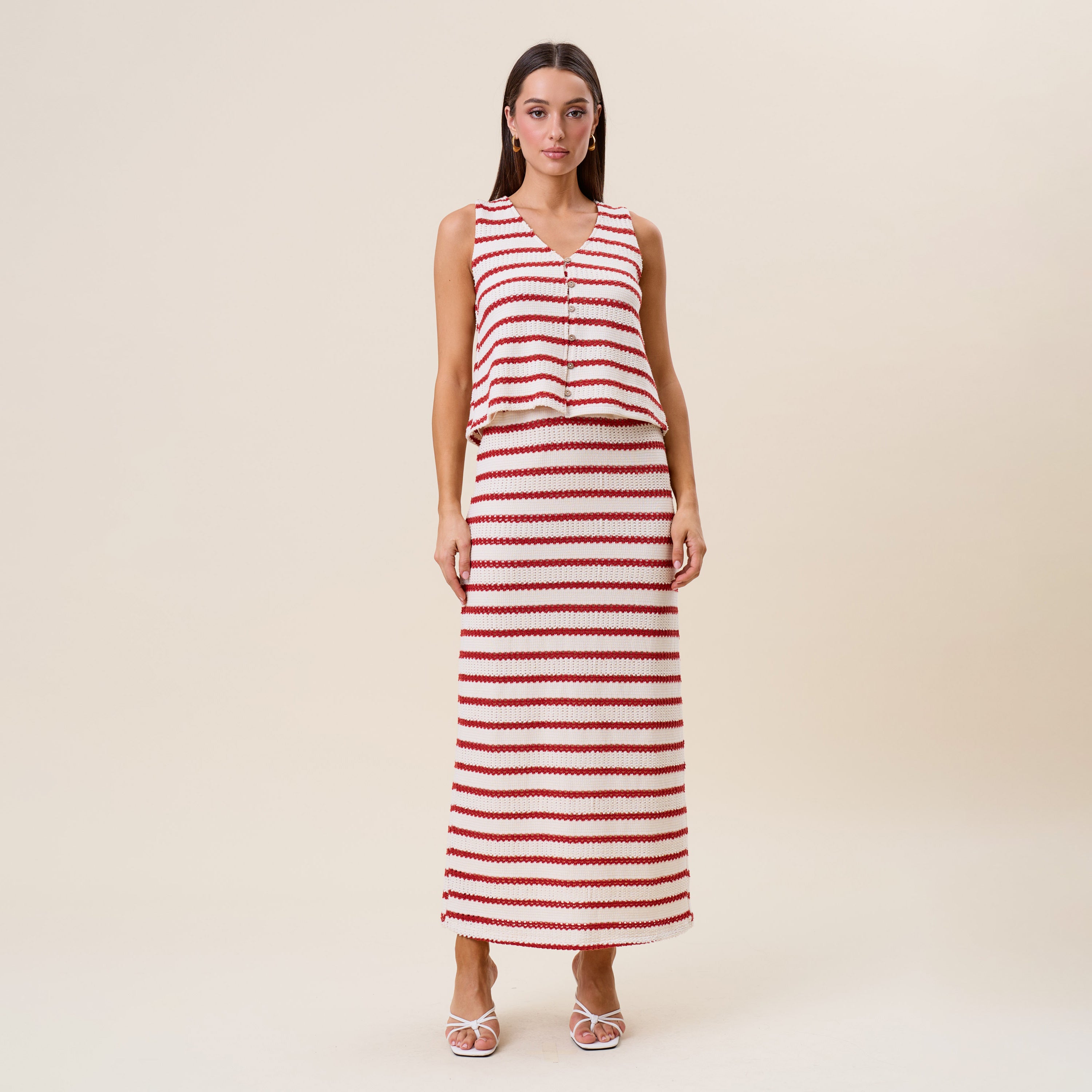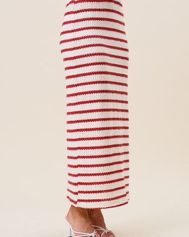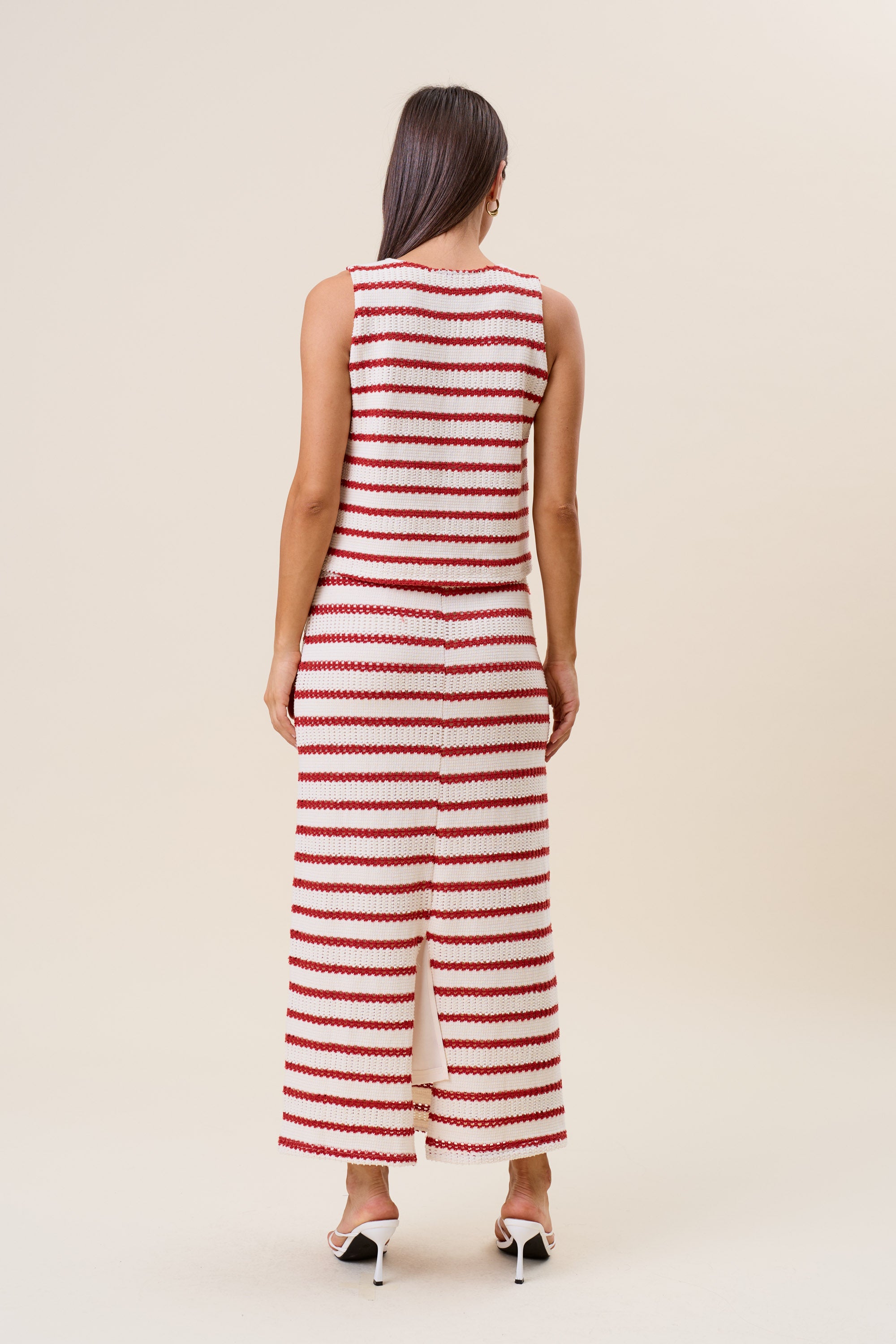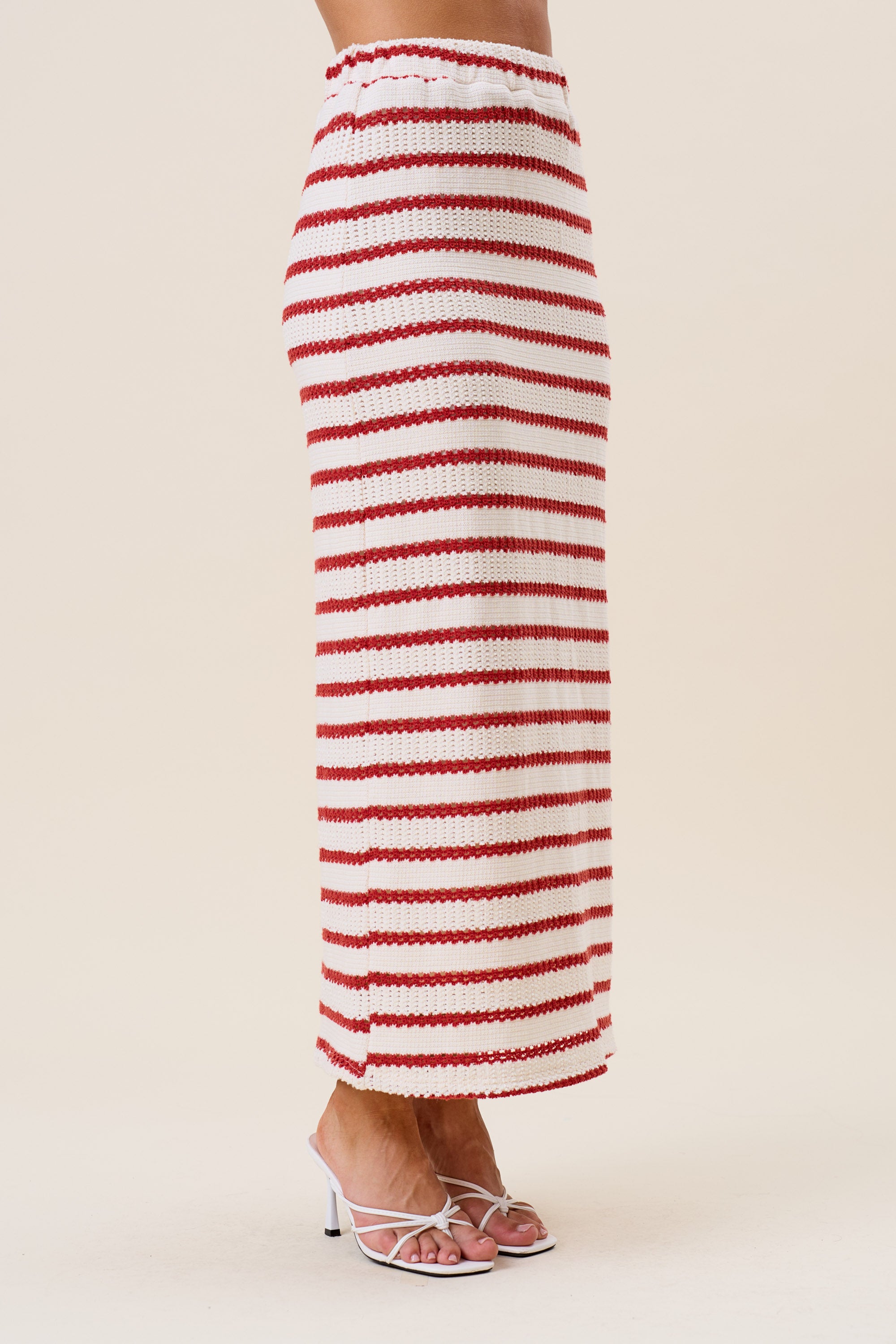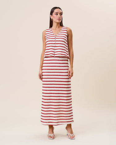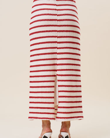 Striped openwork knit vest & skirt set