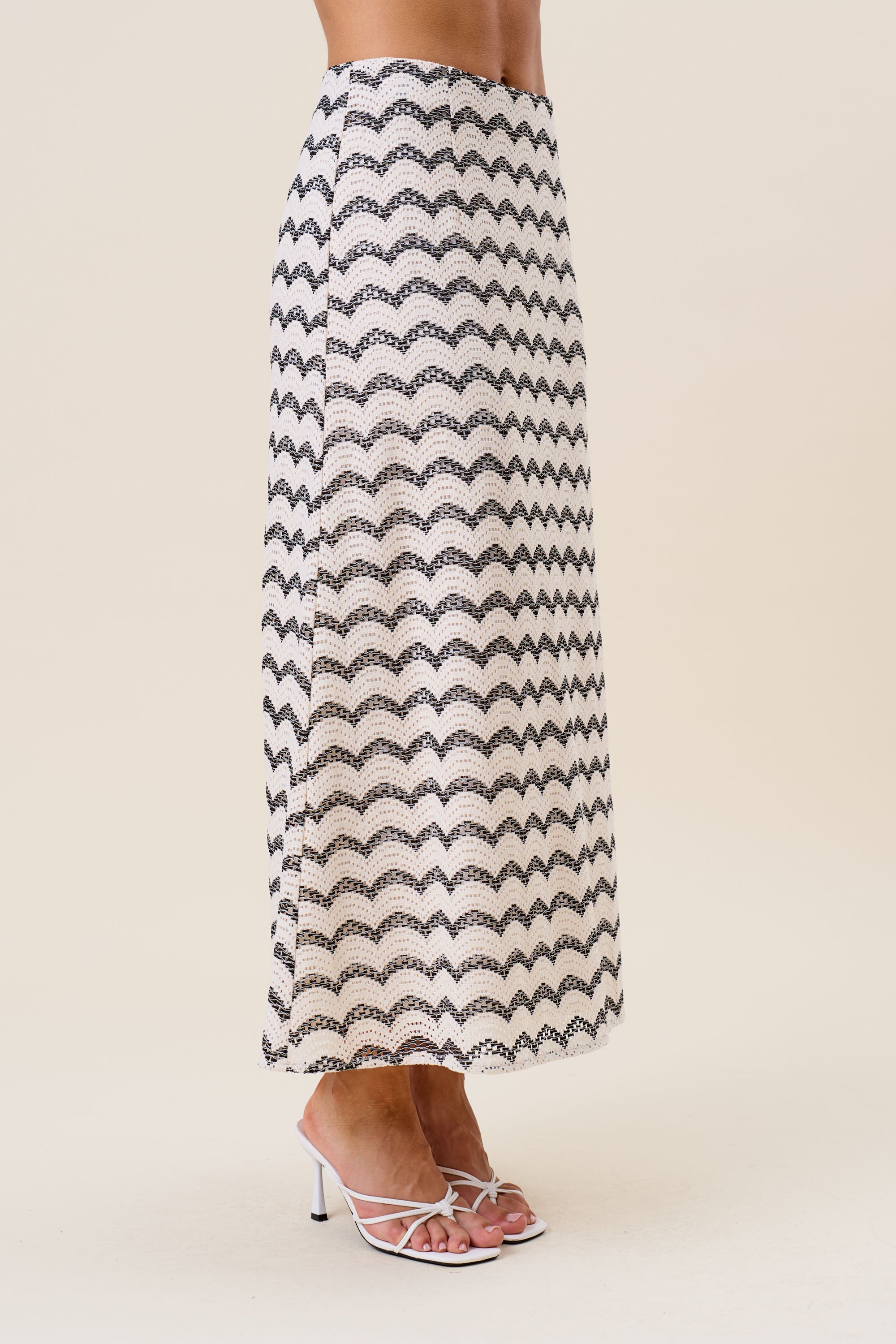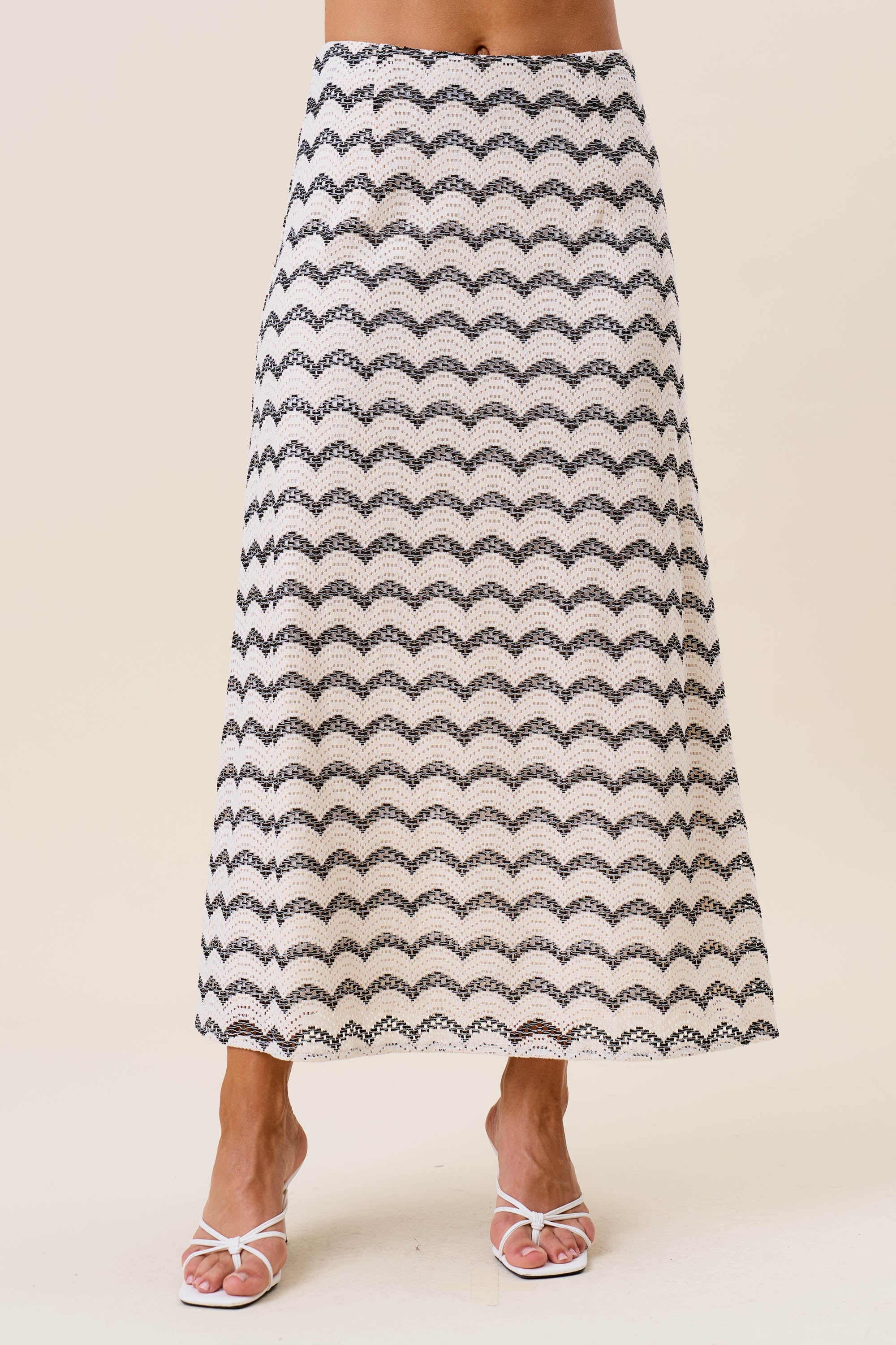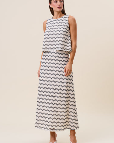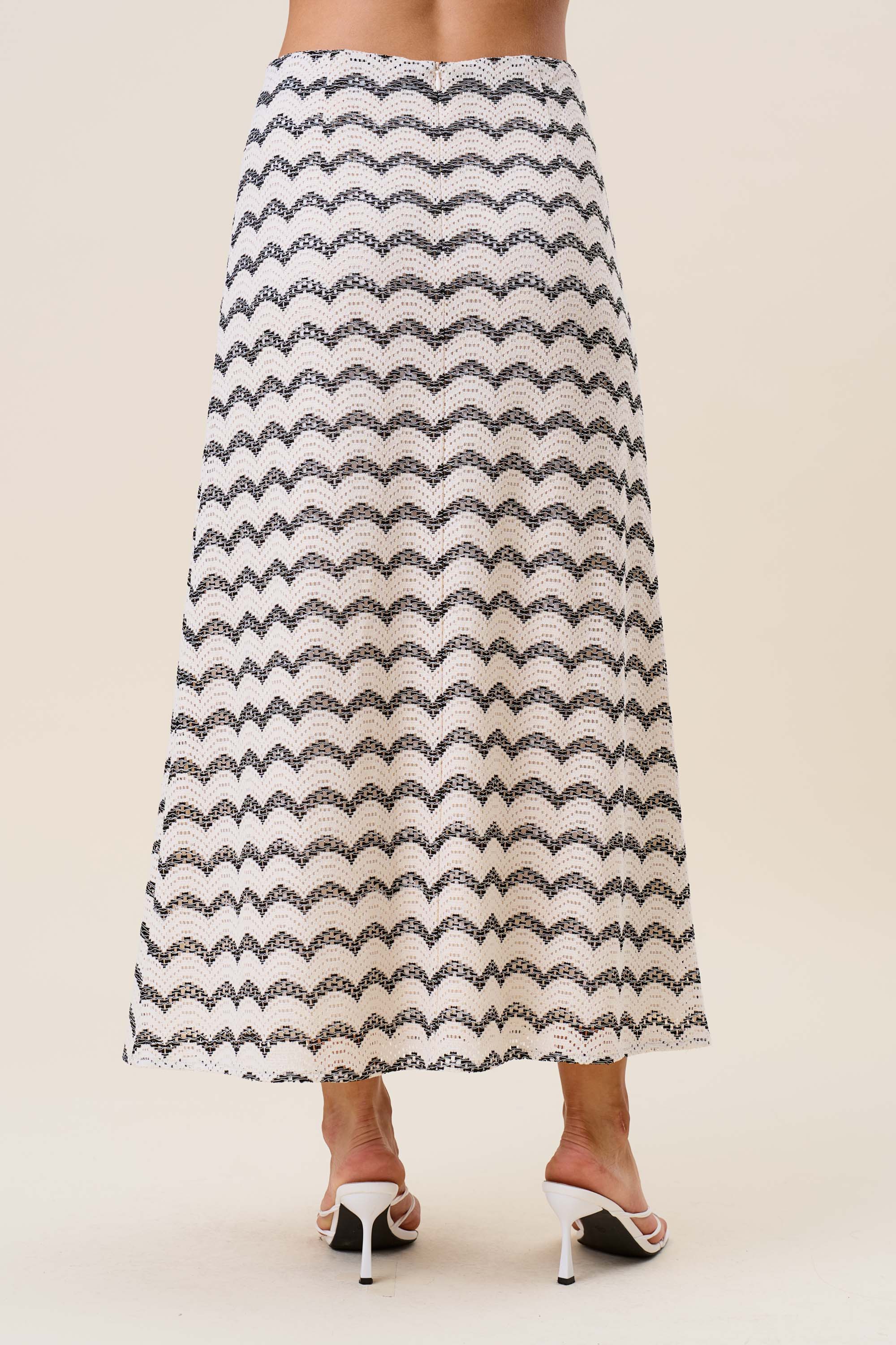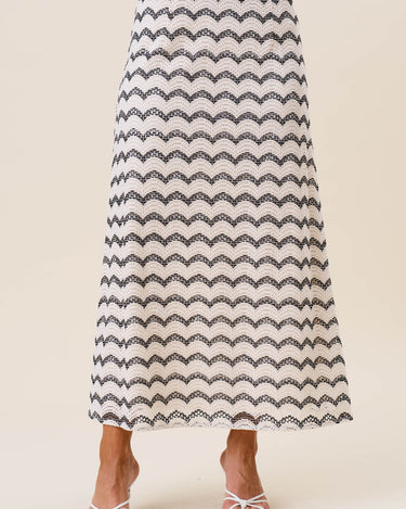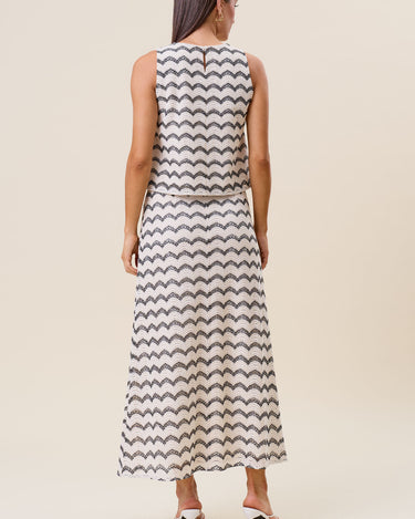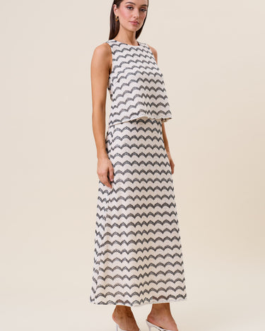 Wavy stripe lace top & skirt set
