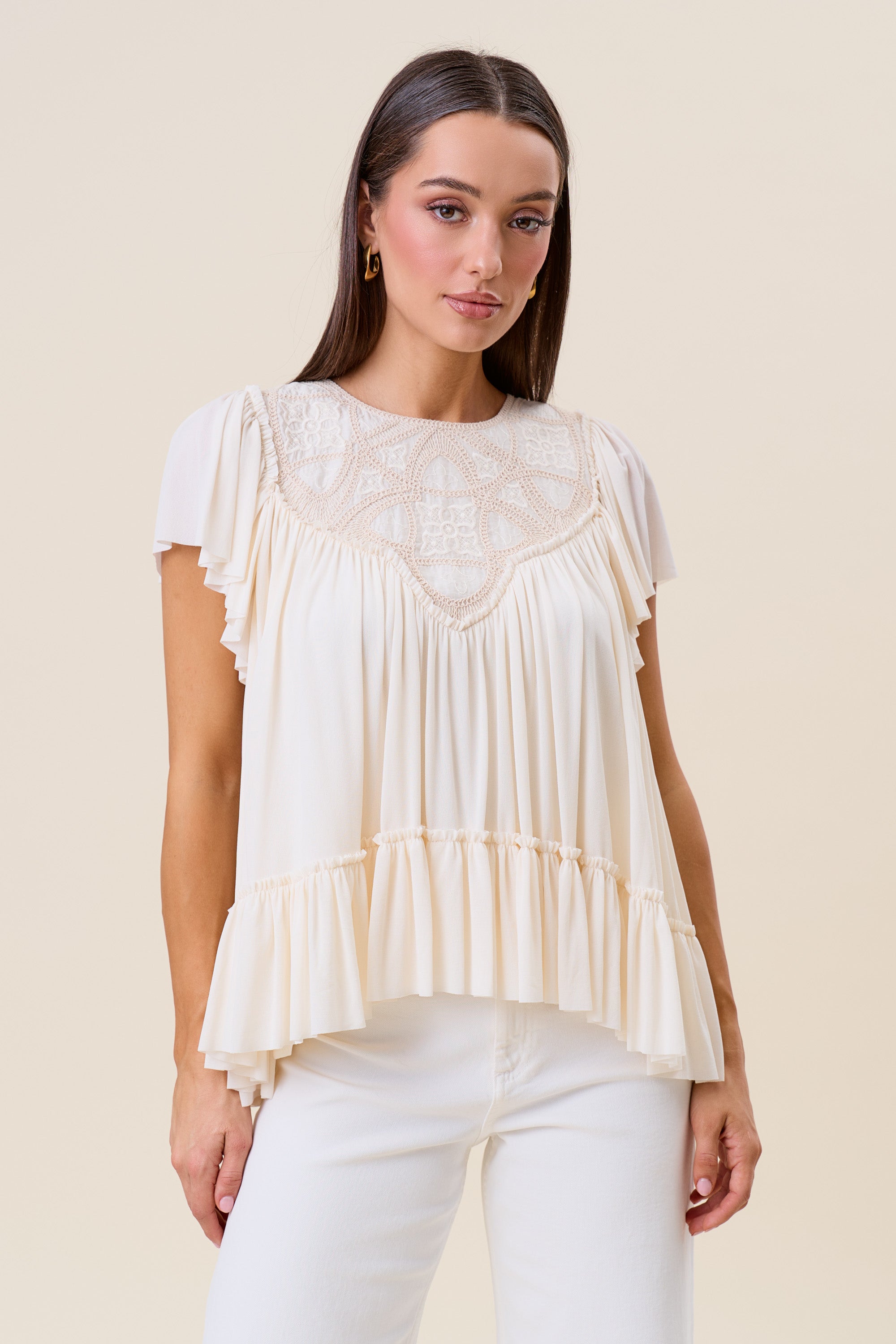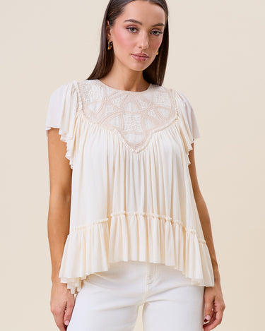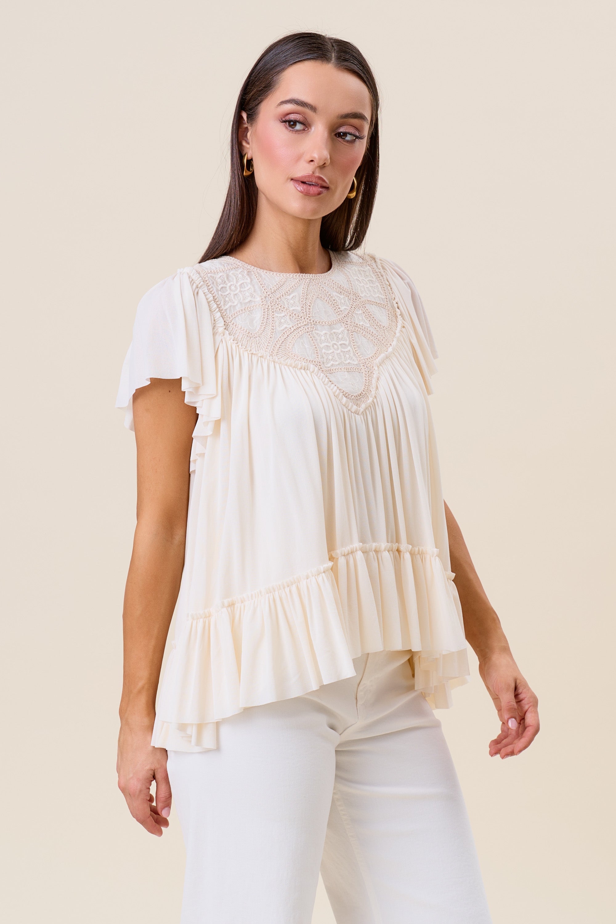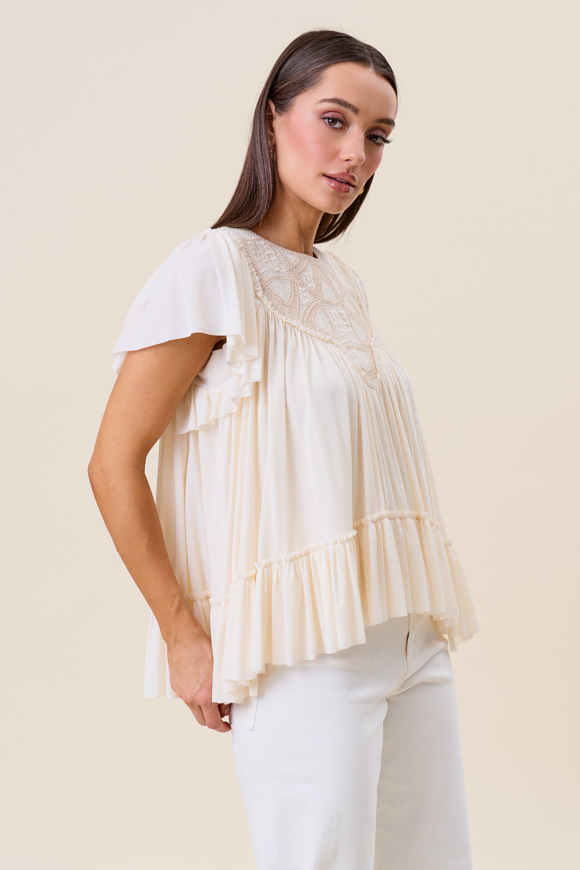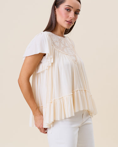 Embroidered ruffle blouse
