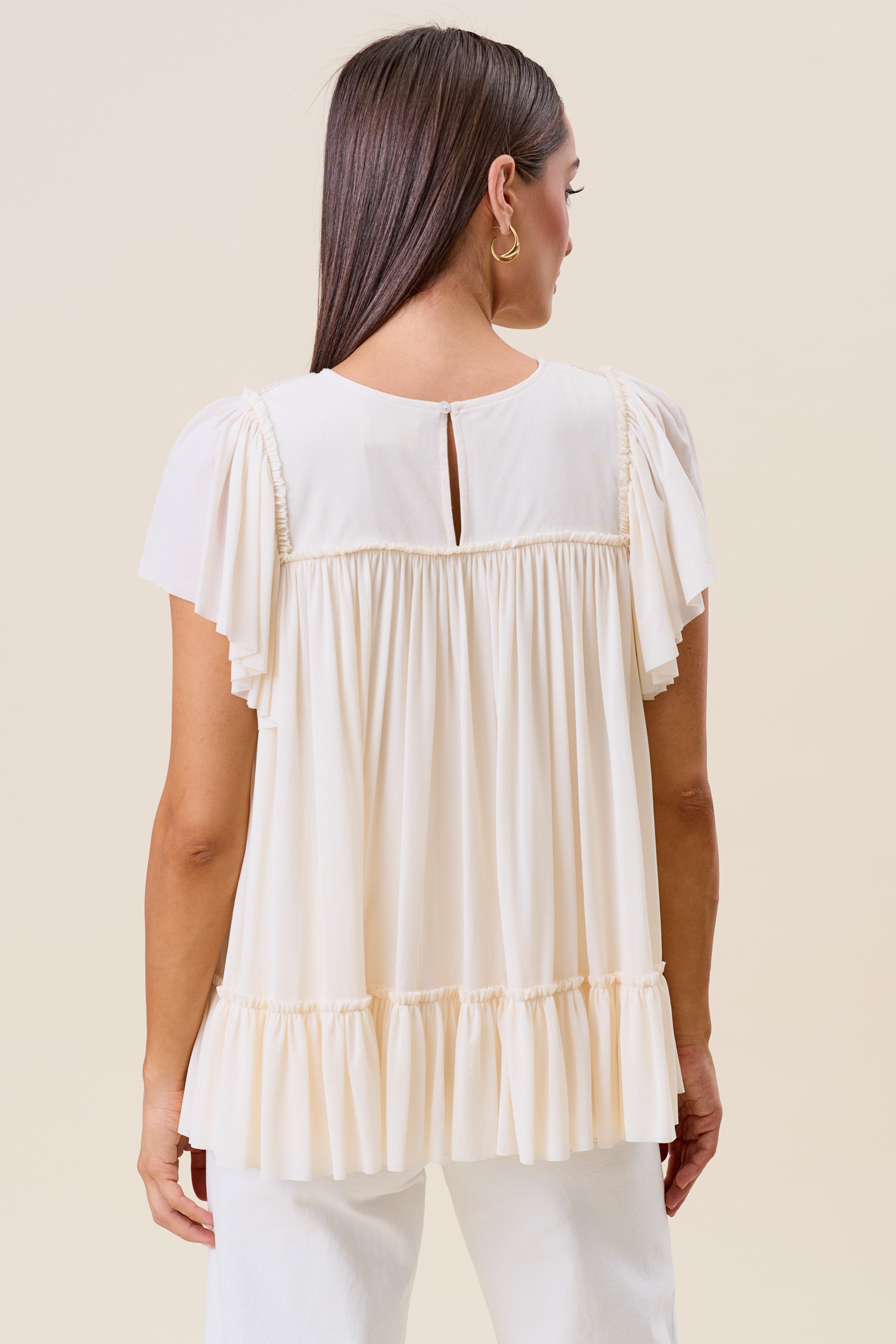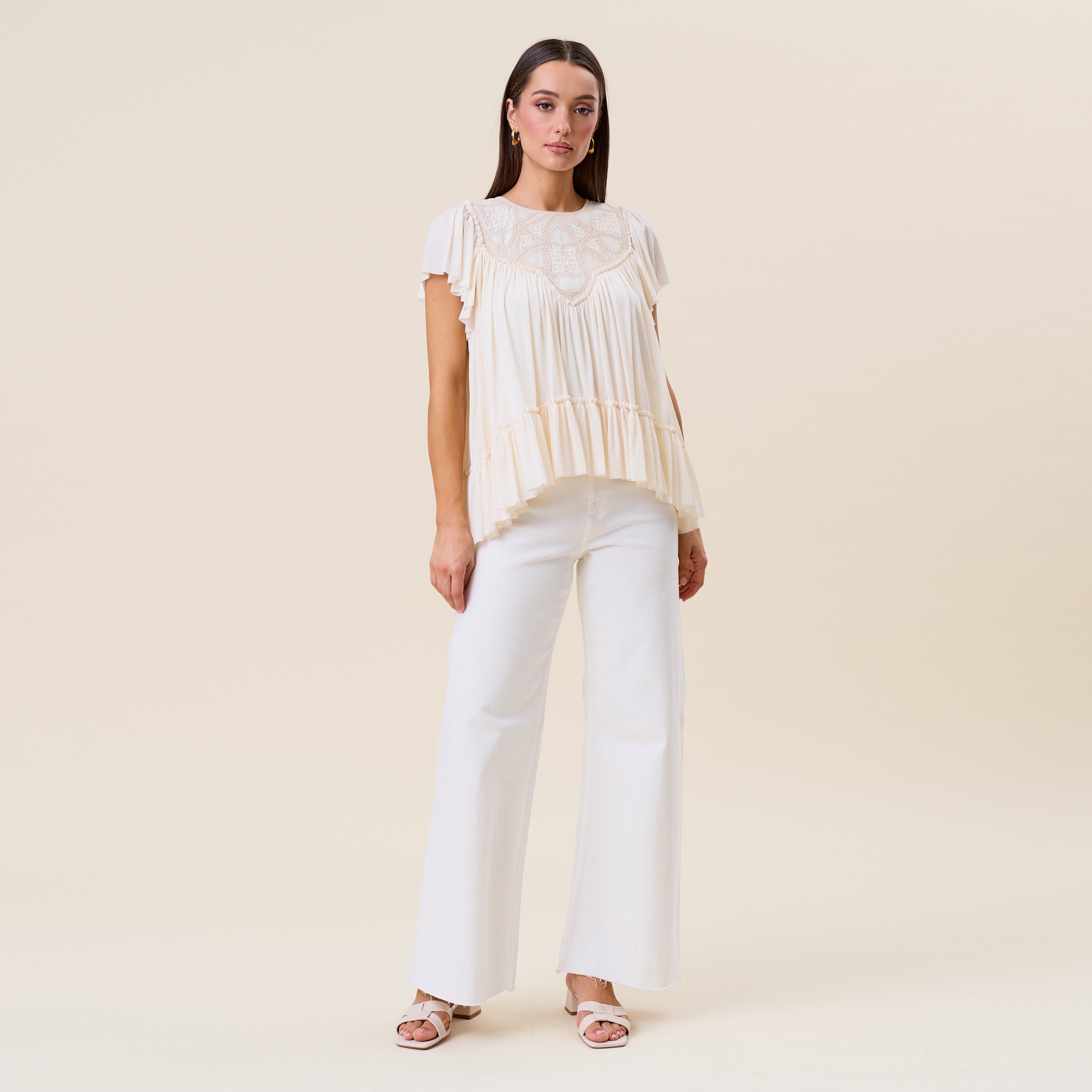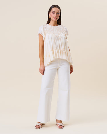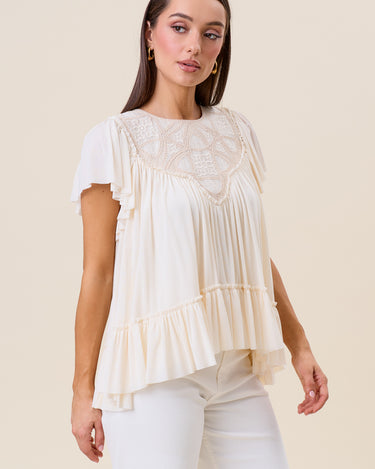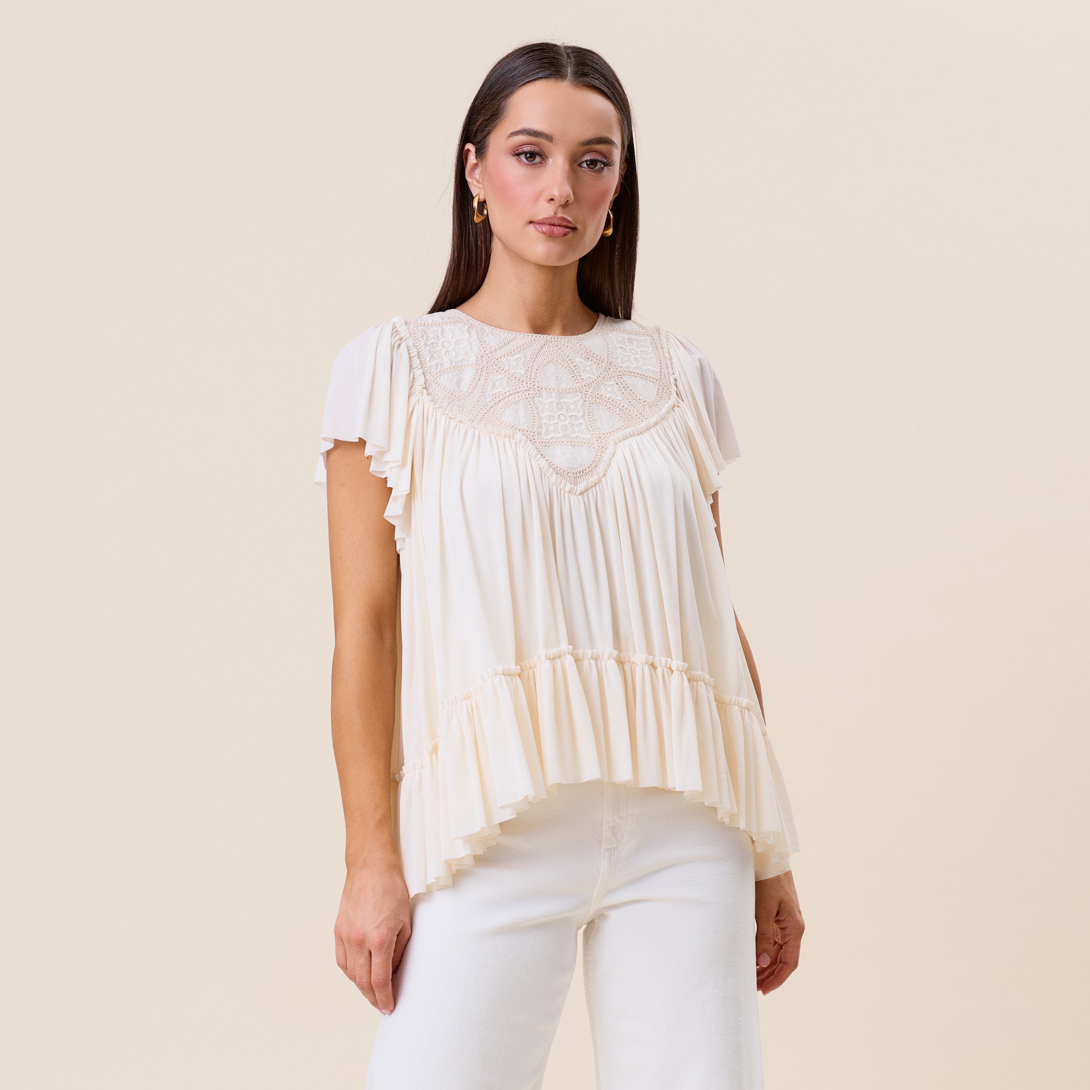Embroidered ruffle blouse