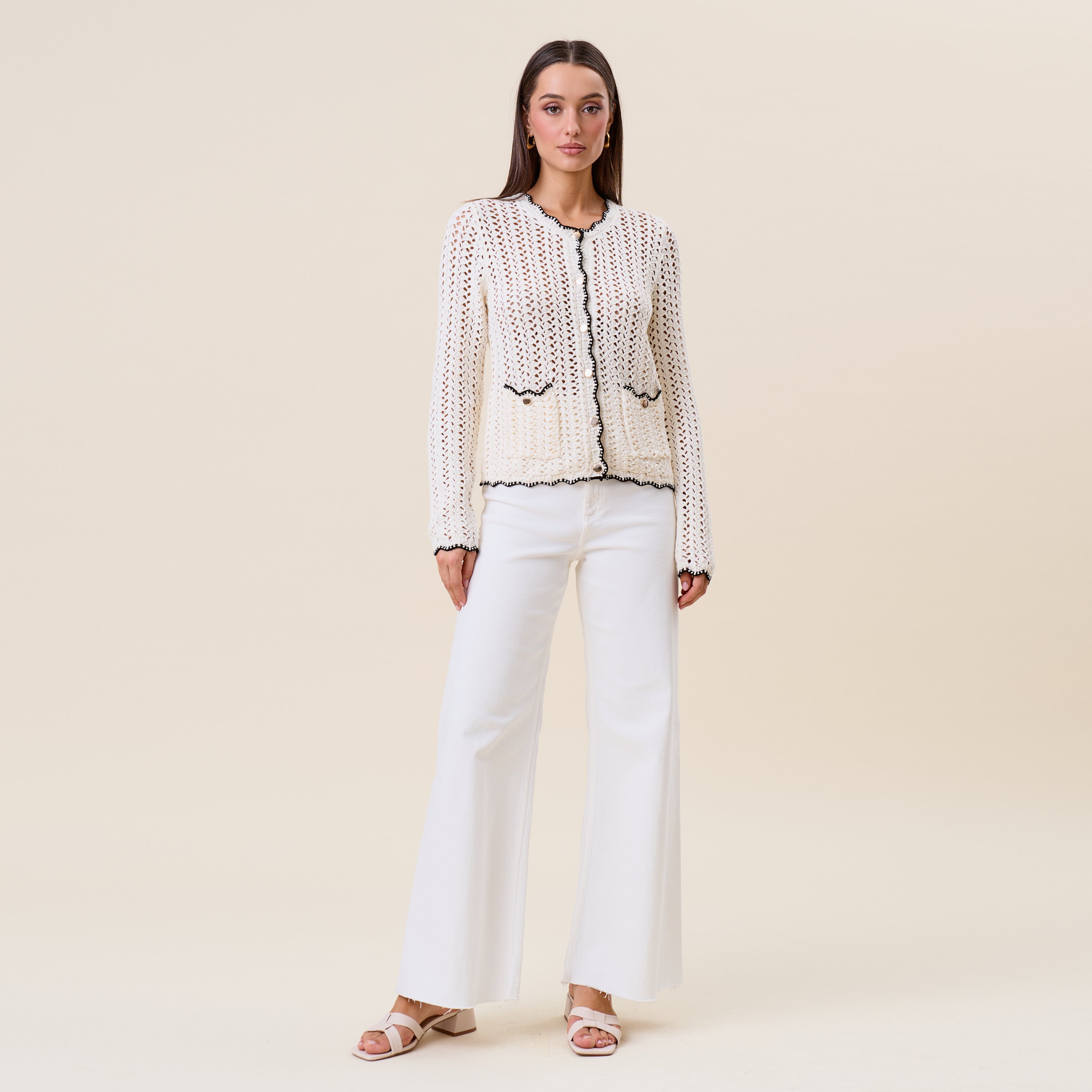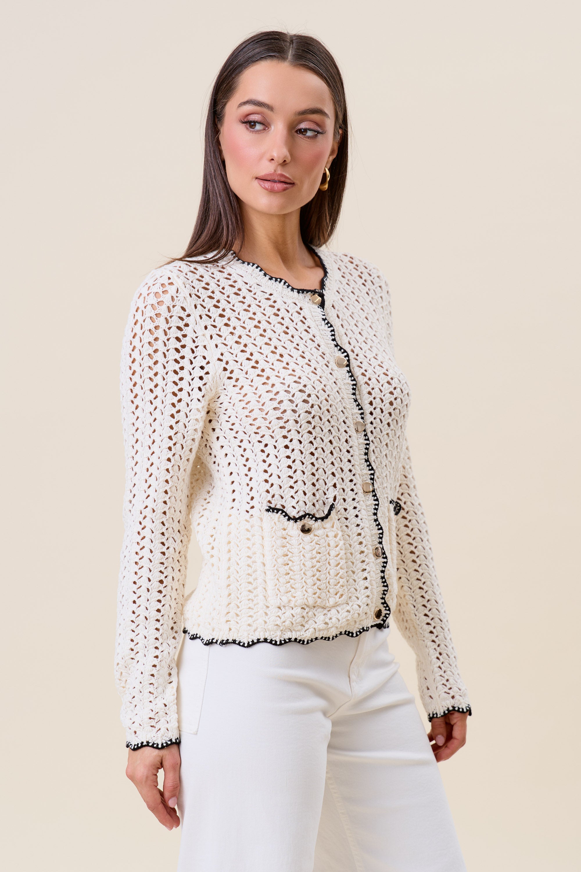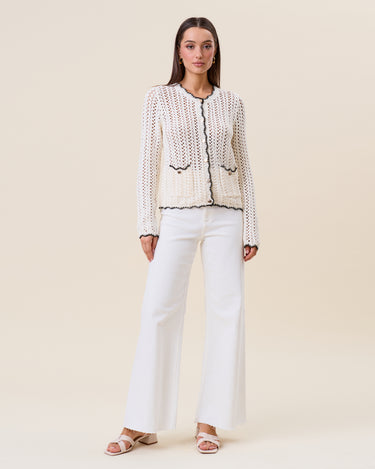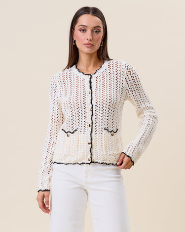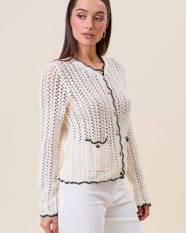Openwork contrast knit cardigan