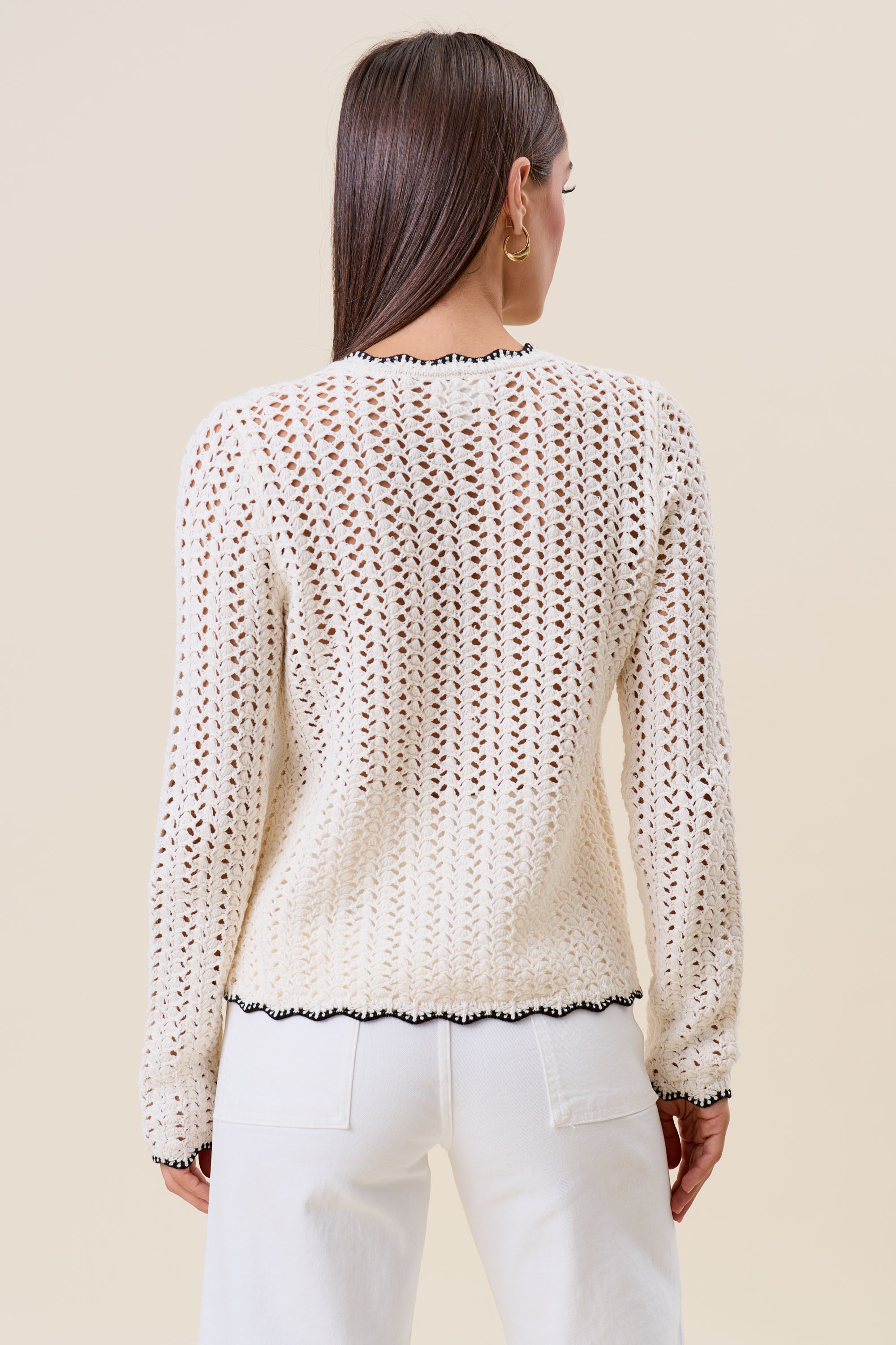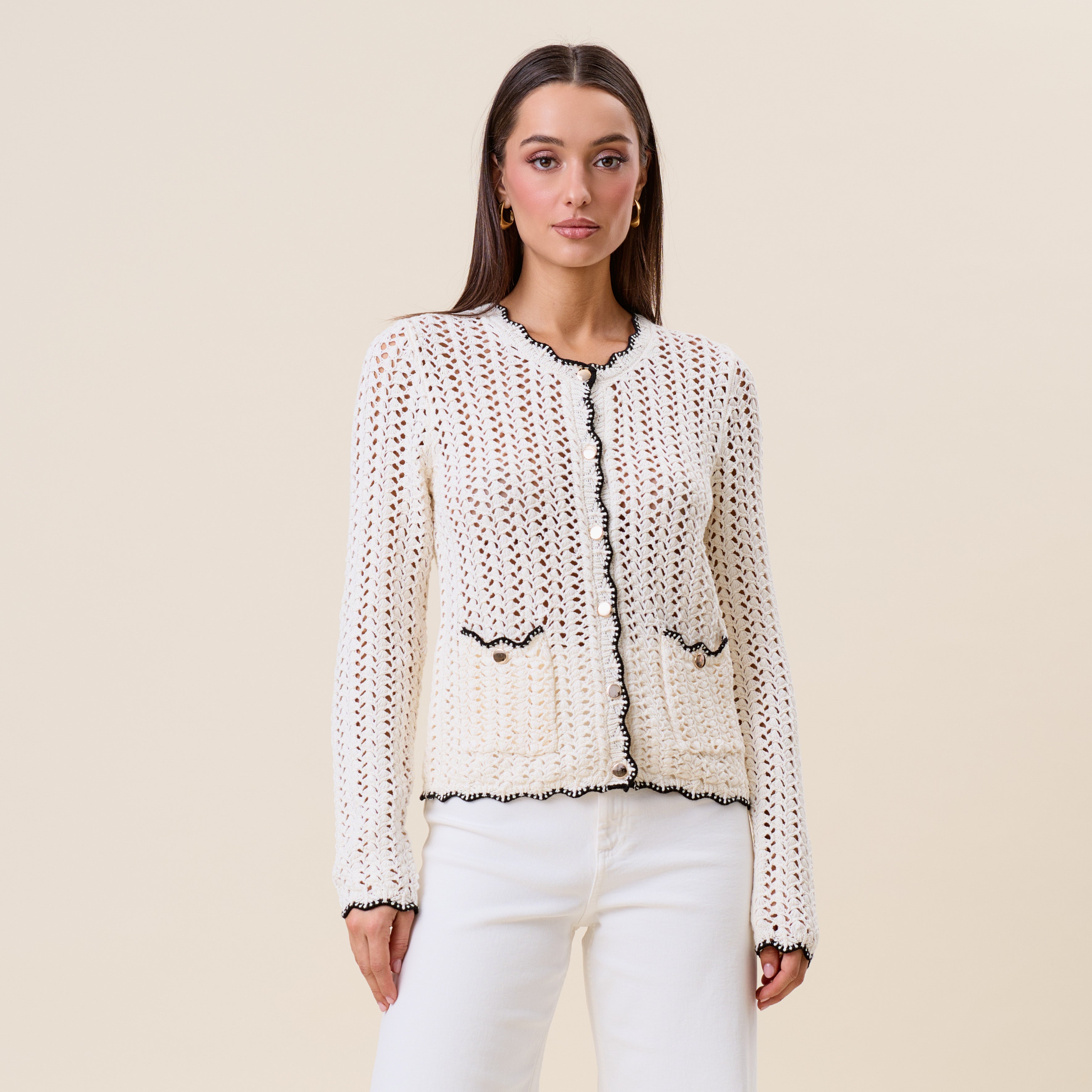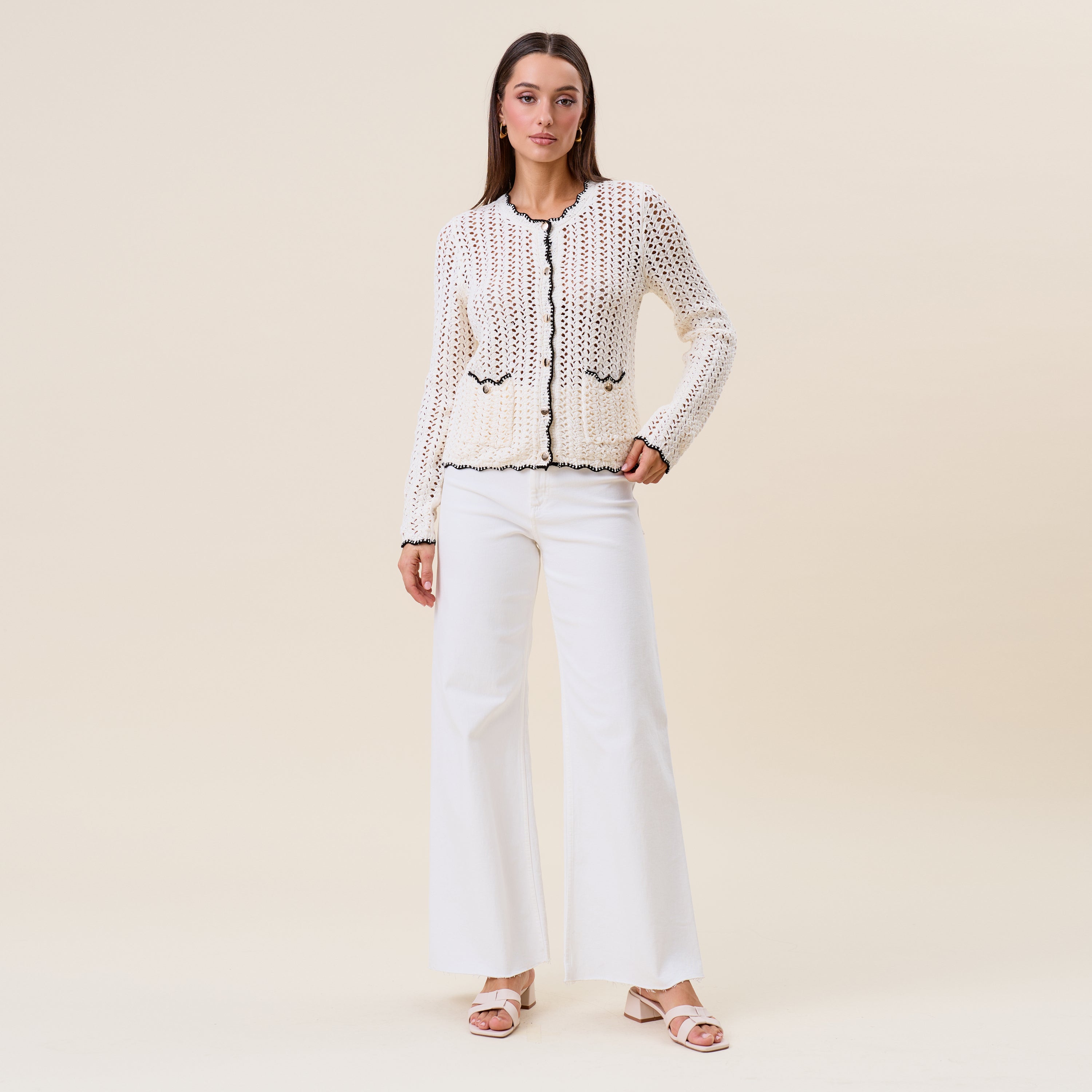 Openwork contrast knit cardigan