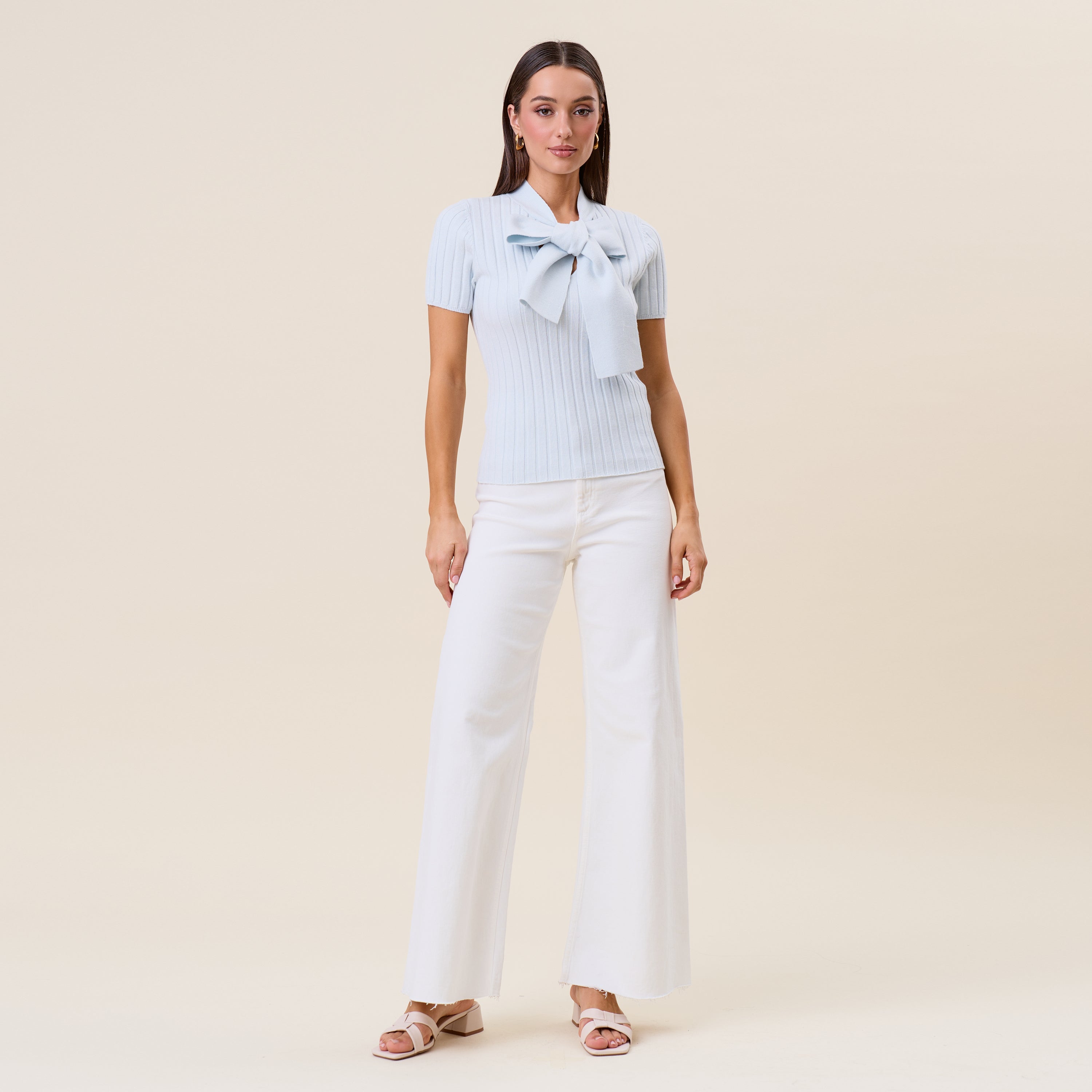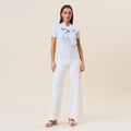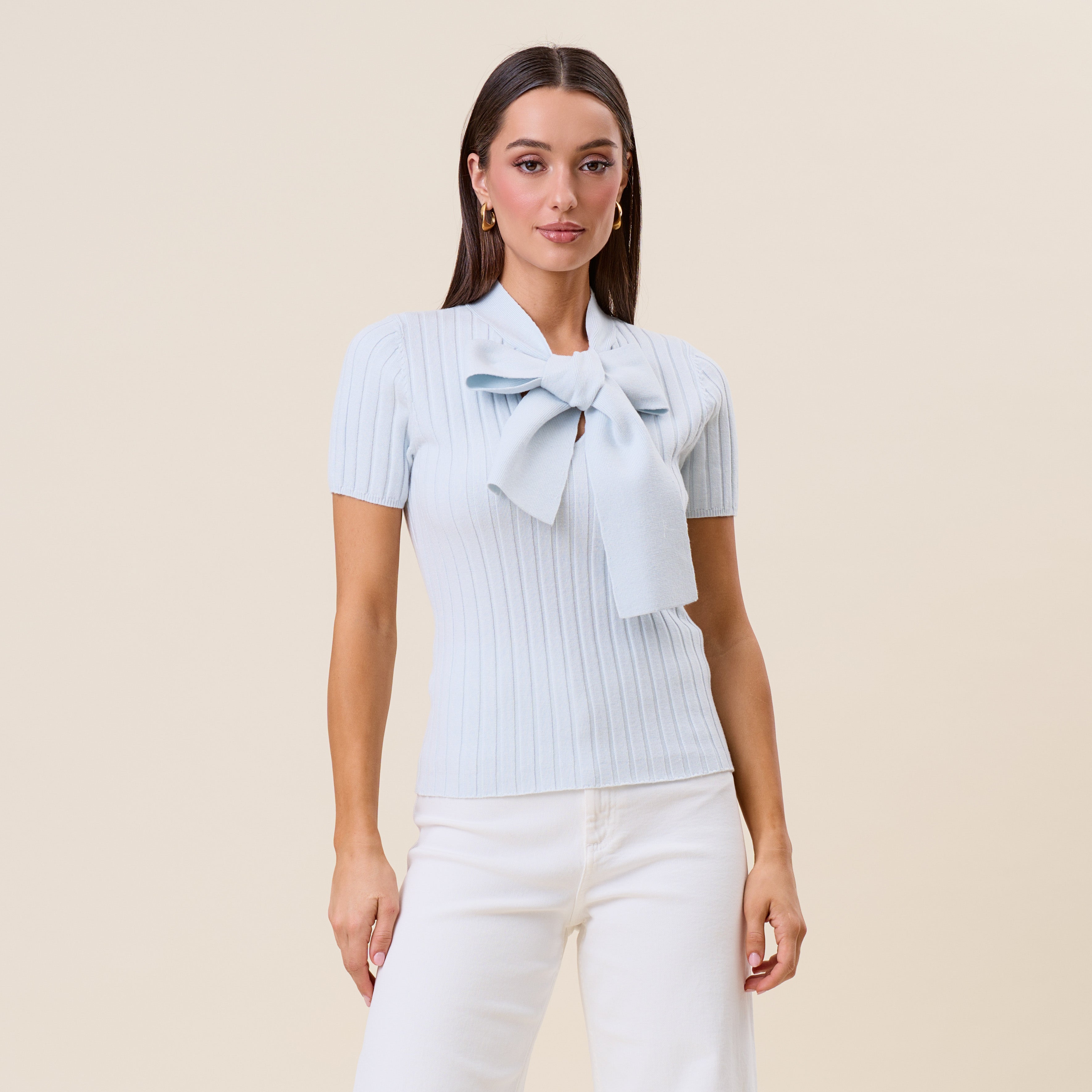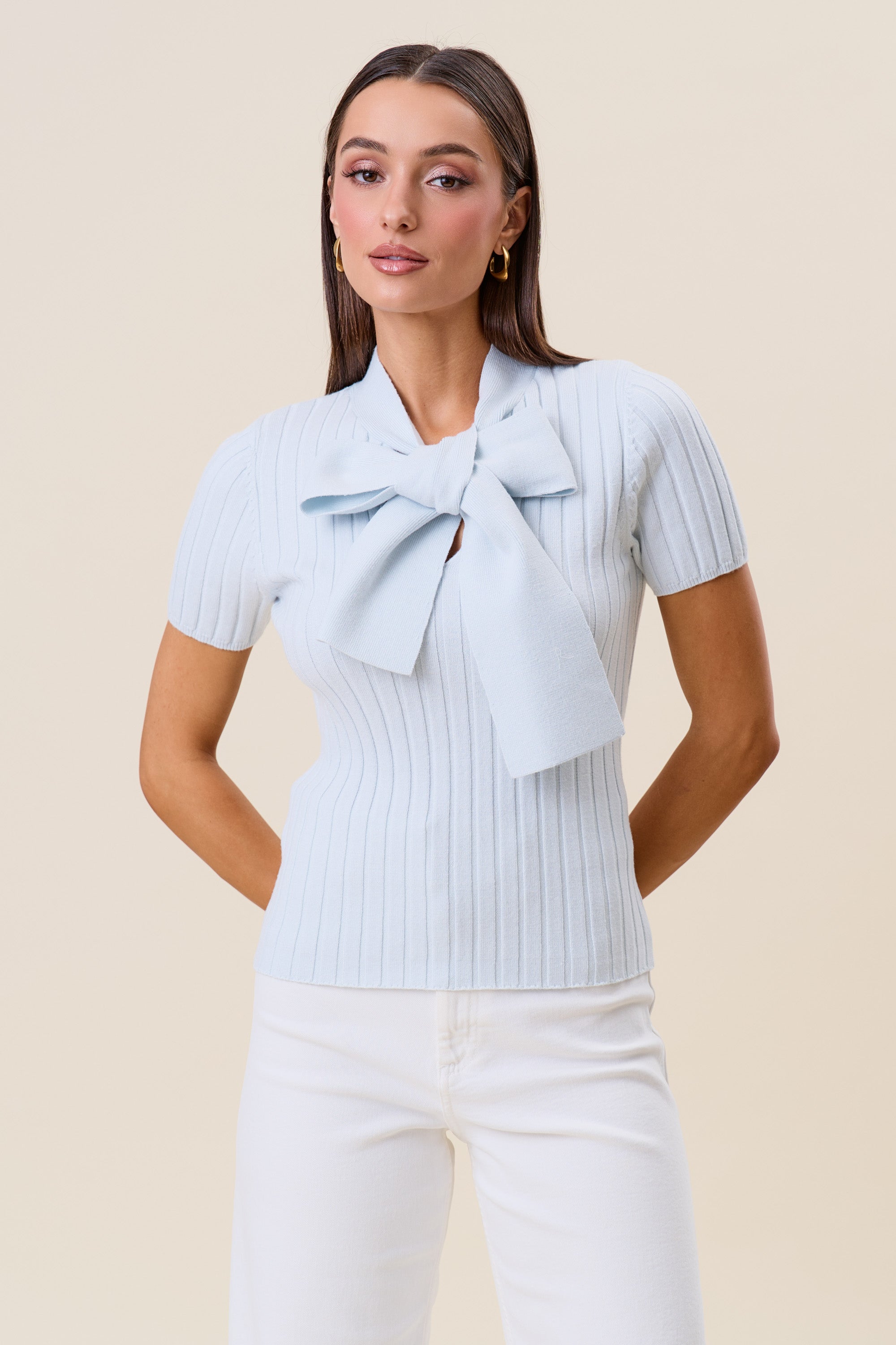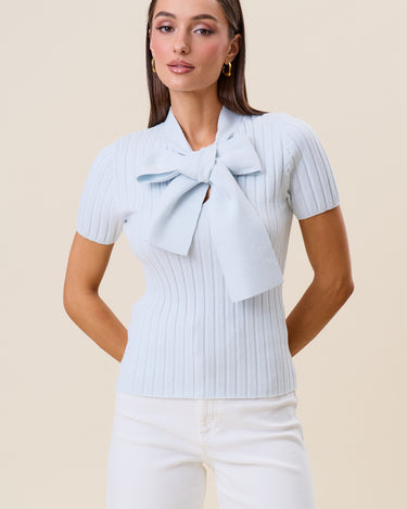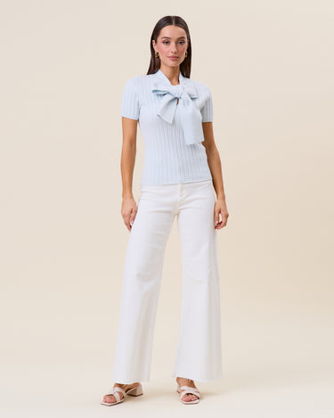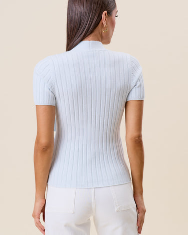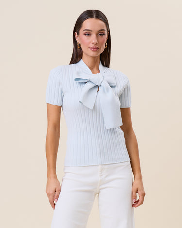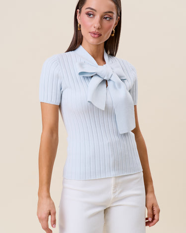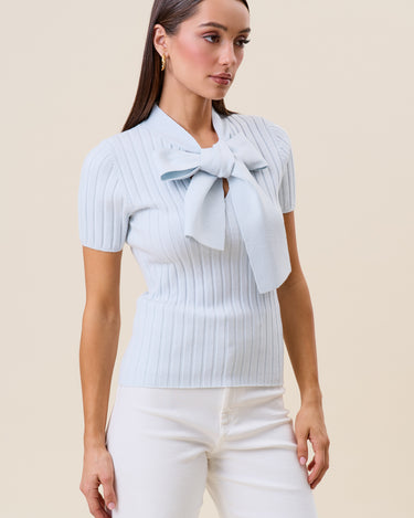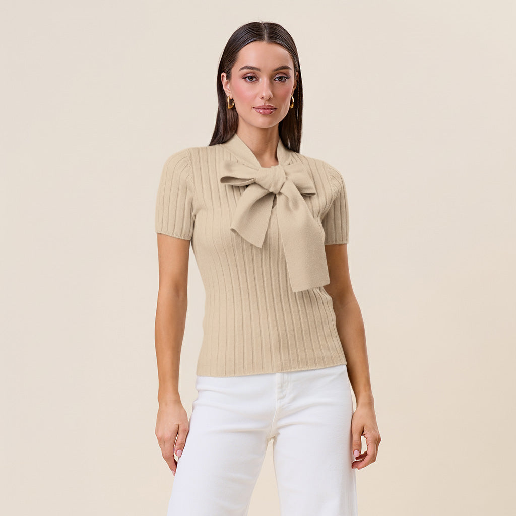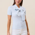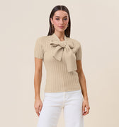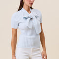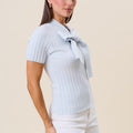 Tie neck short sleeve knit top