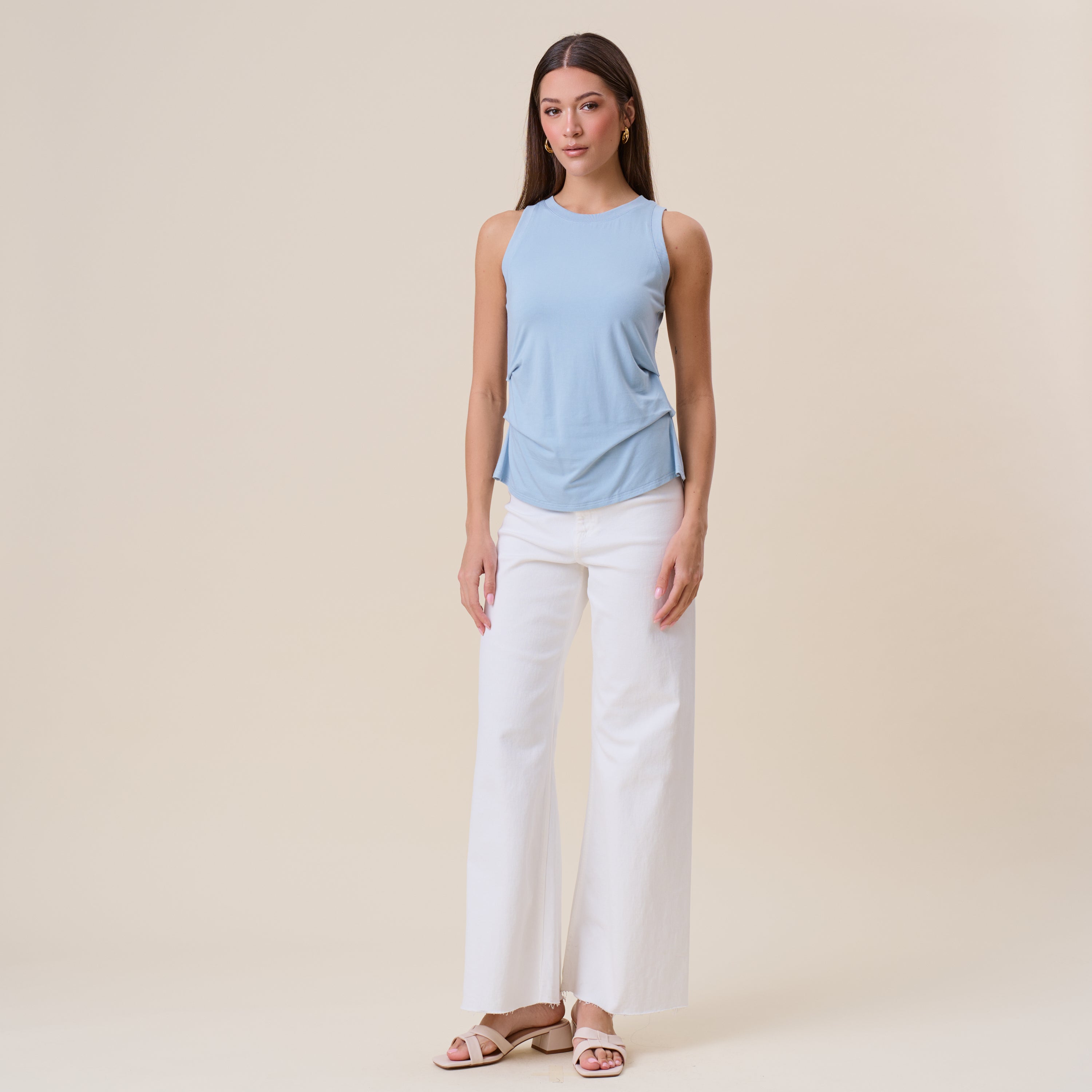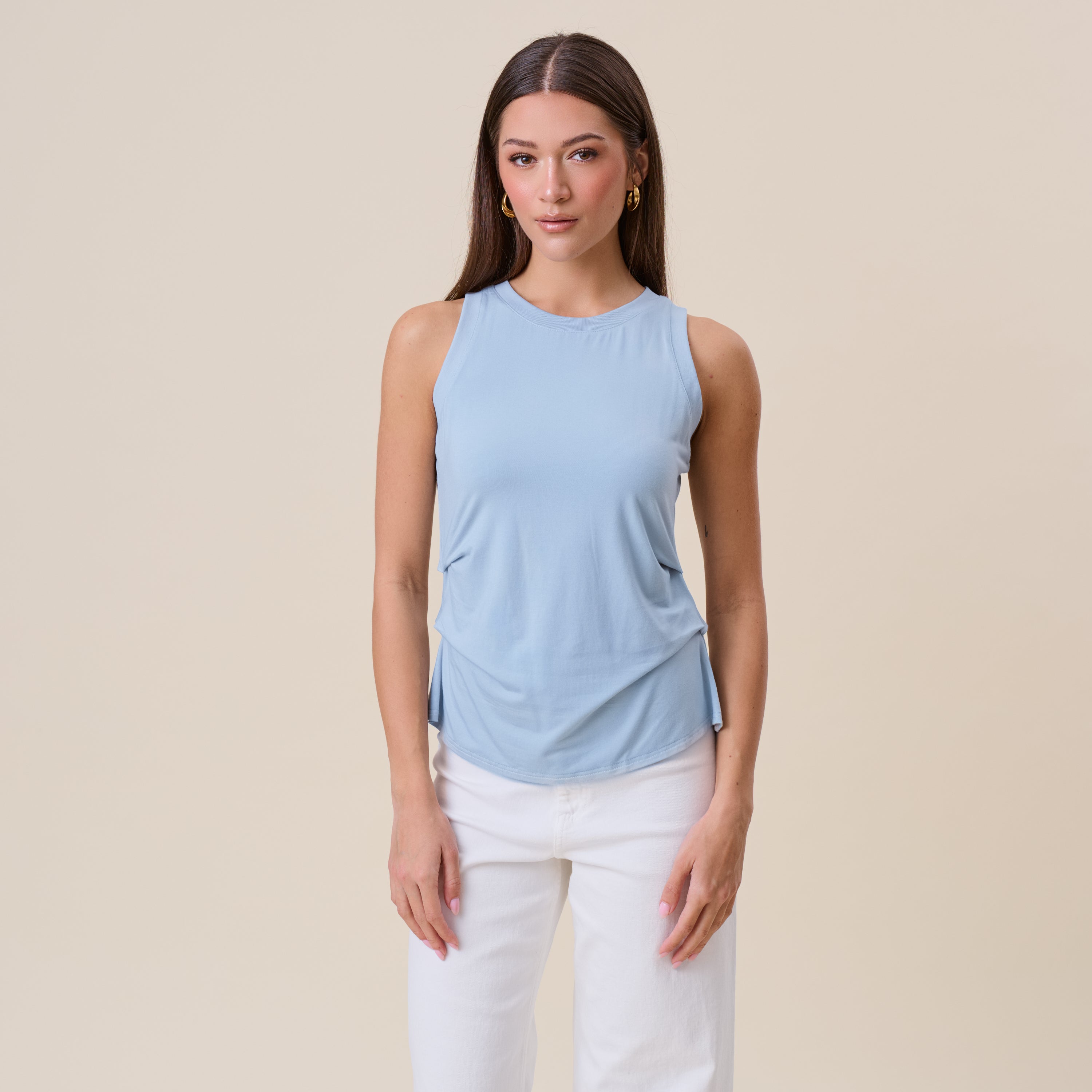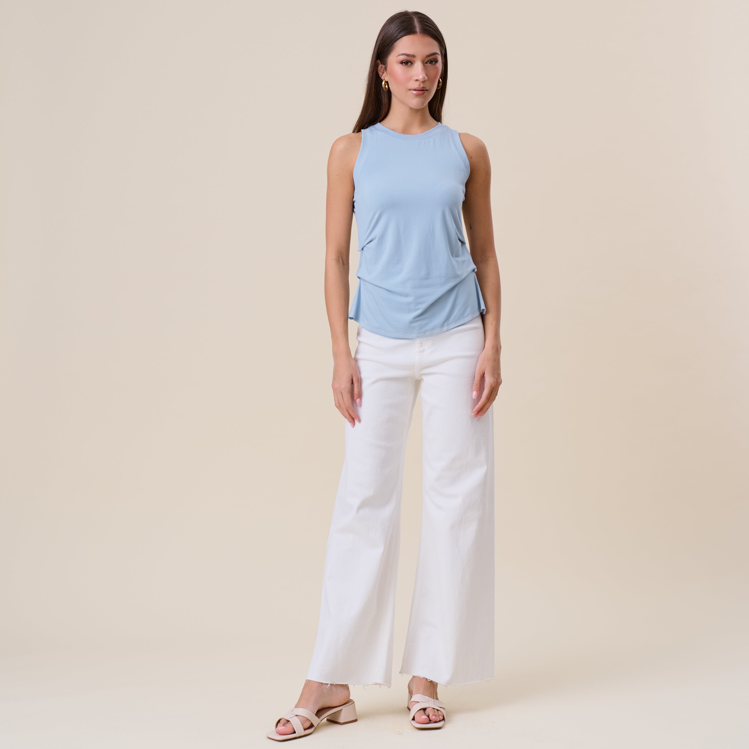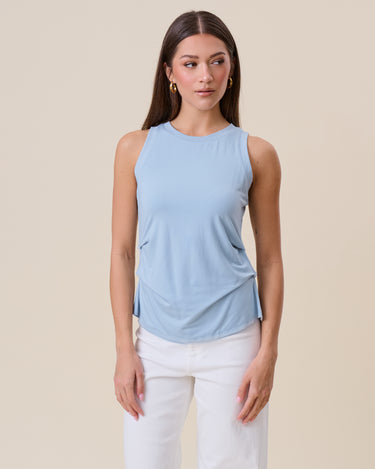 Pleated side jersey tank top