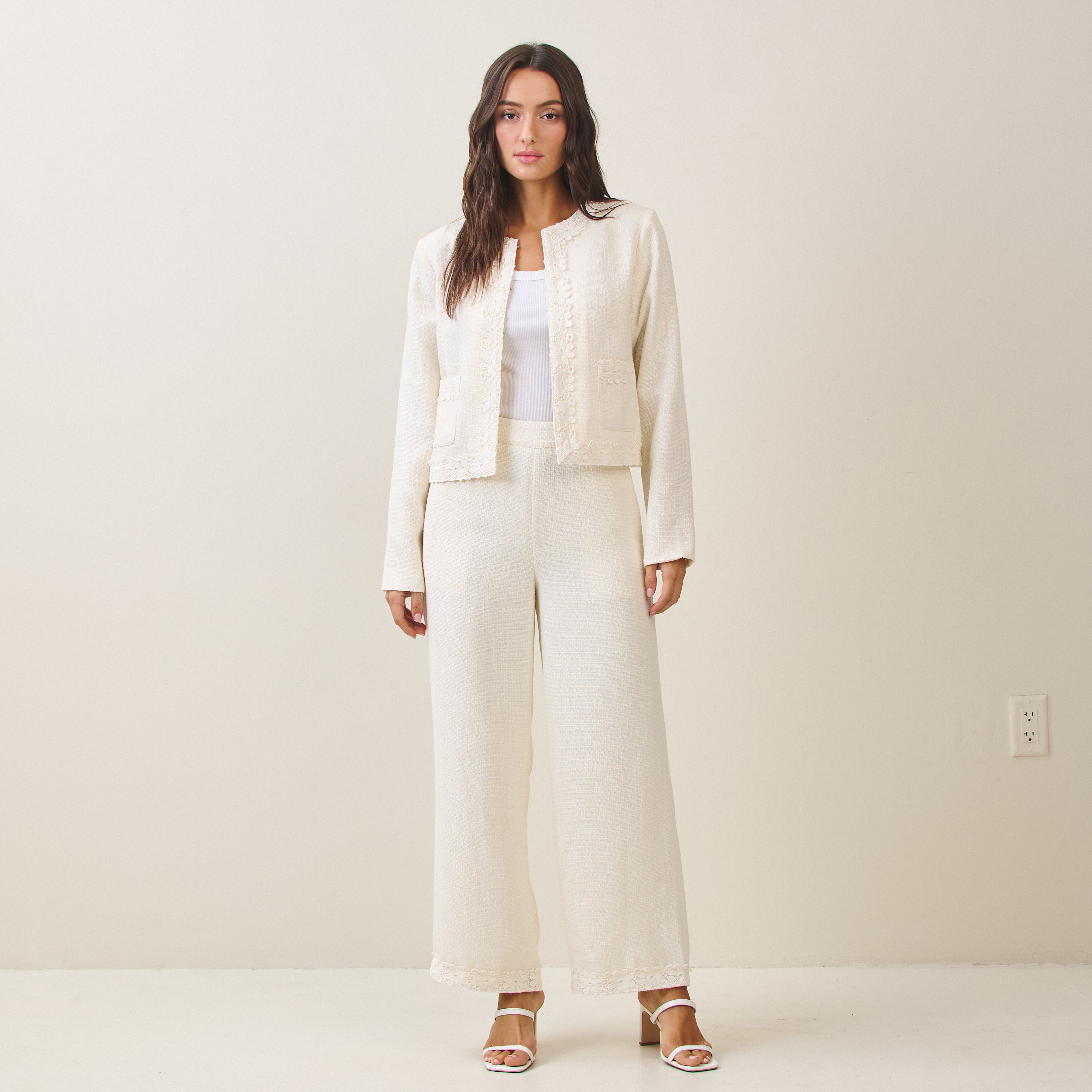 Floral lace tweed pants - price