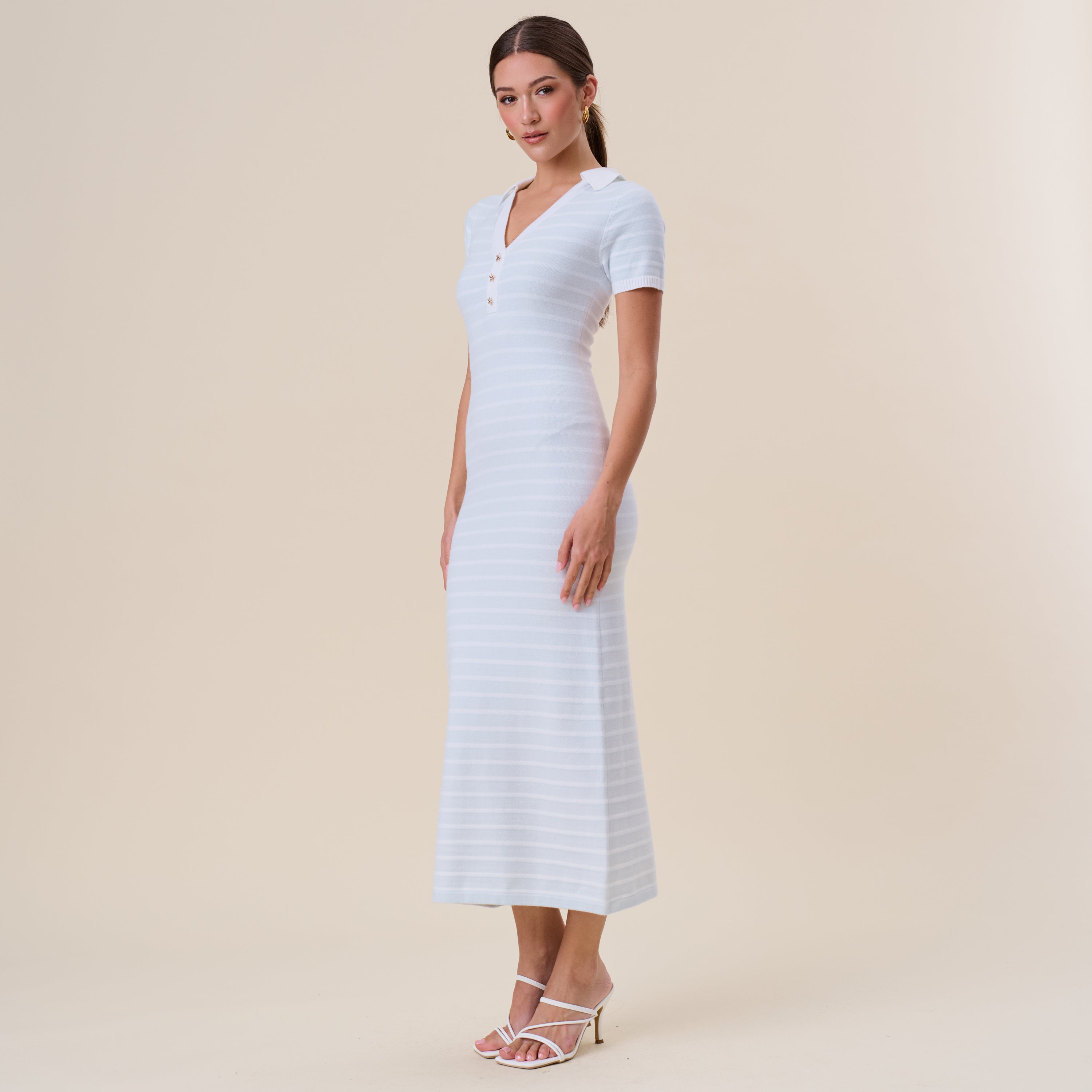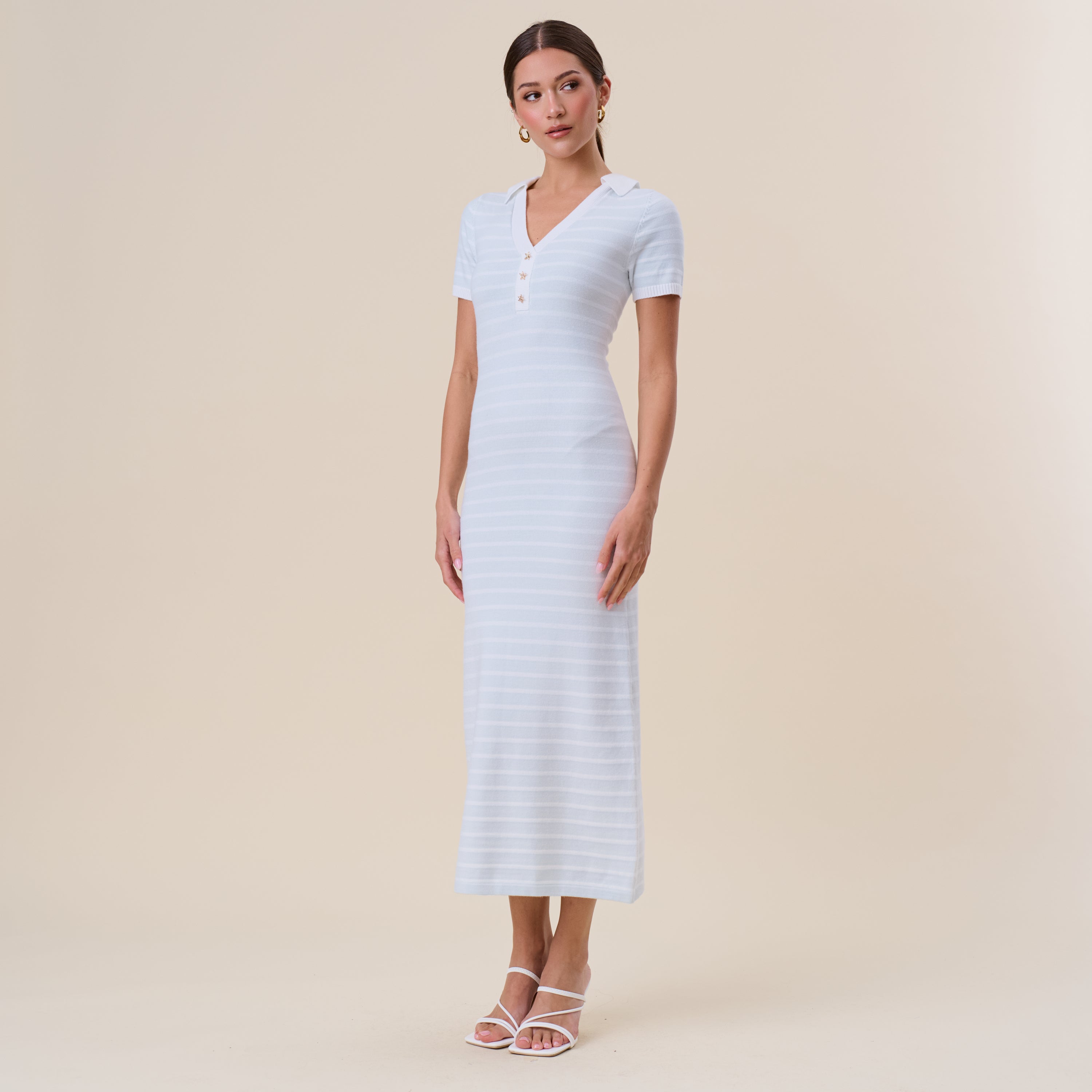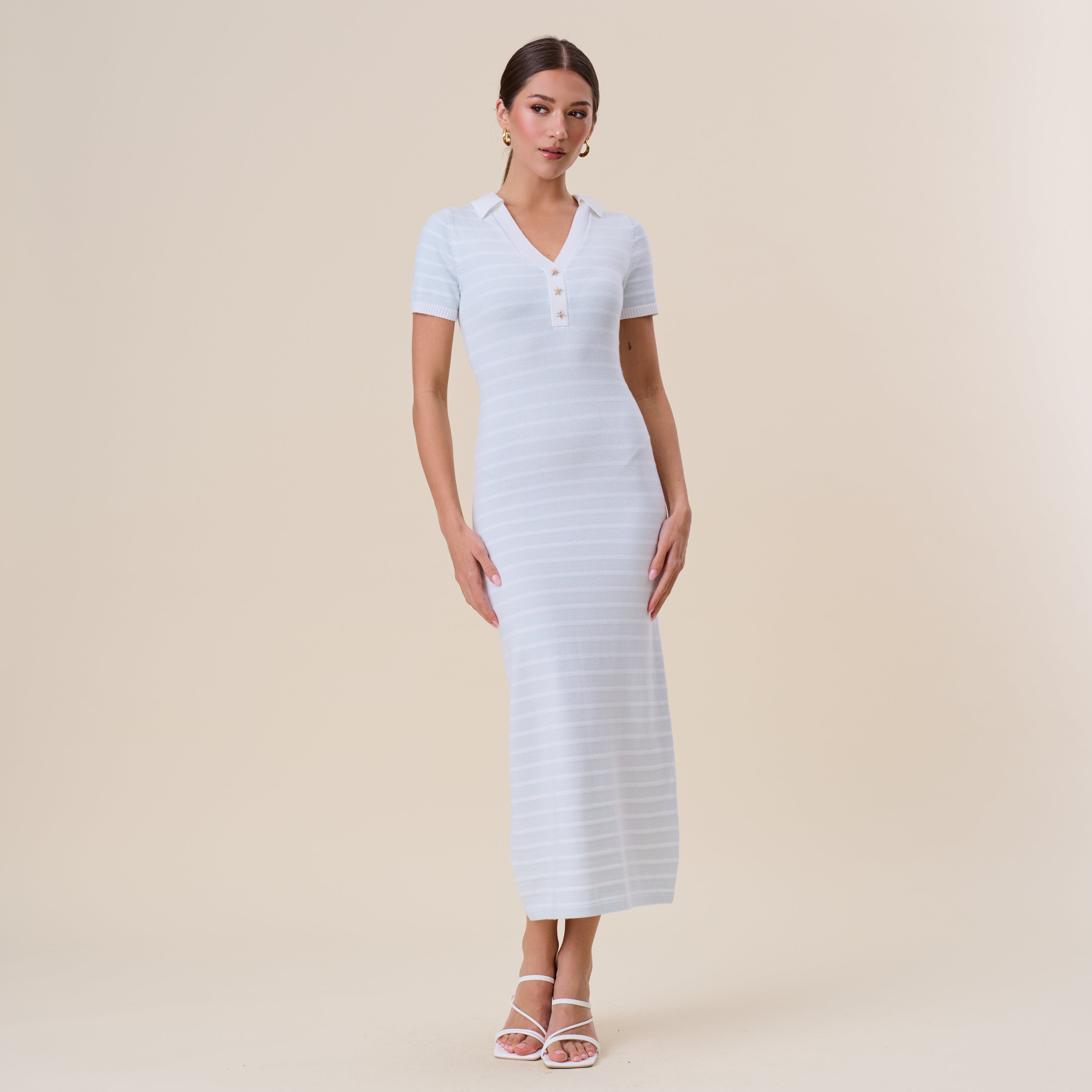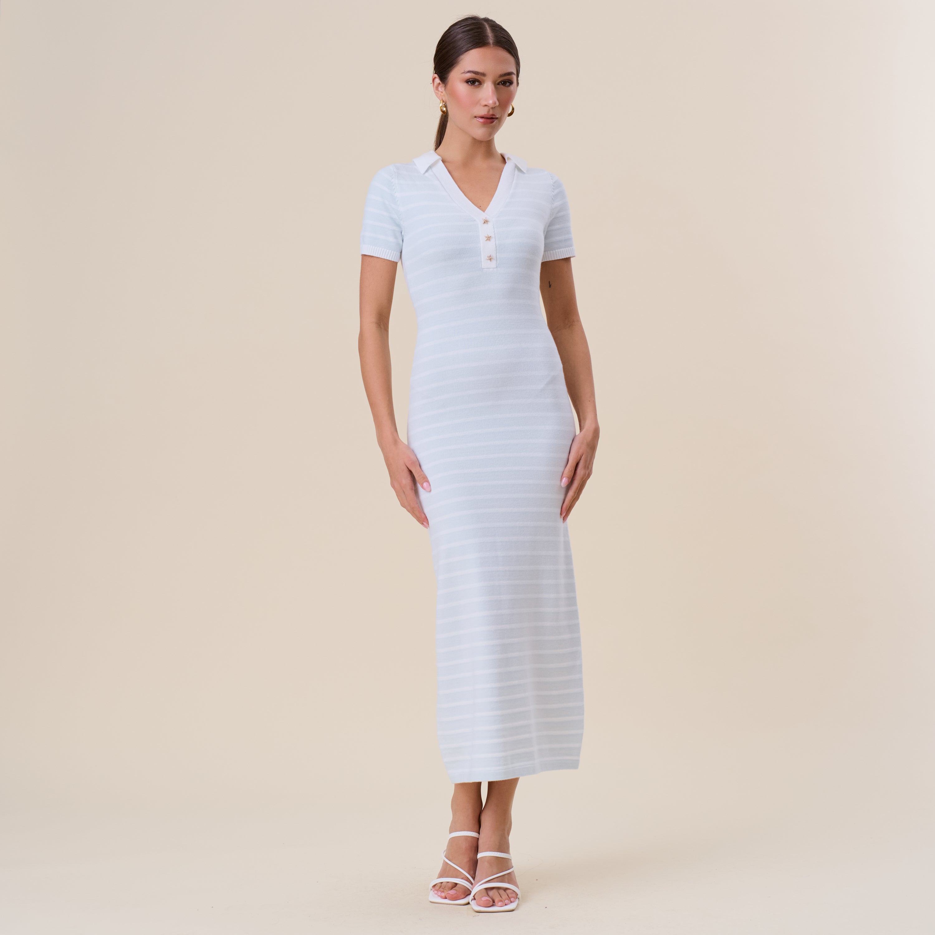Starfish button striped knit maxi dress