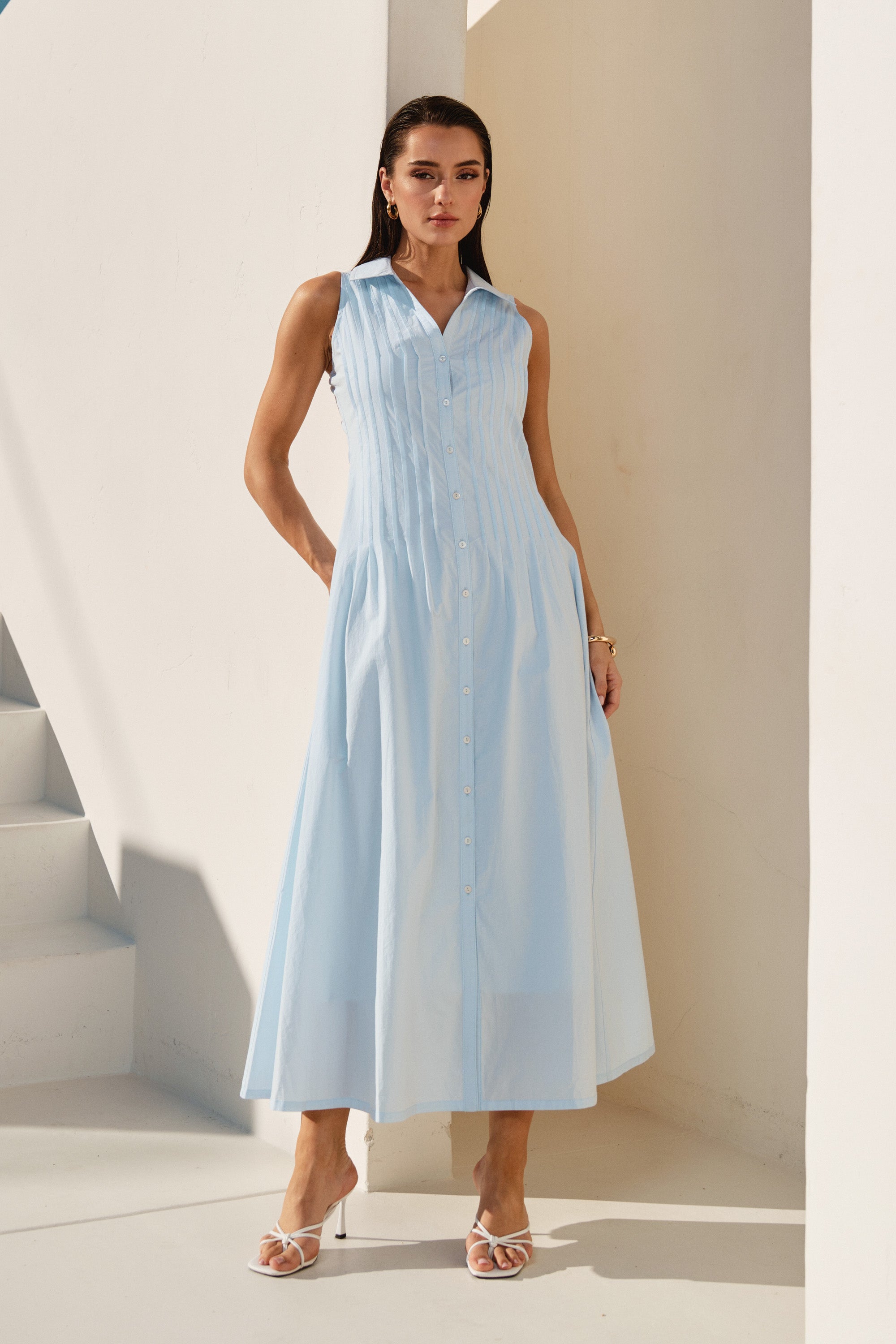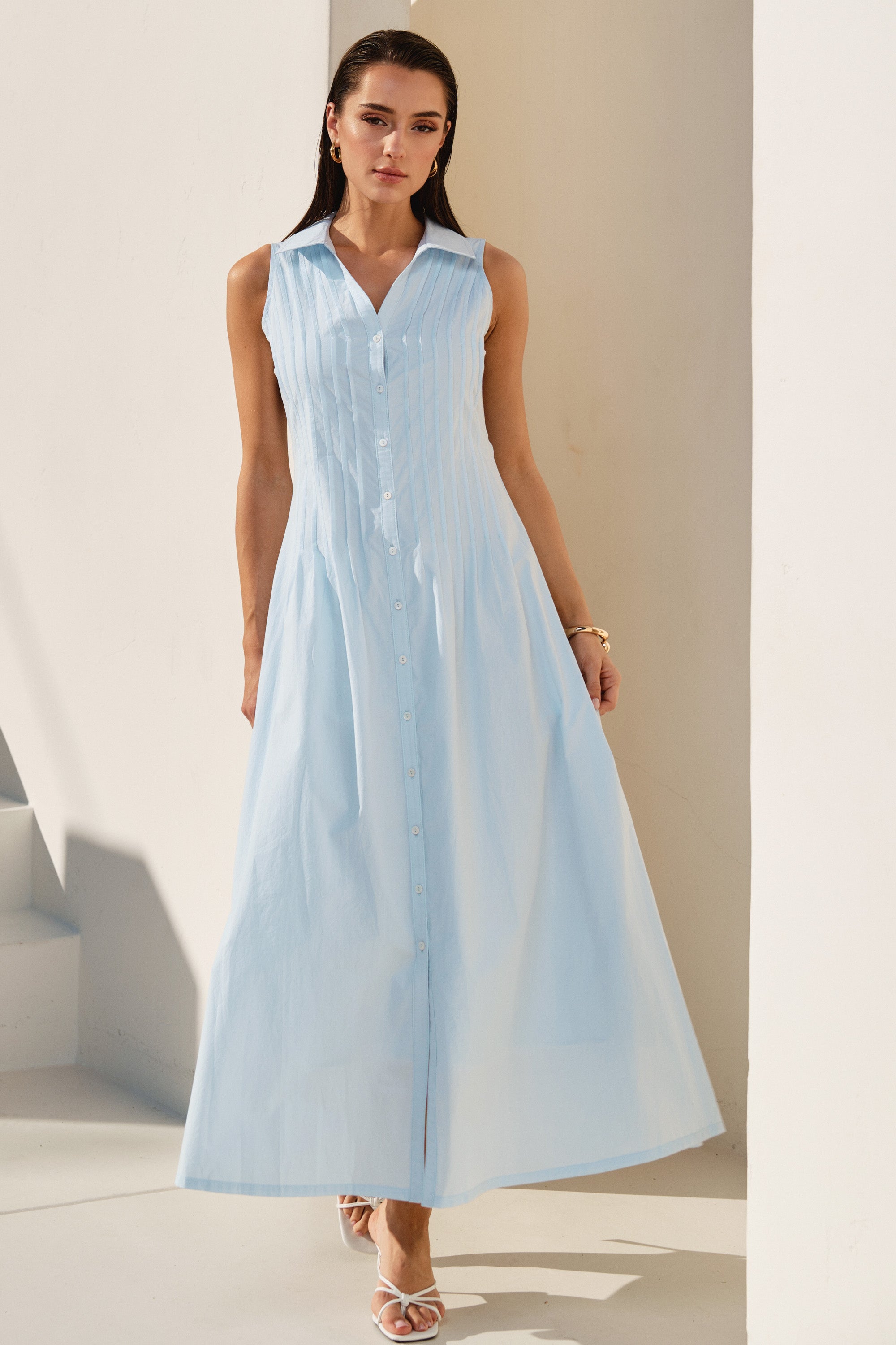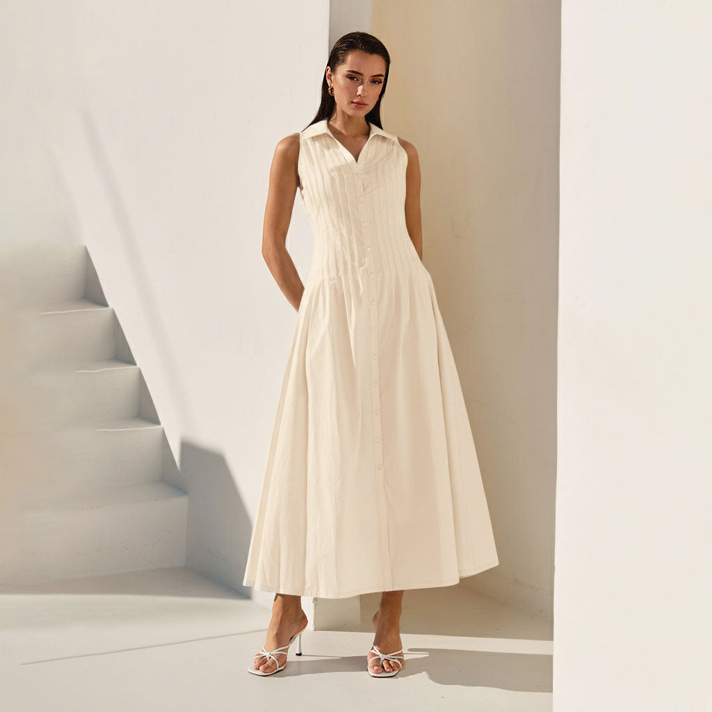 Pintuck sleeveless maxi dress