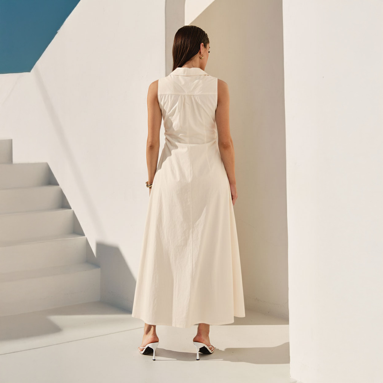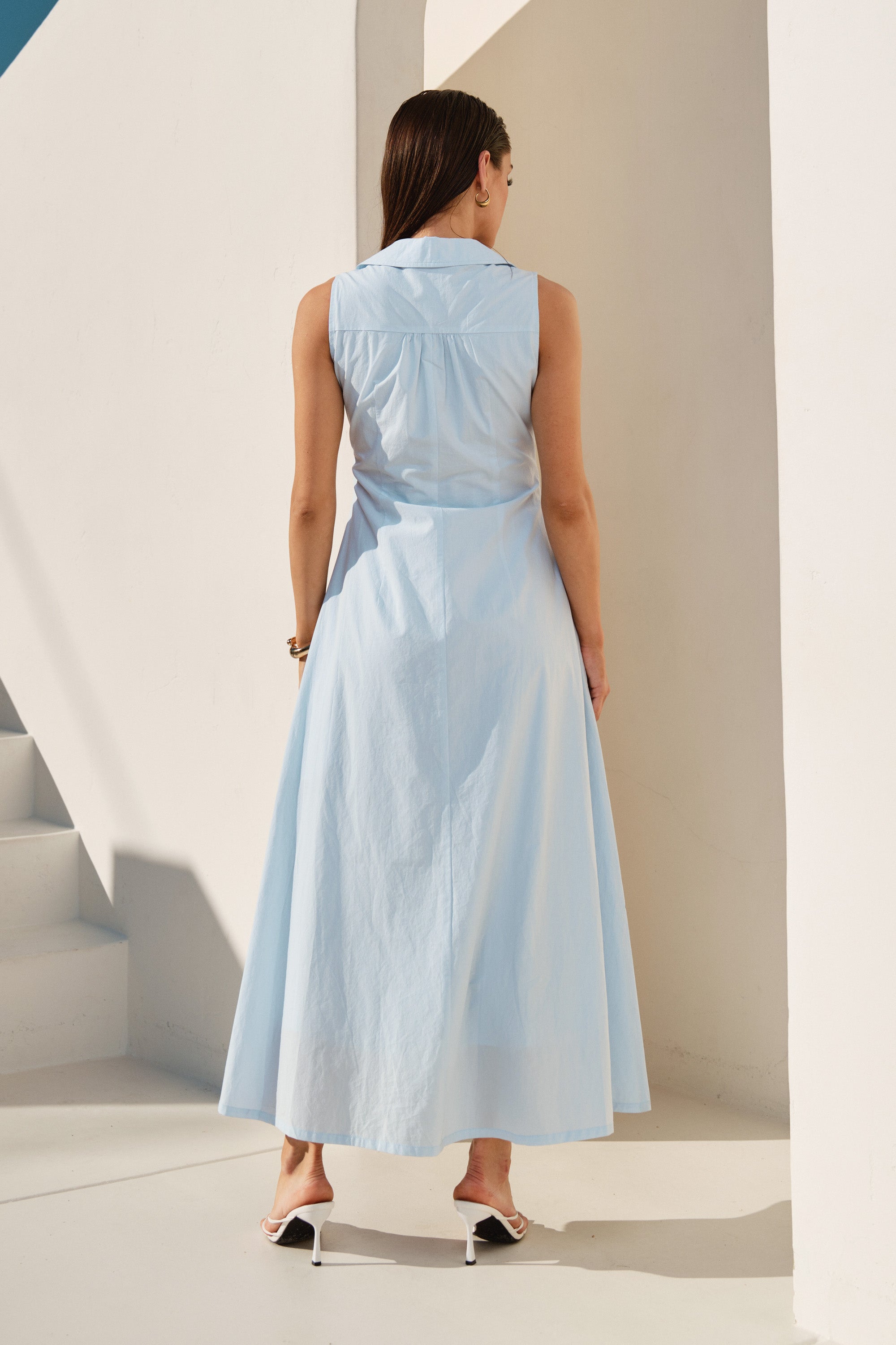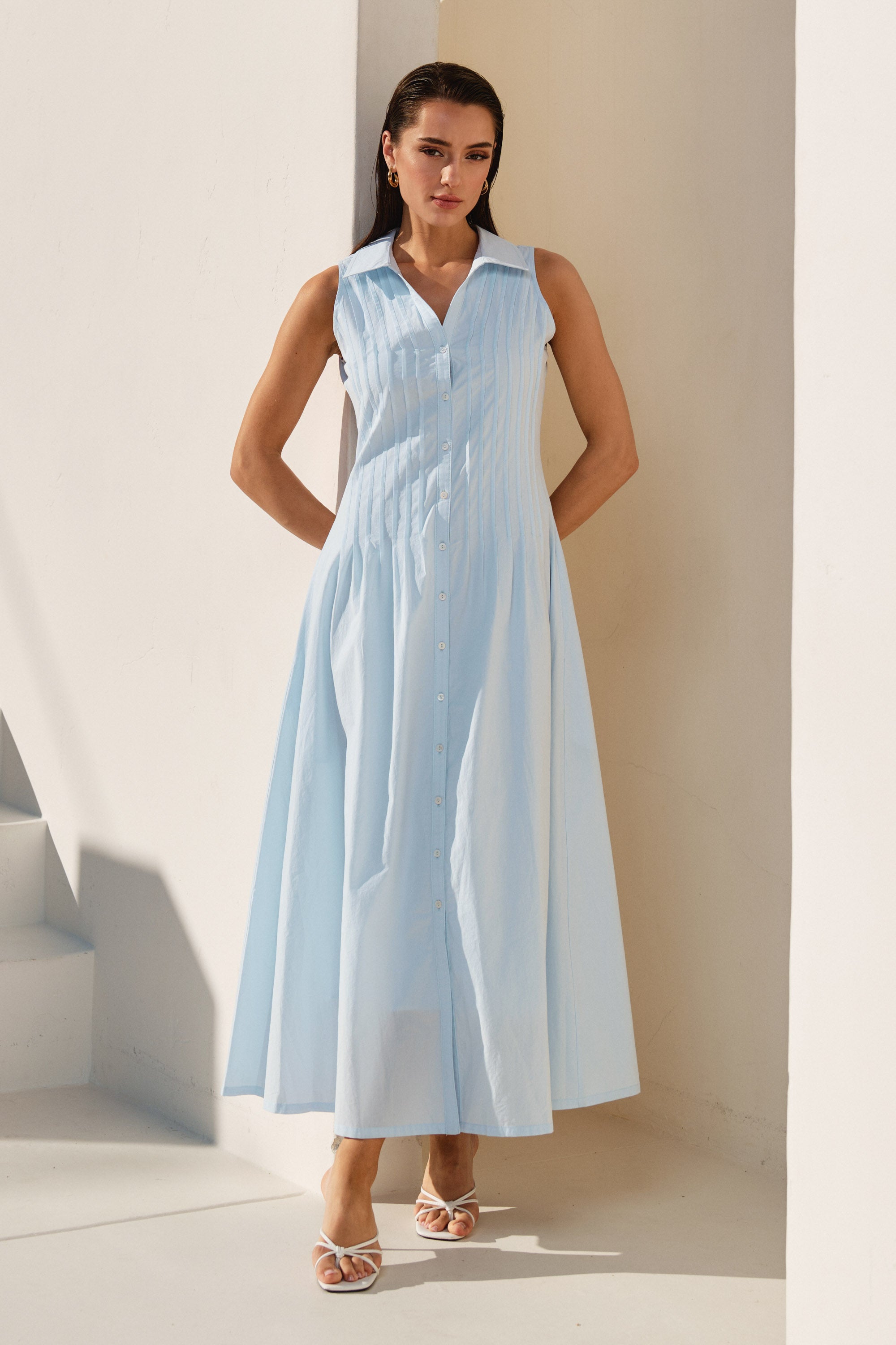 Pintuck sleeveless maxi dress