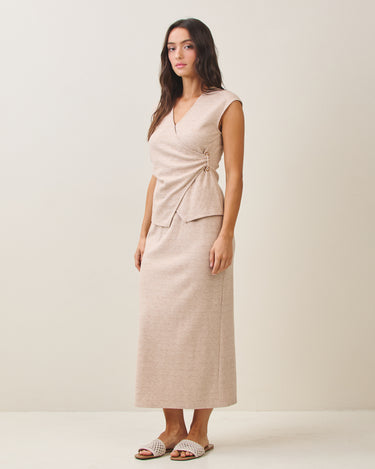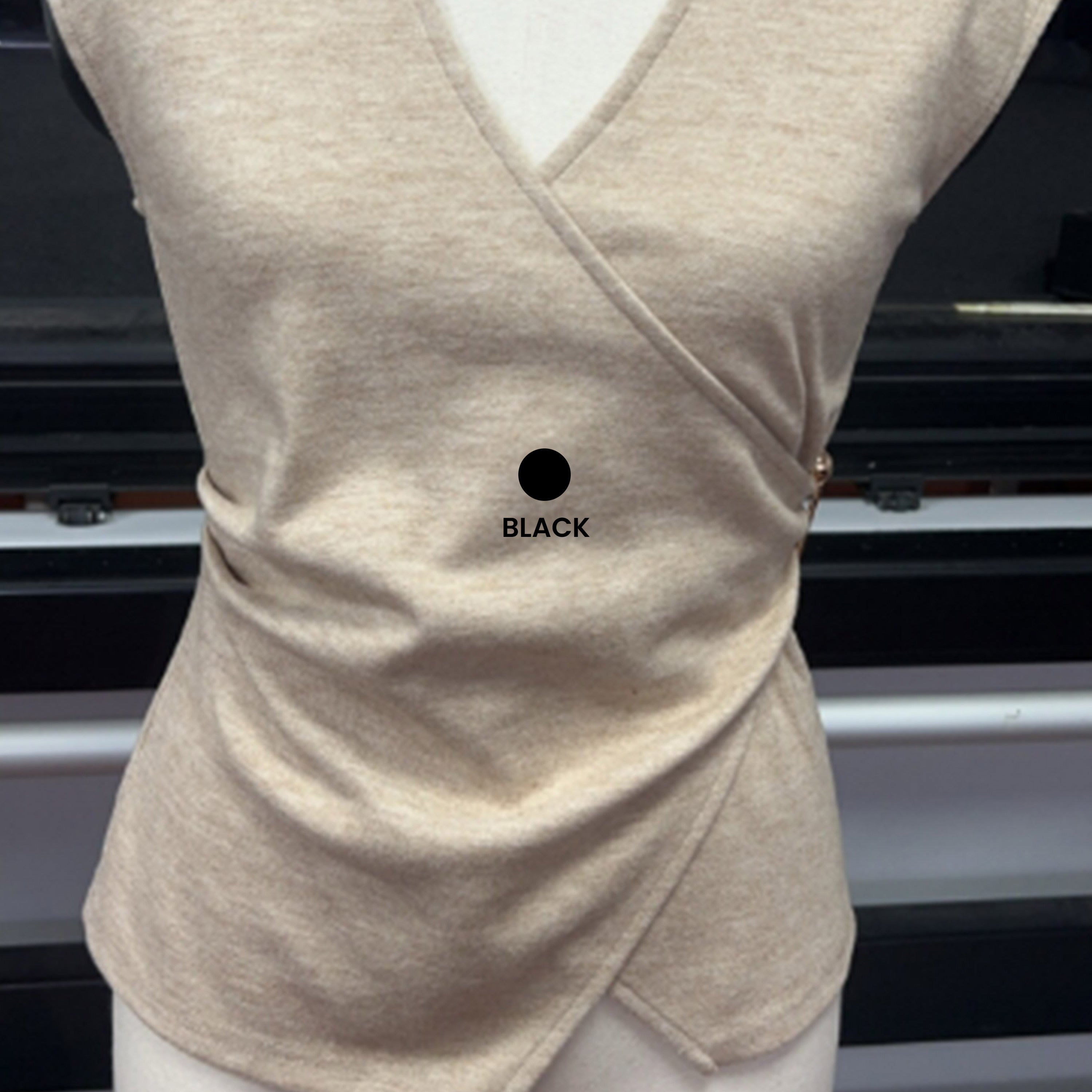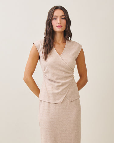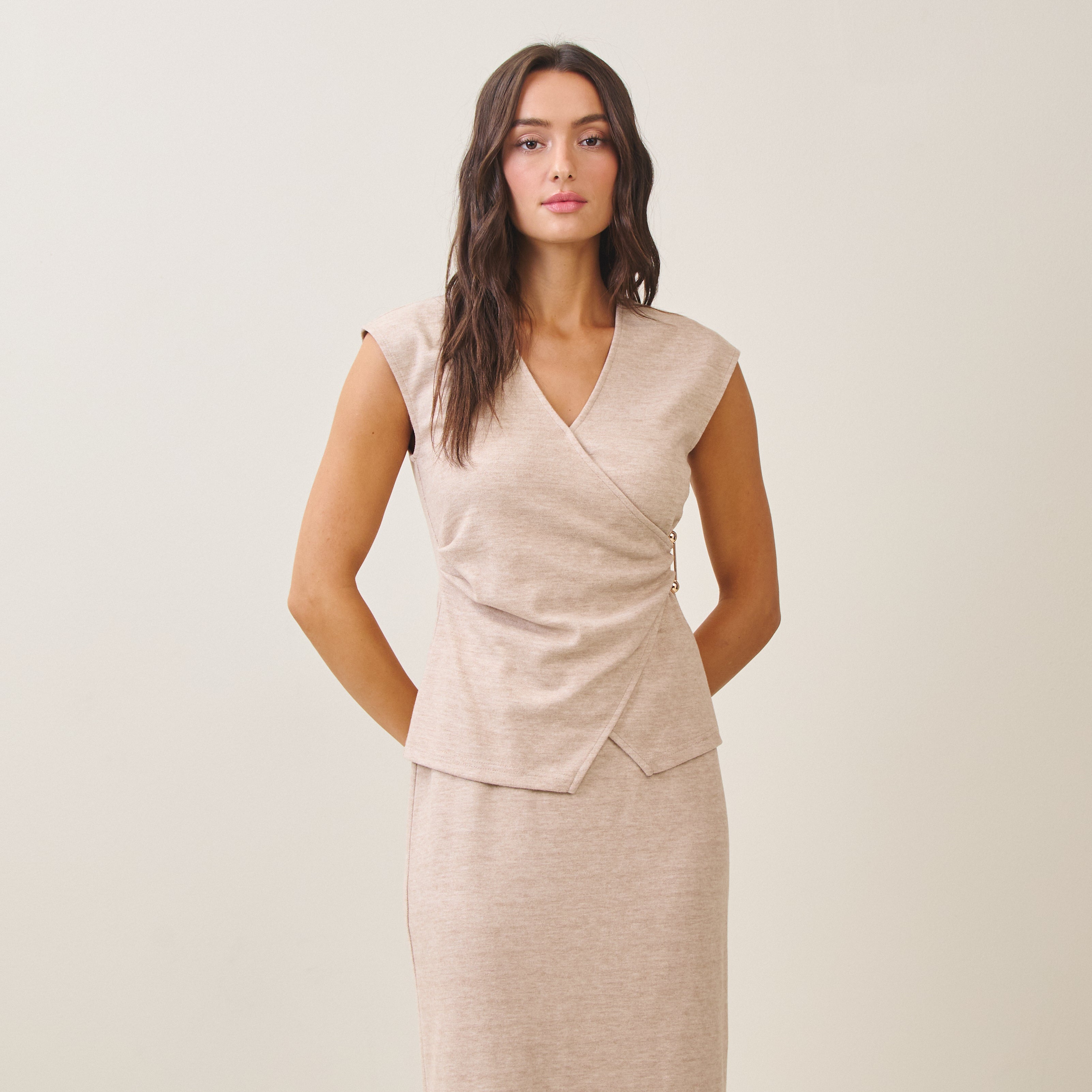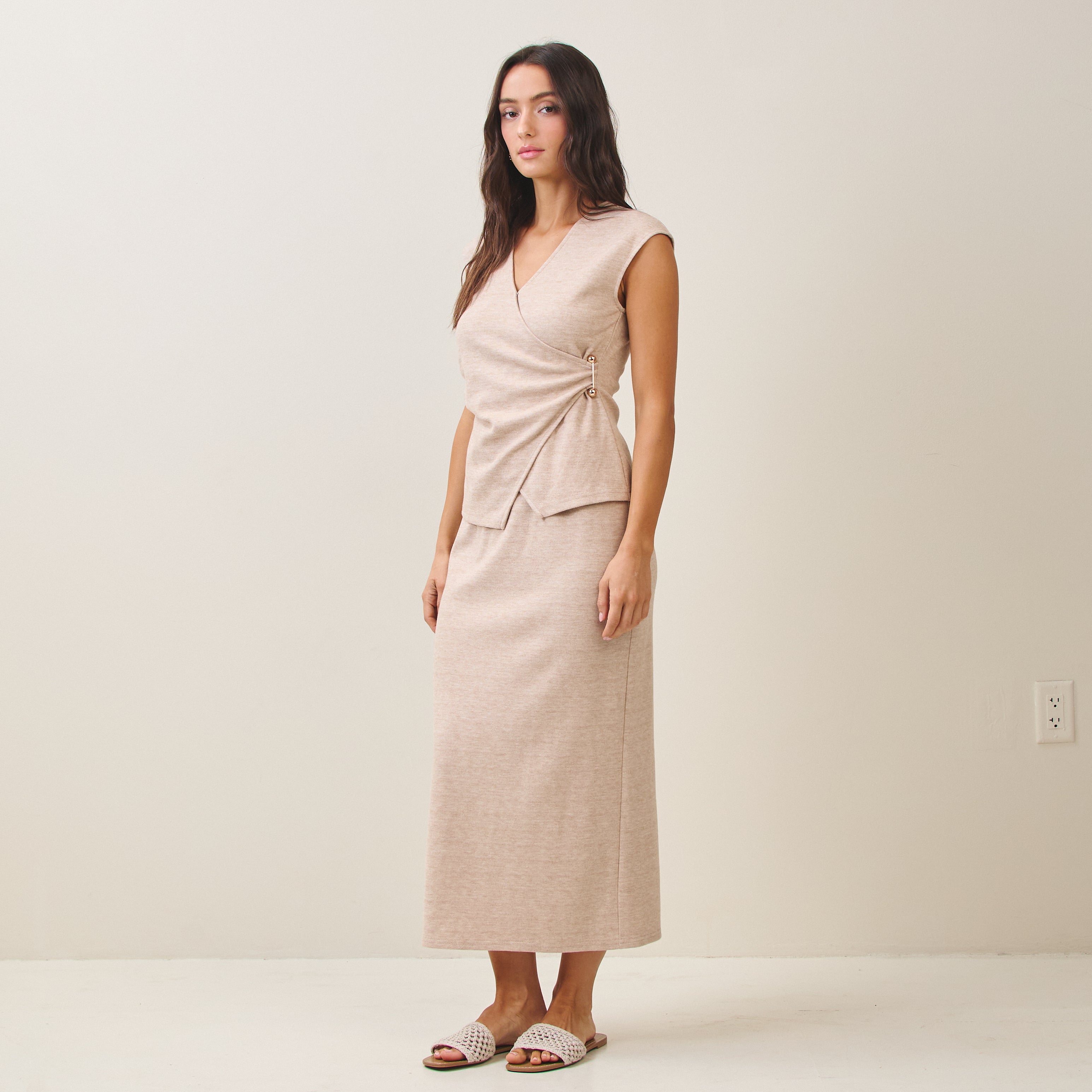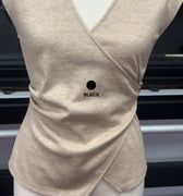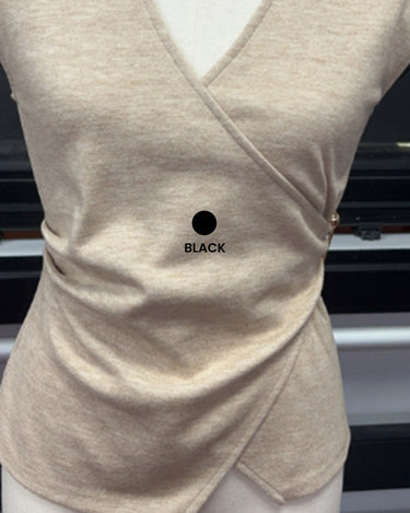 Wrap style knit top with metal ring