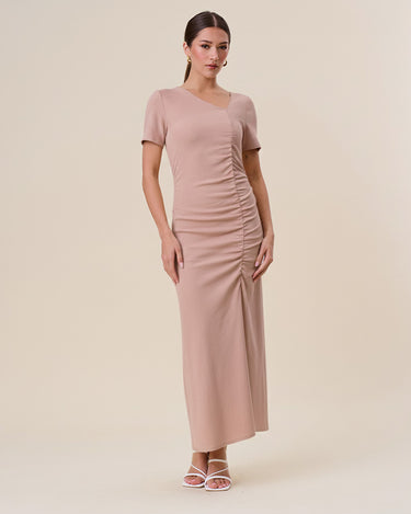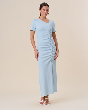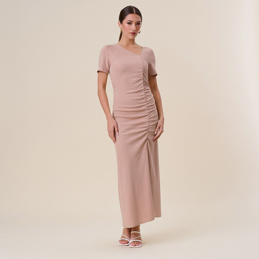 Asymmetrical shirred split dress