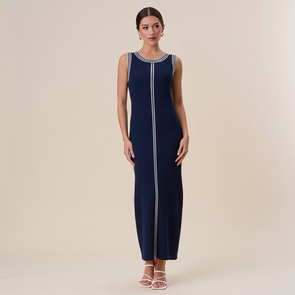 Contrast knit maxi dress