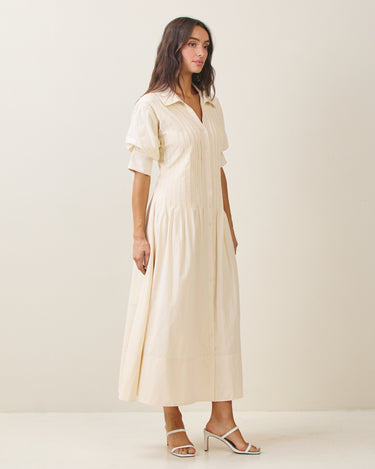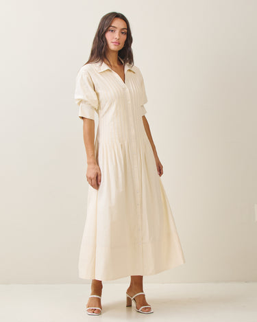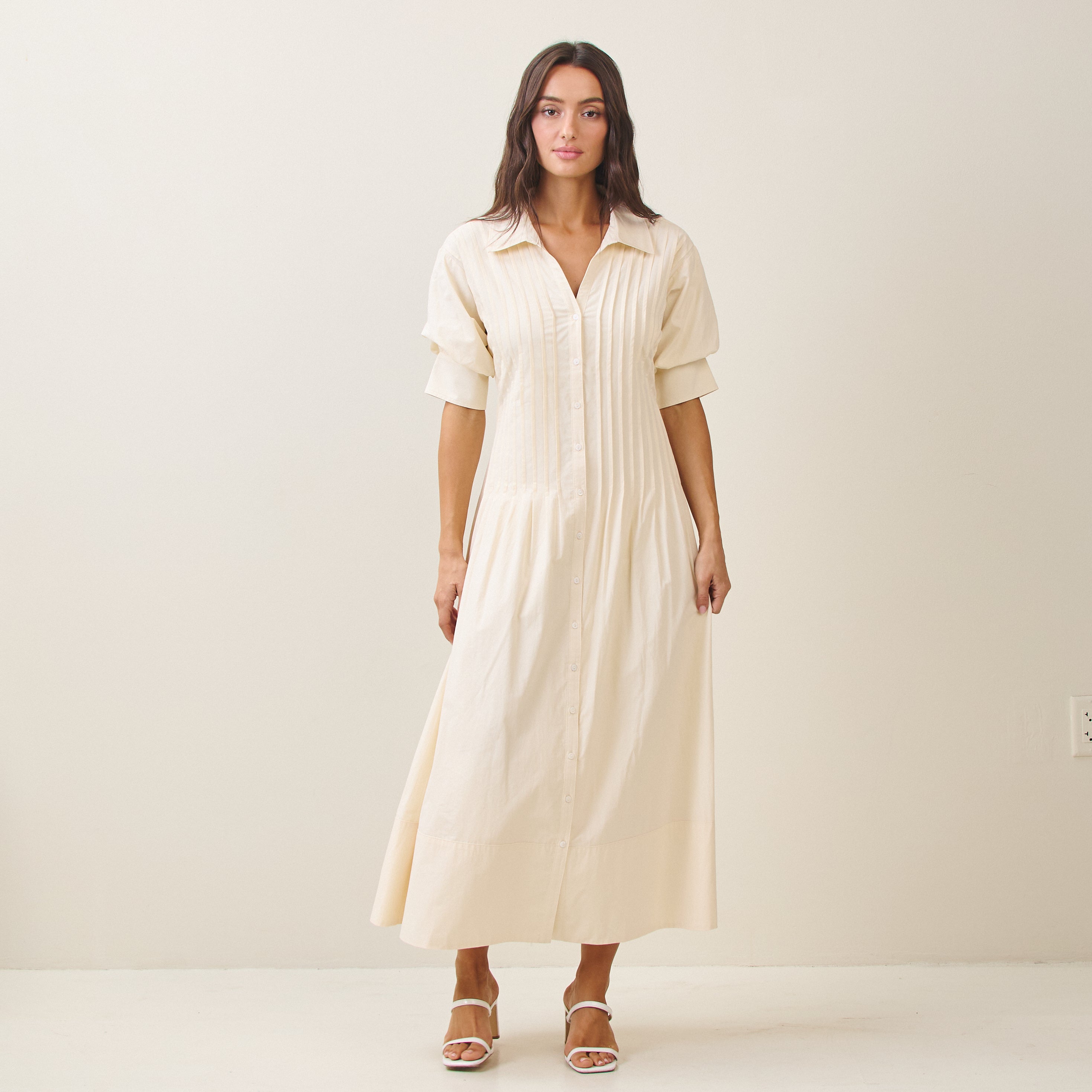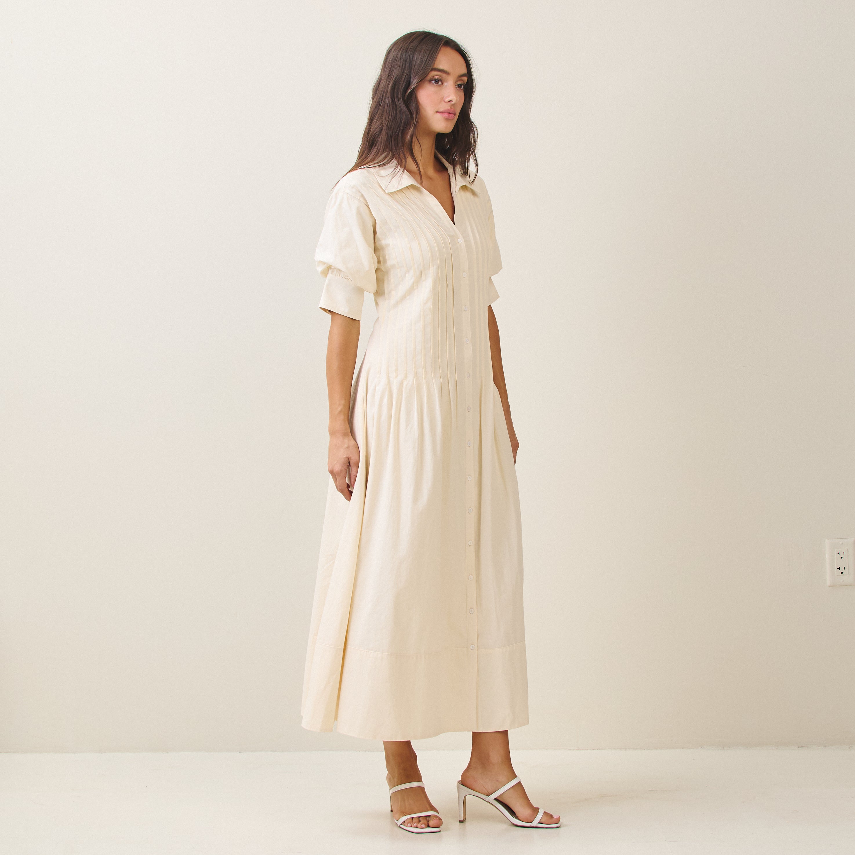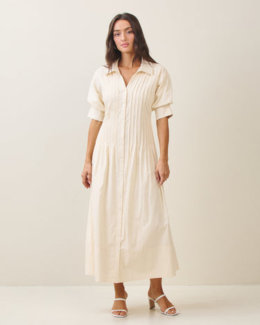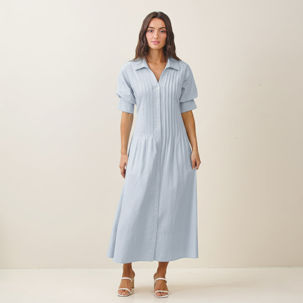 Short sleeve pinktuck shirt dress