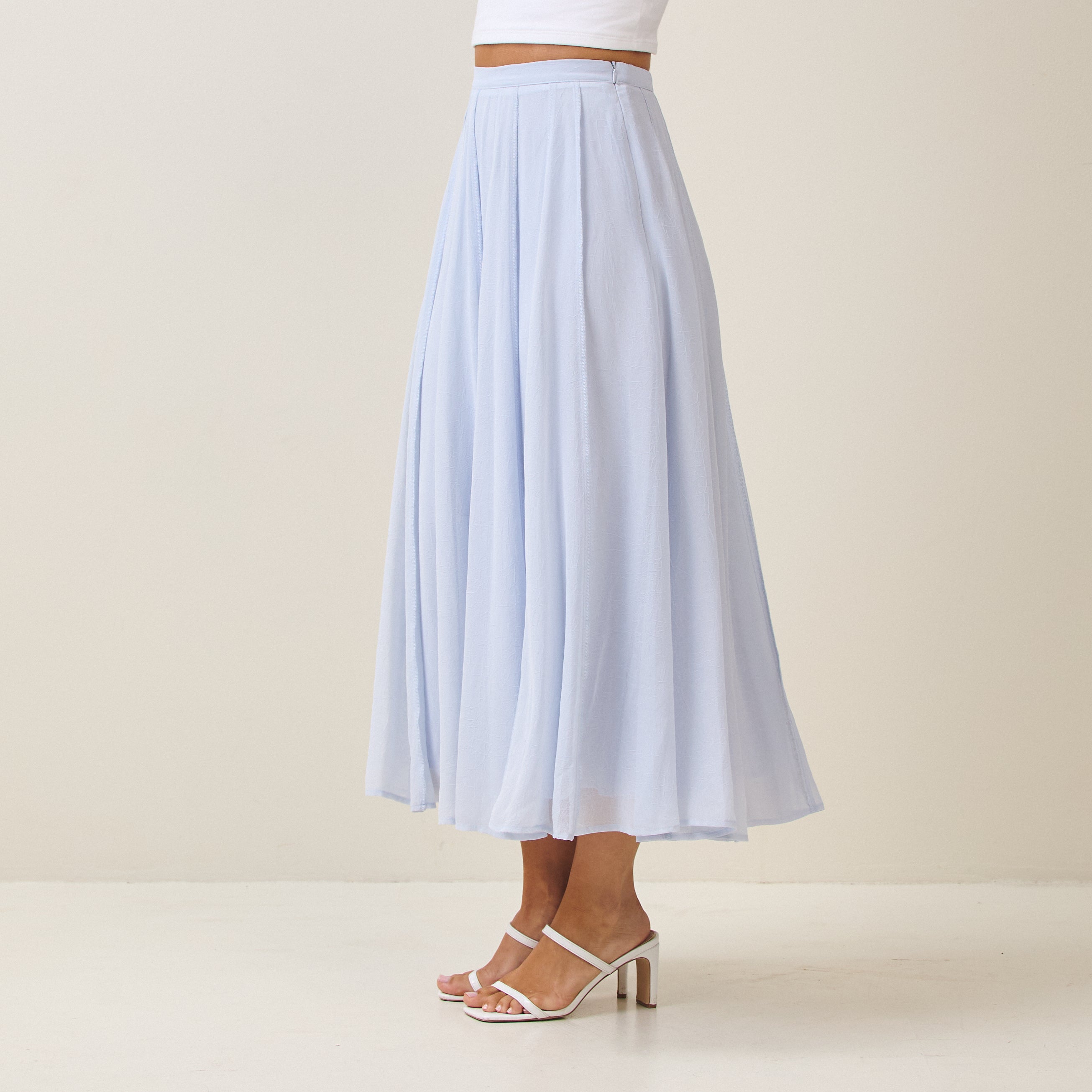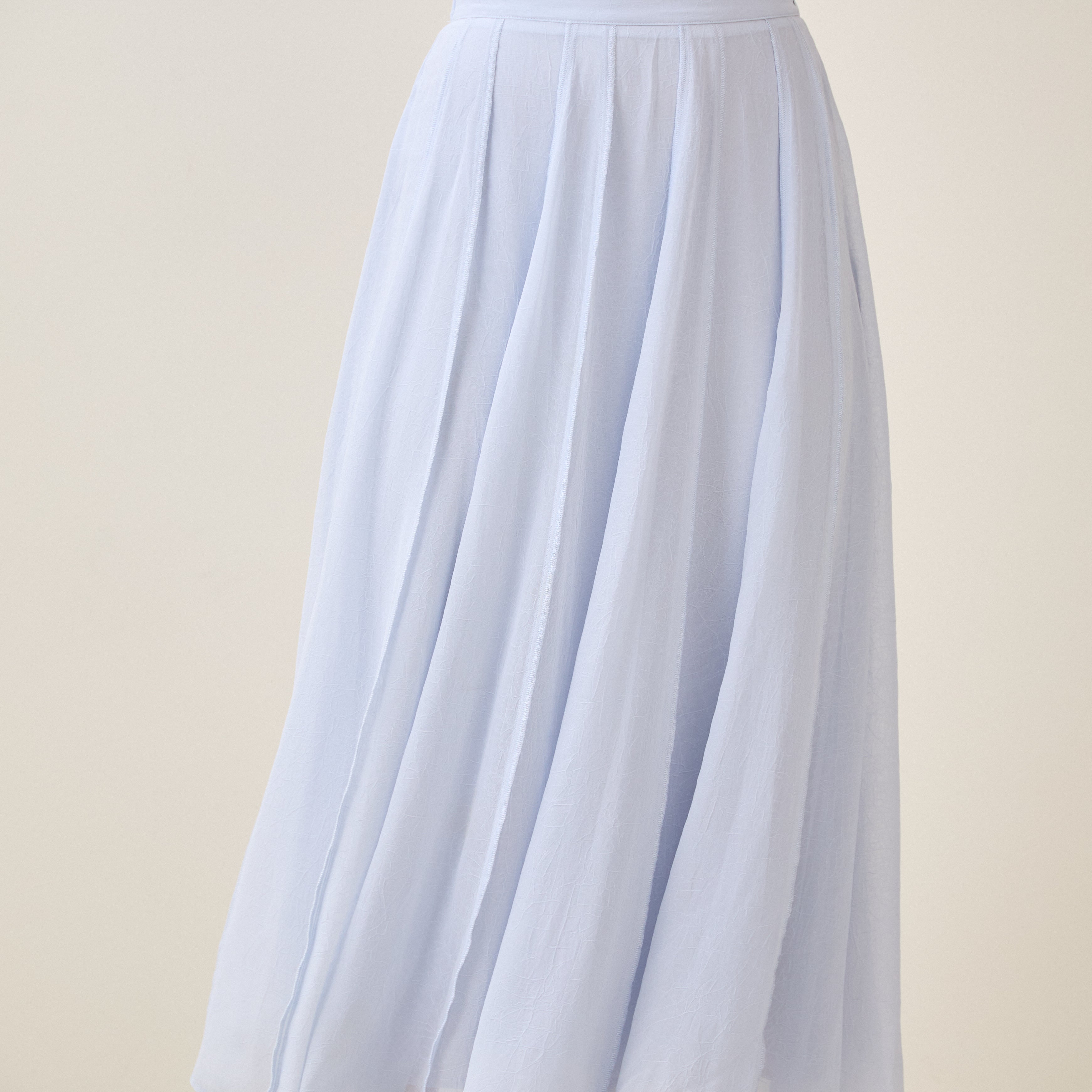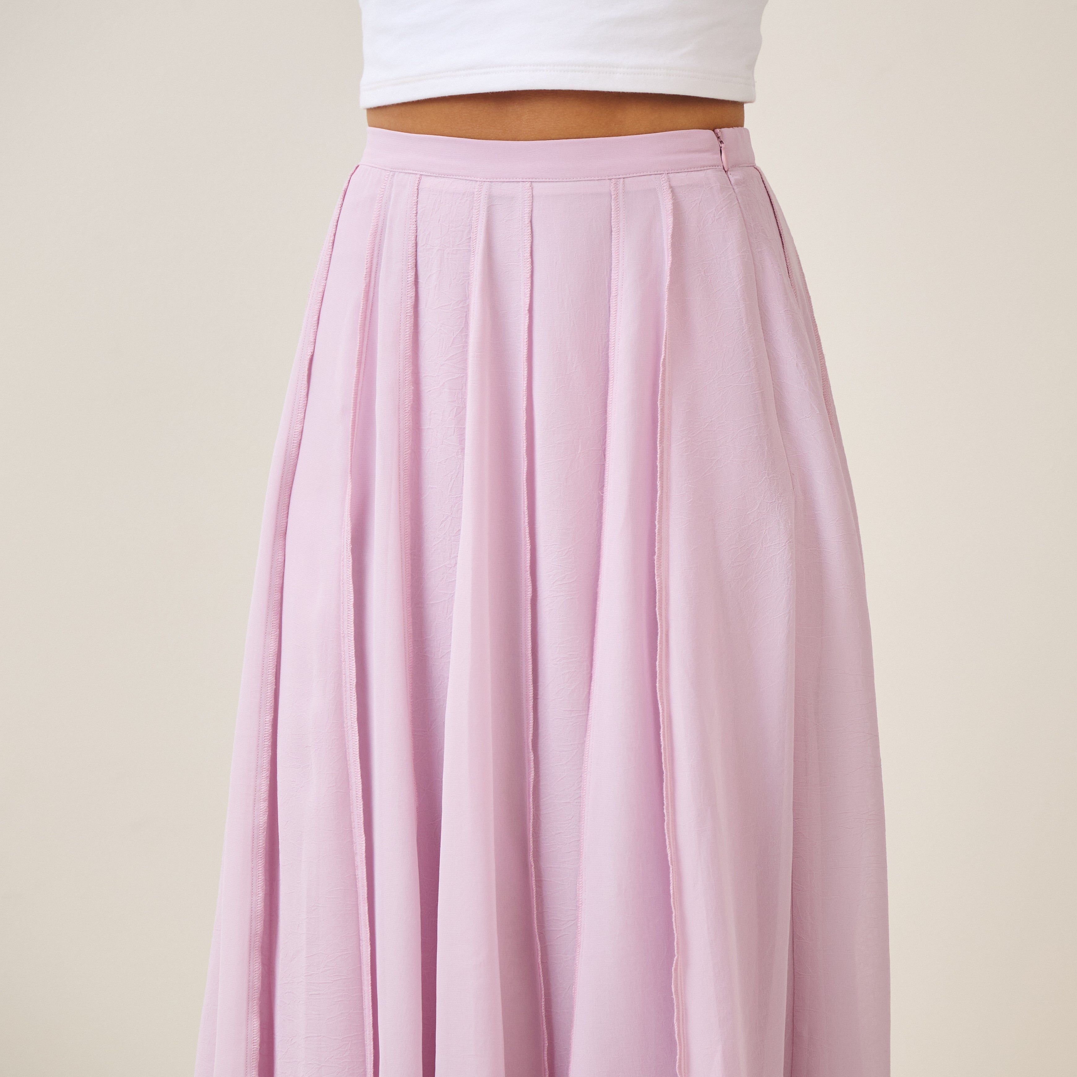 Reverse seam crinkled mesh skirt