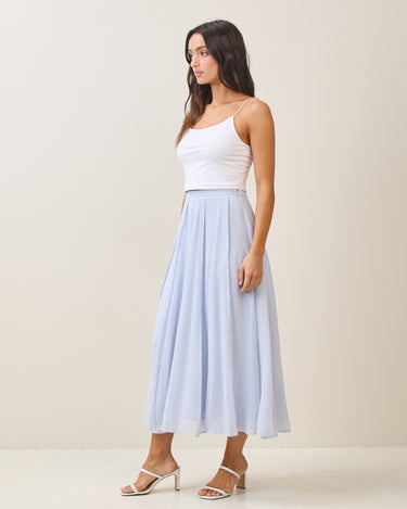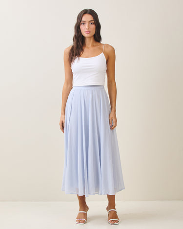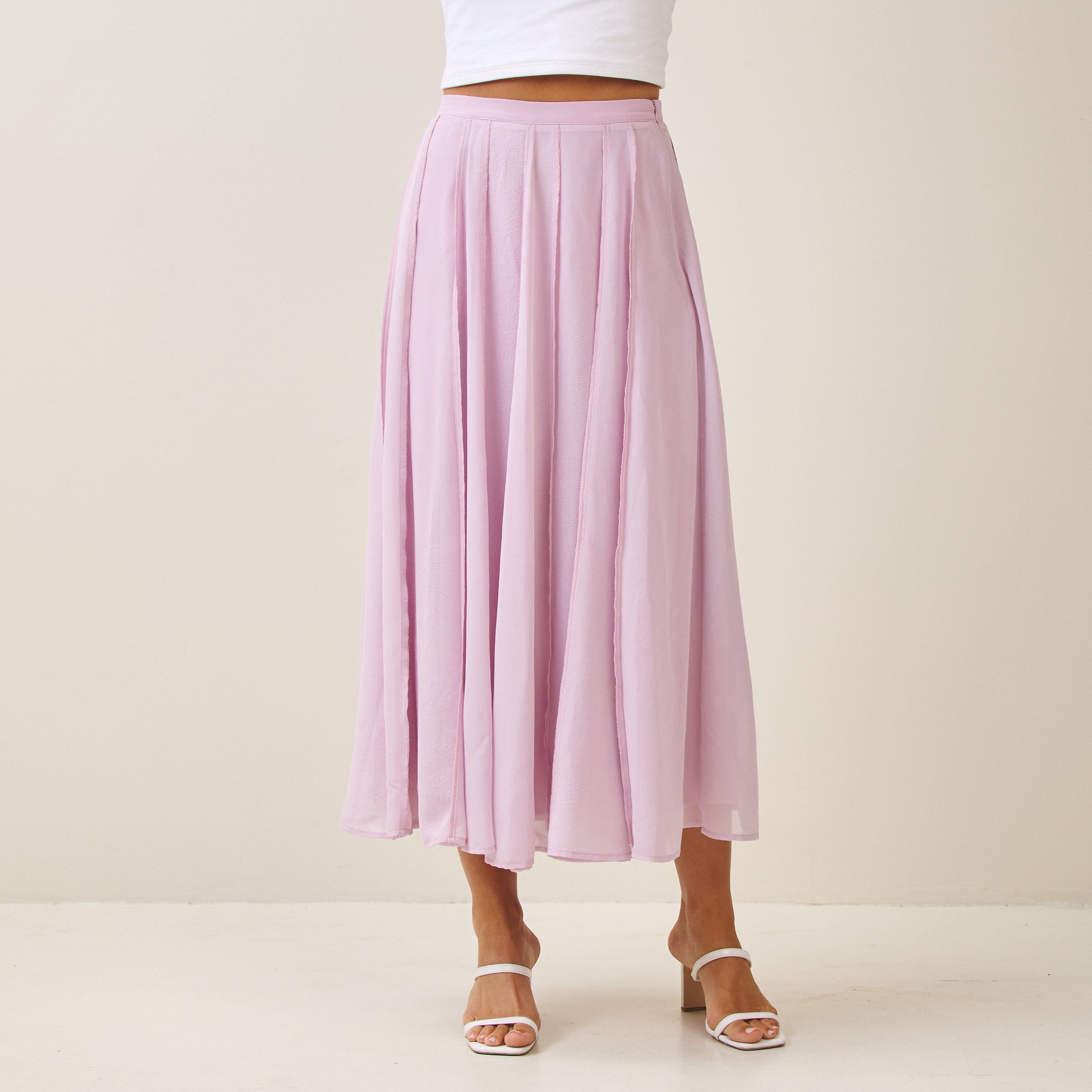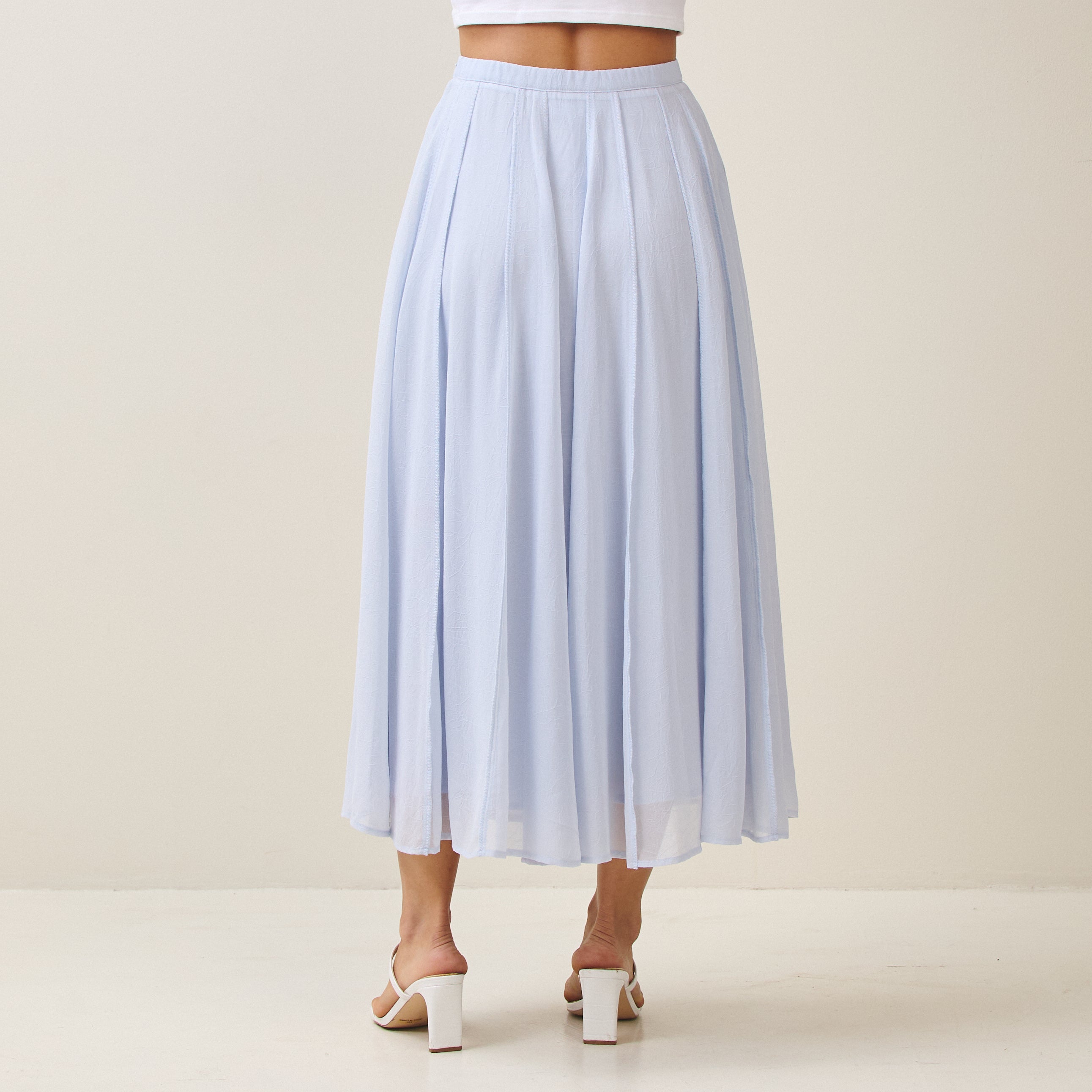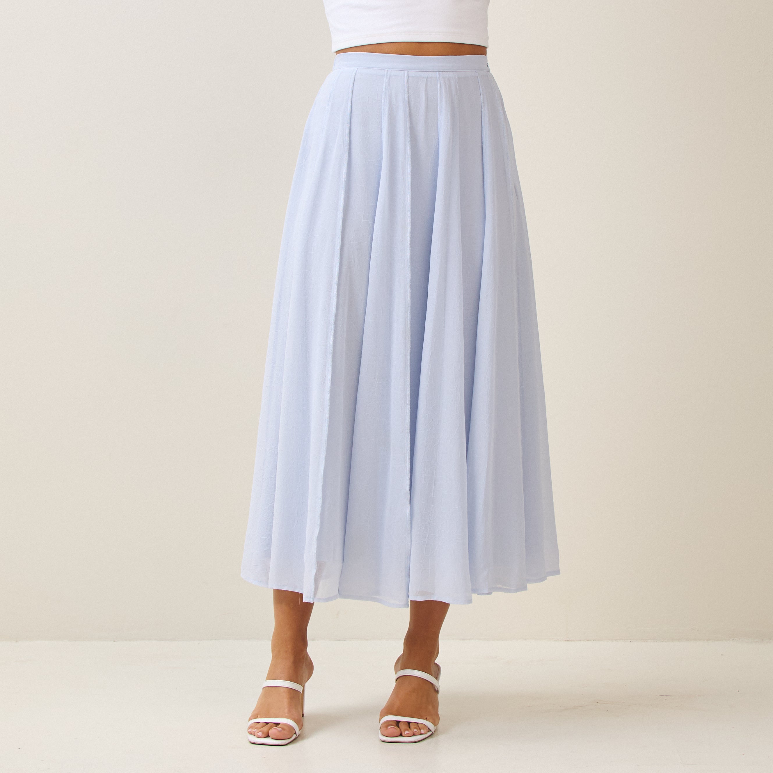 Reverse seam crinkled mesh skirt
