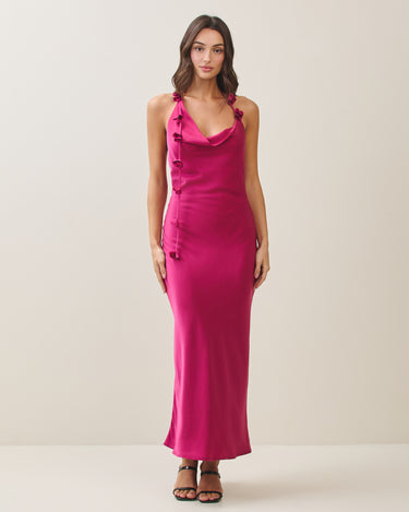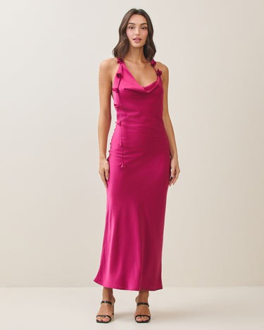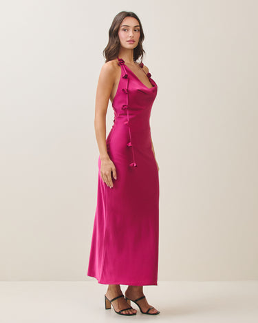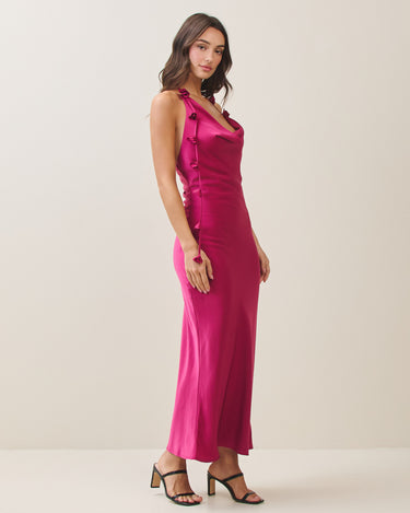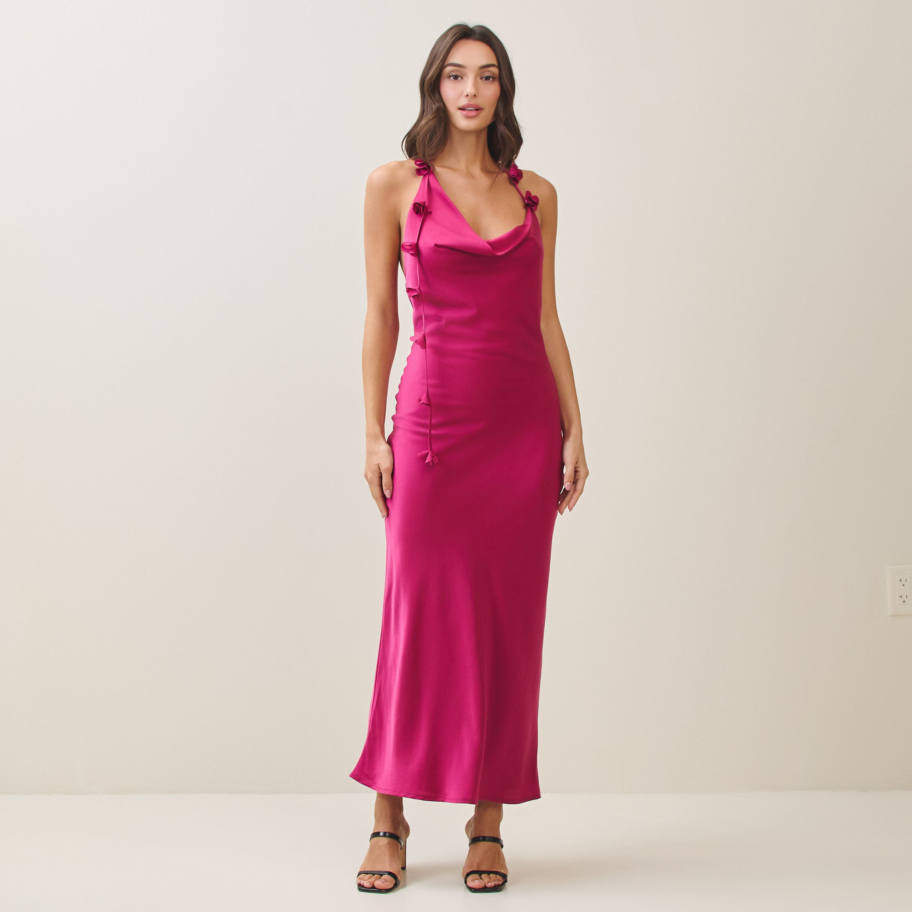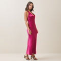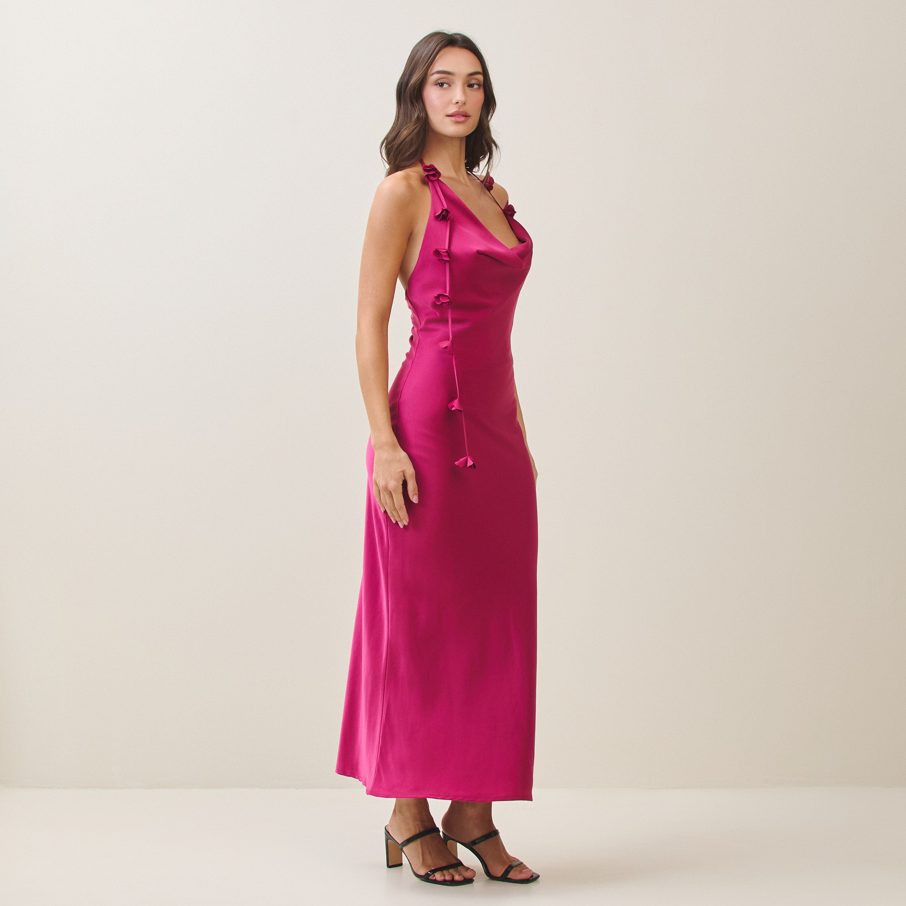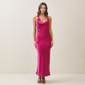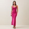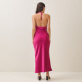 Cowl halter satin dress