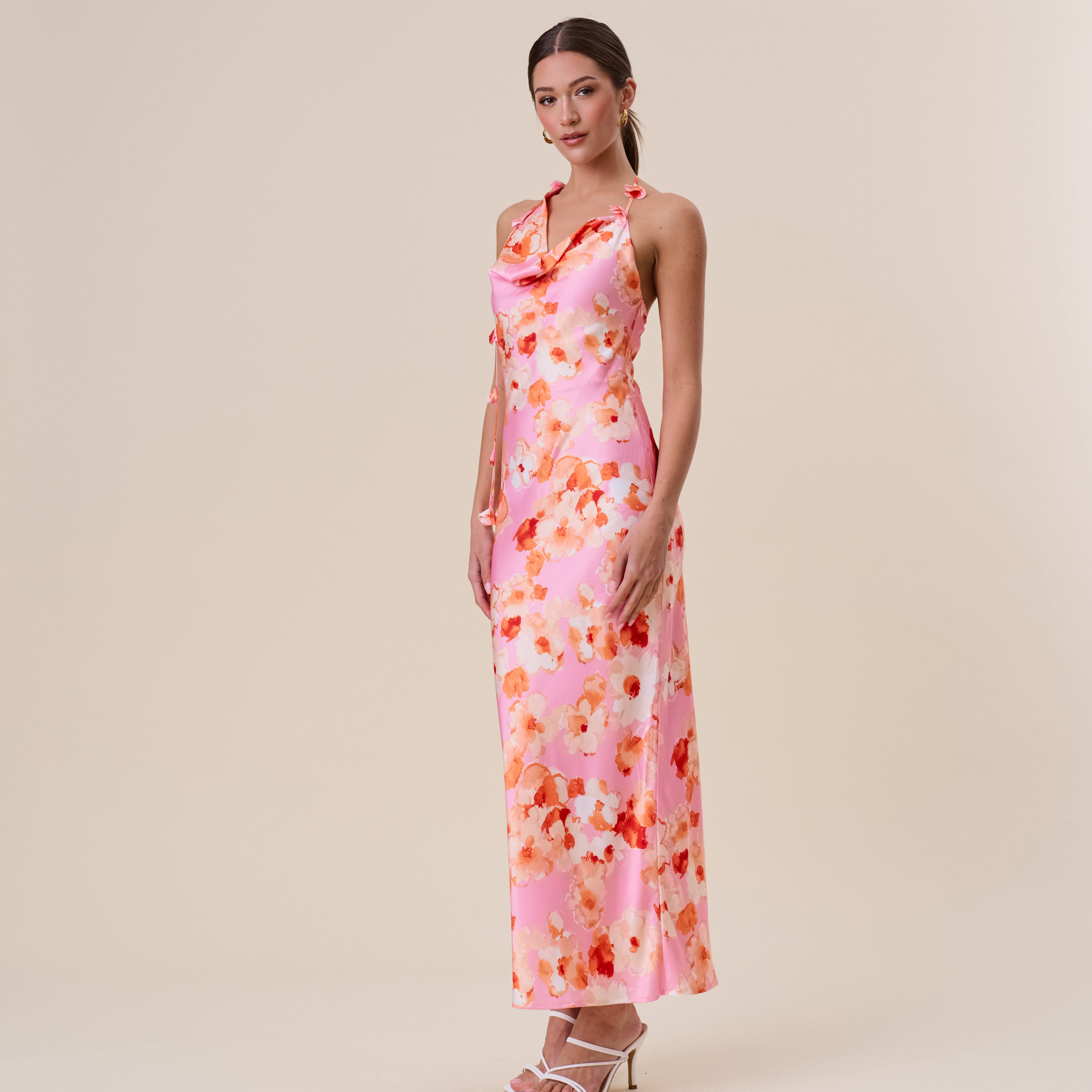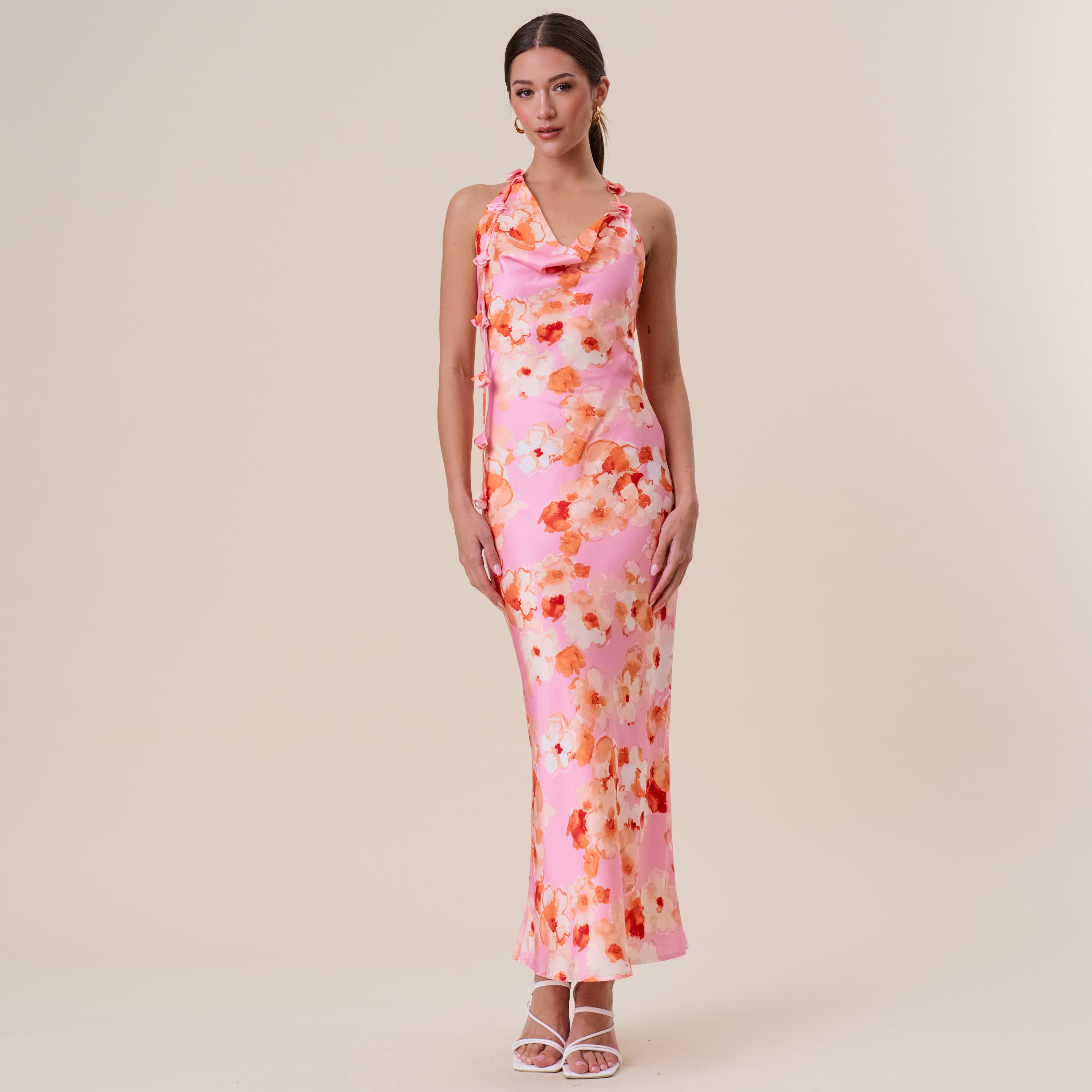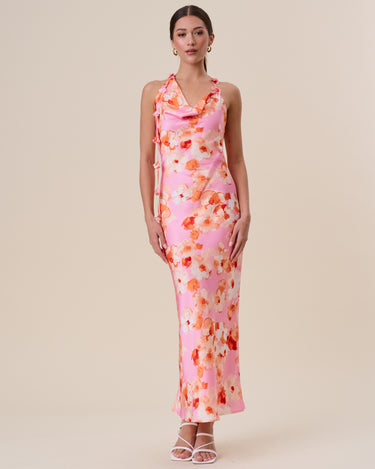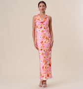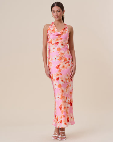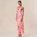 Floral satin halter maxi dress