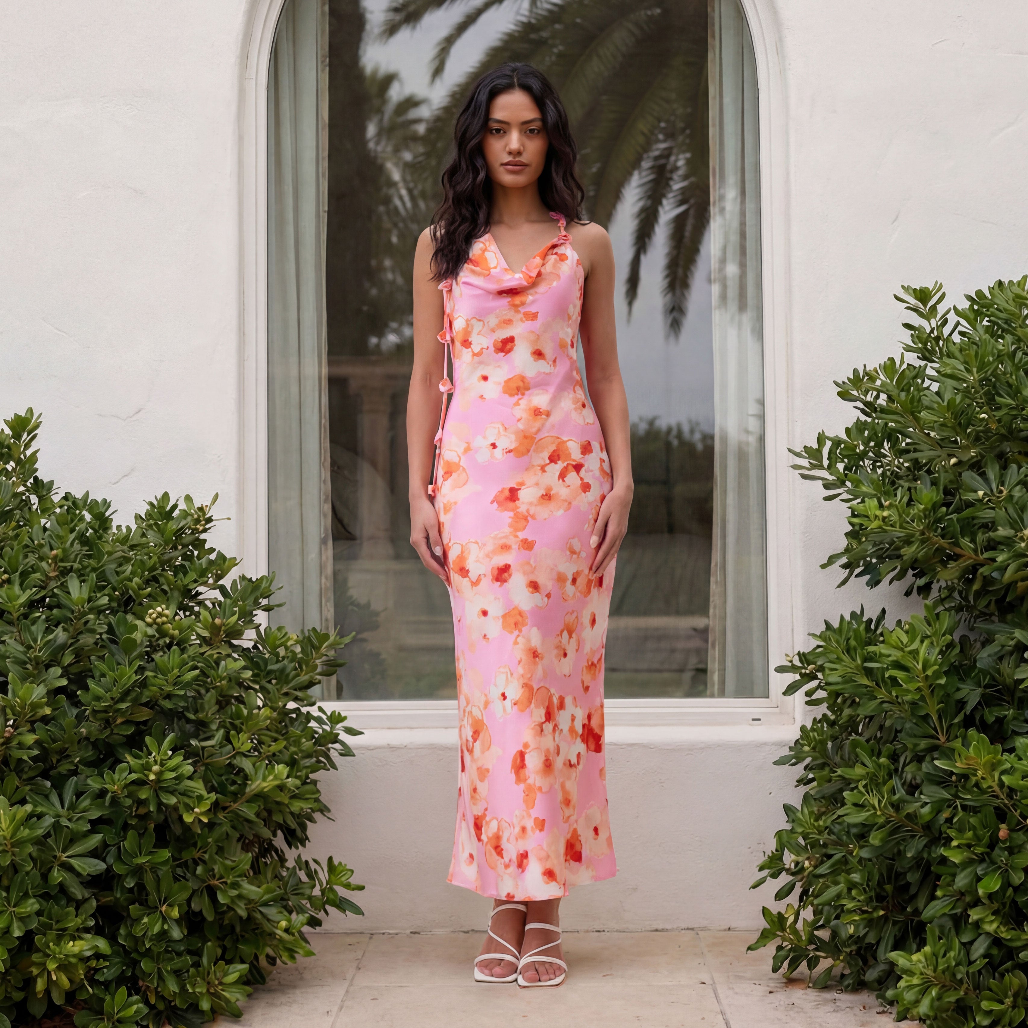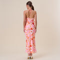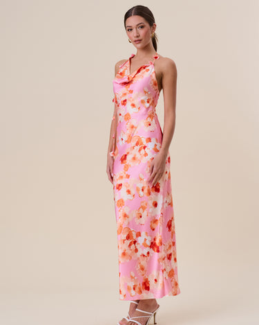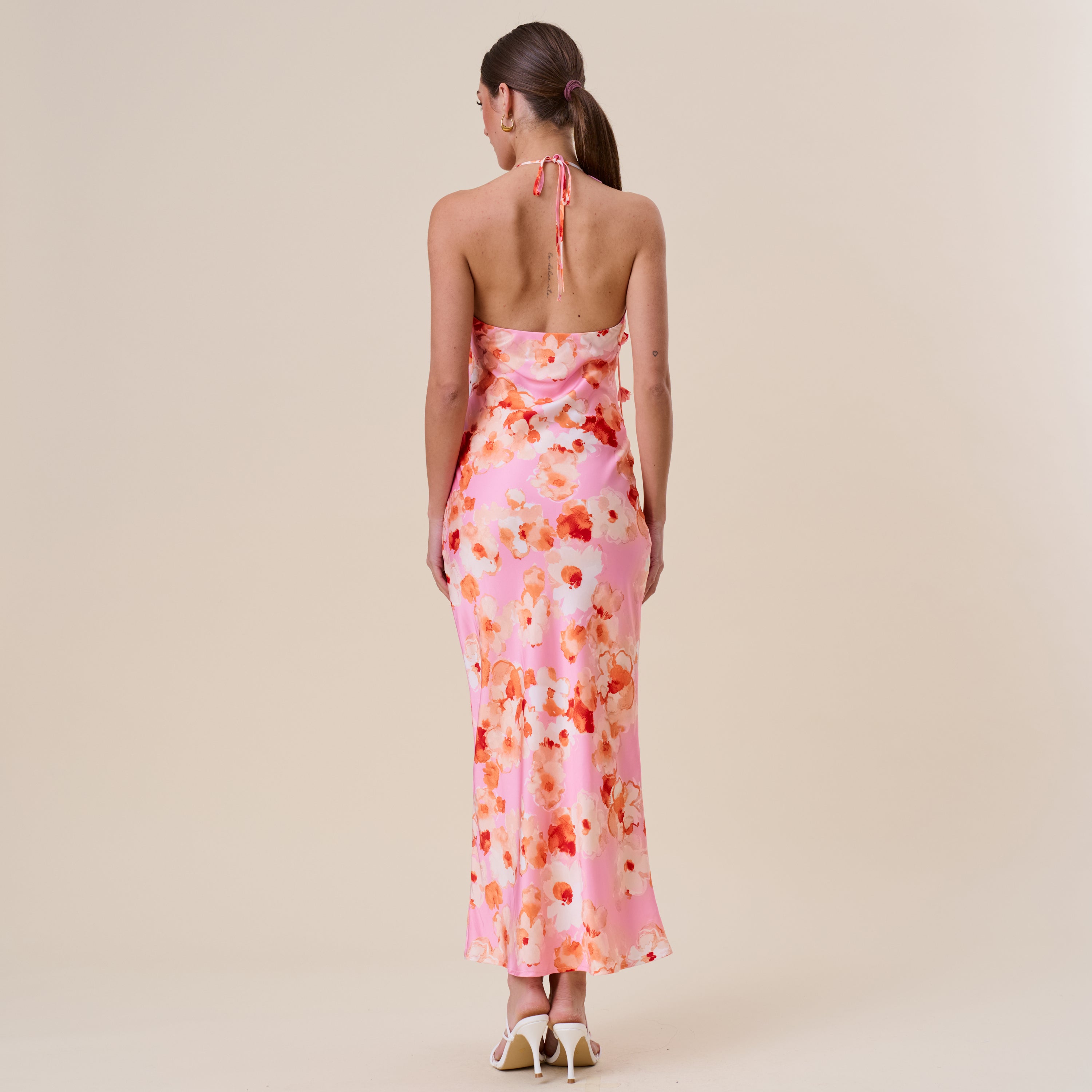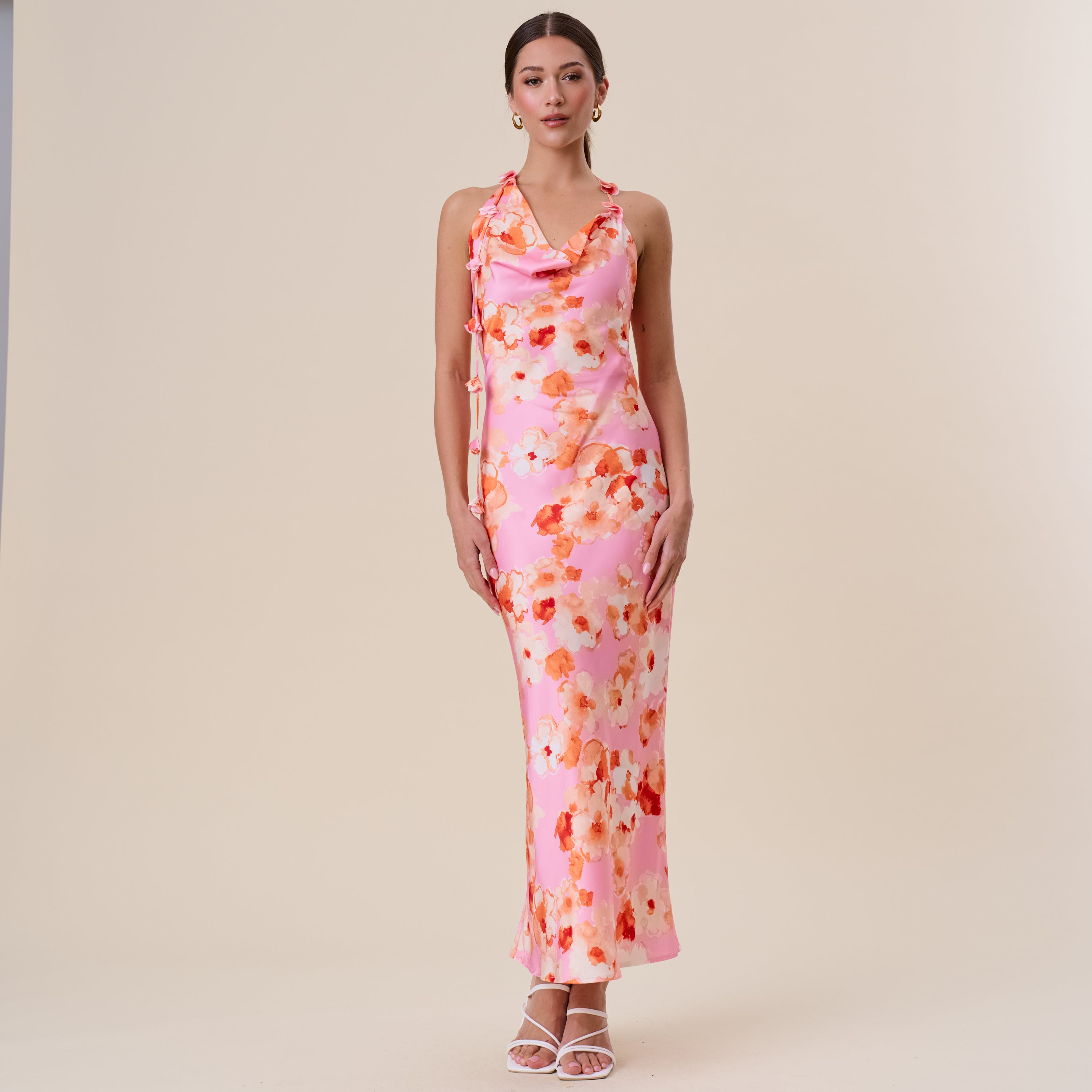 Floral satin halter maxi dress