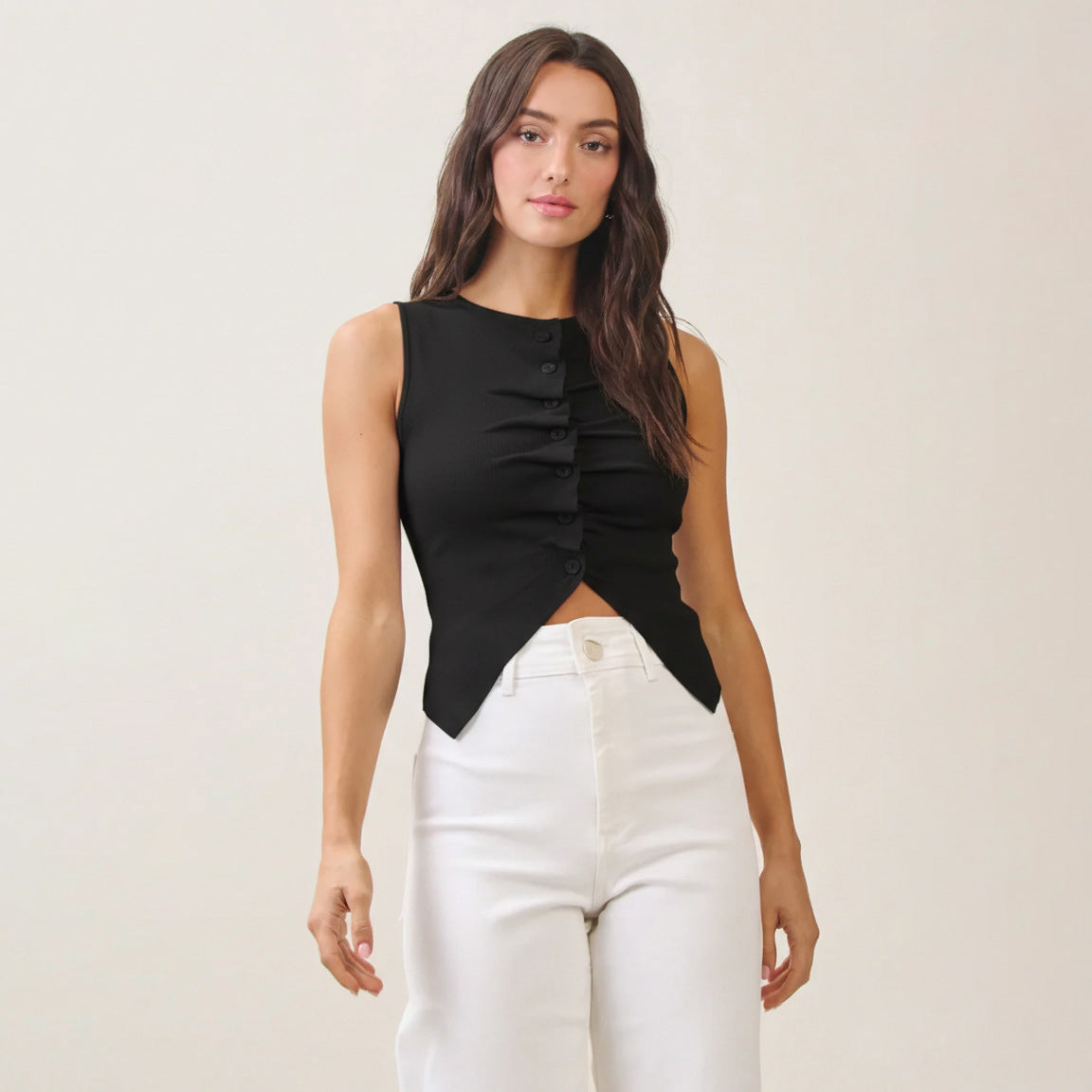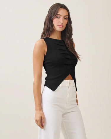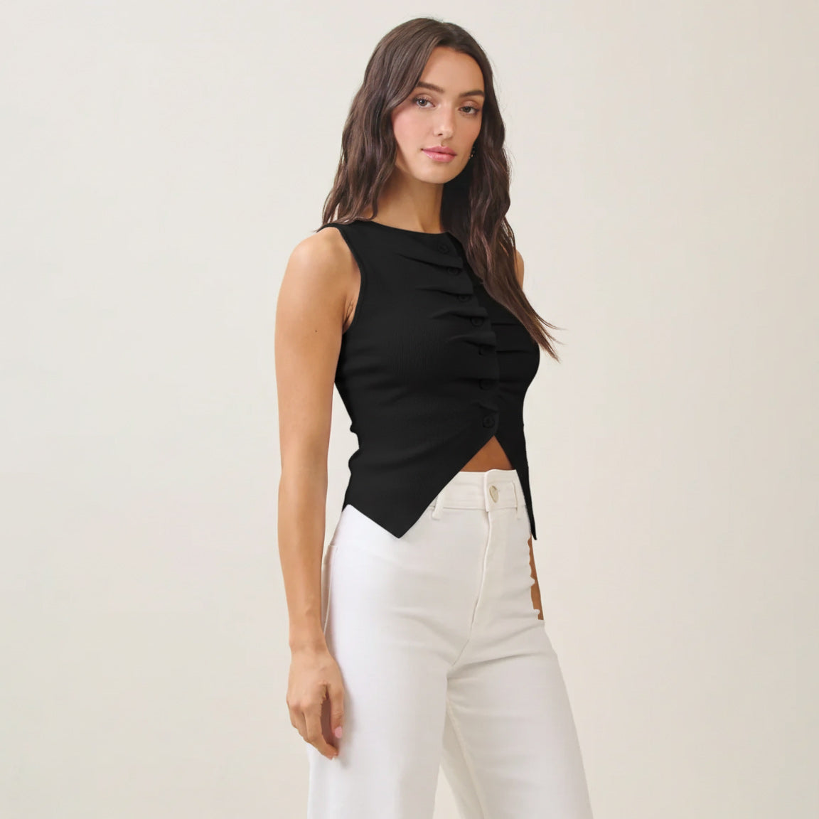 Button pleated split knit top