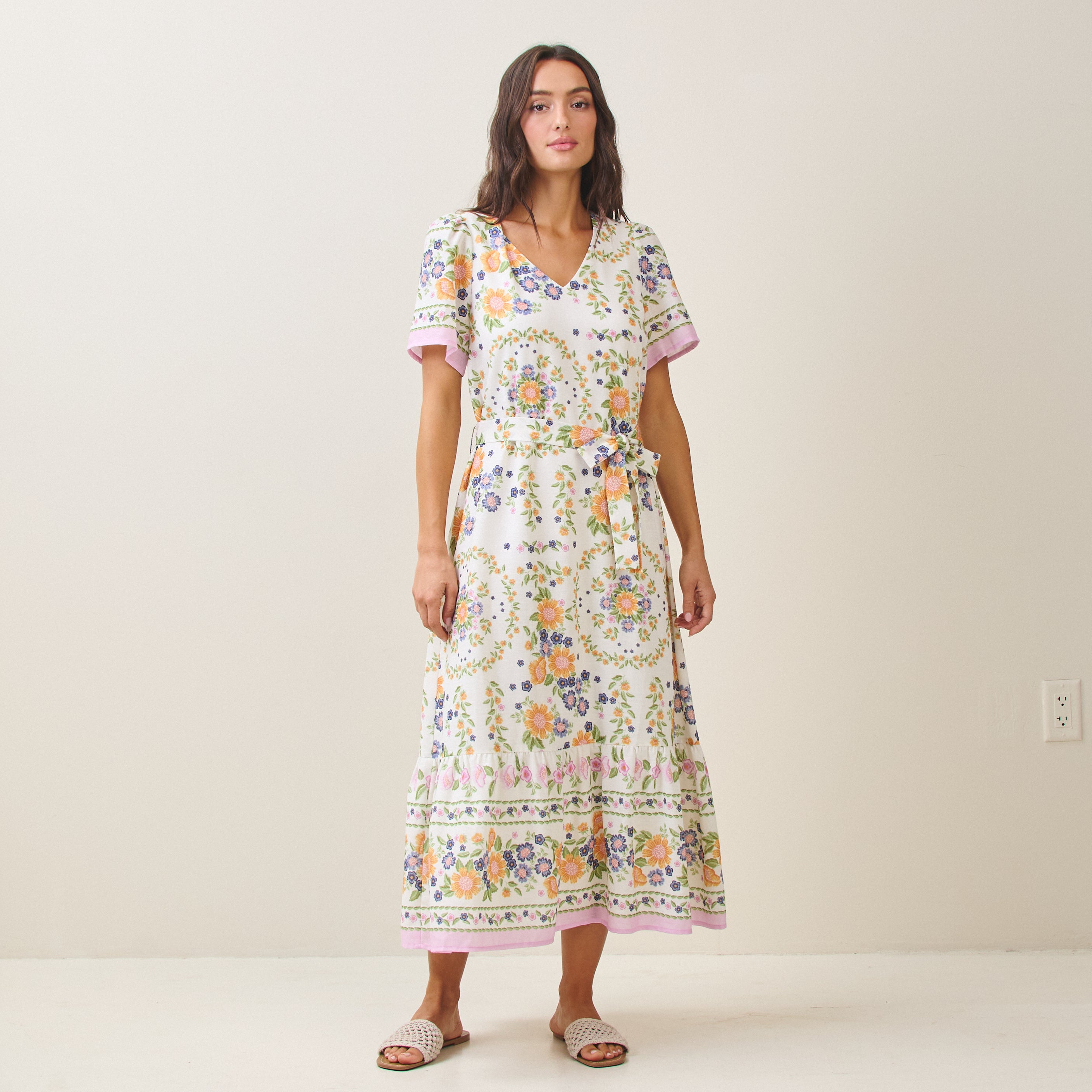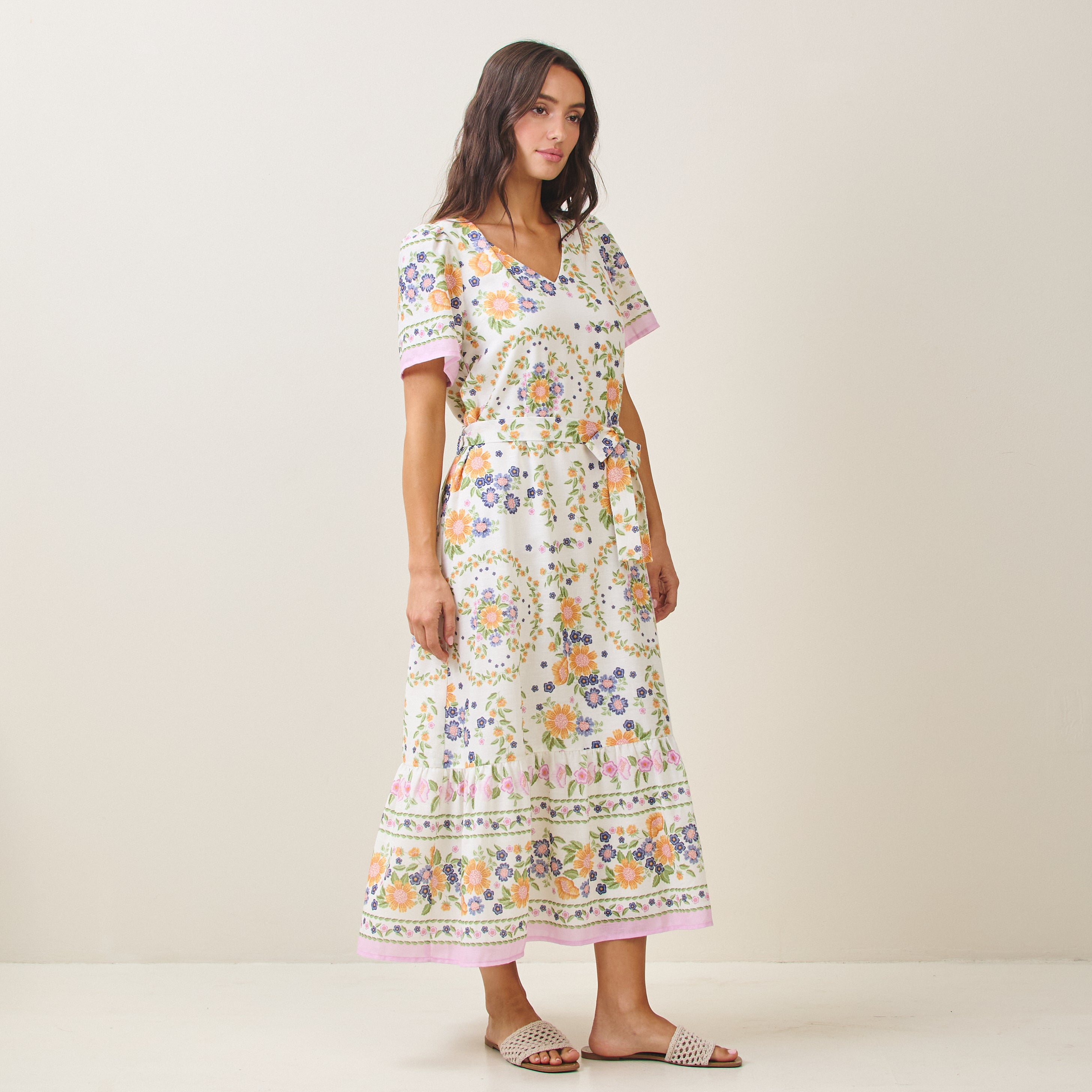 Floral tie waist maxi dress