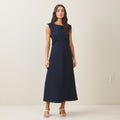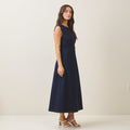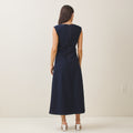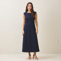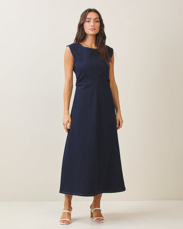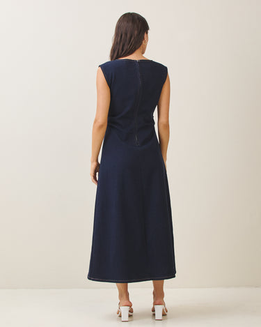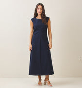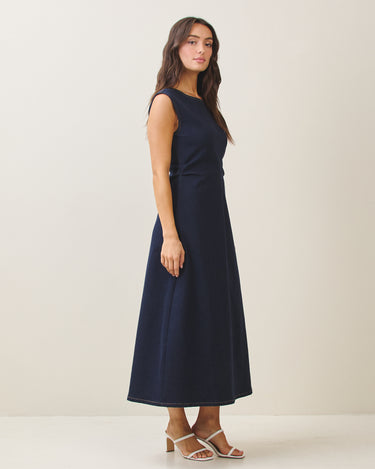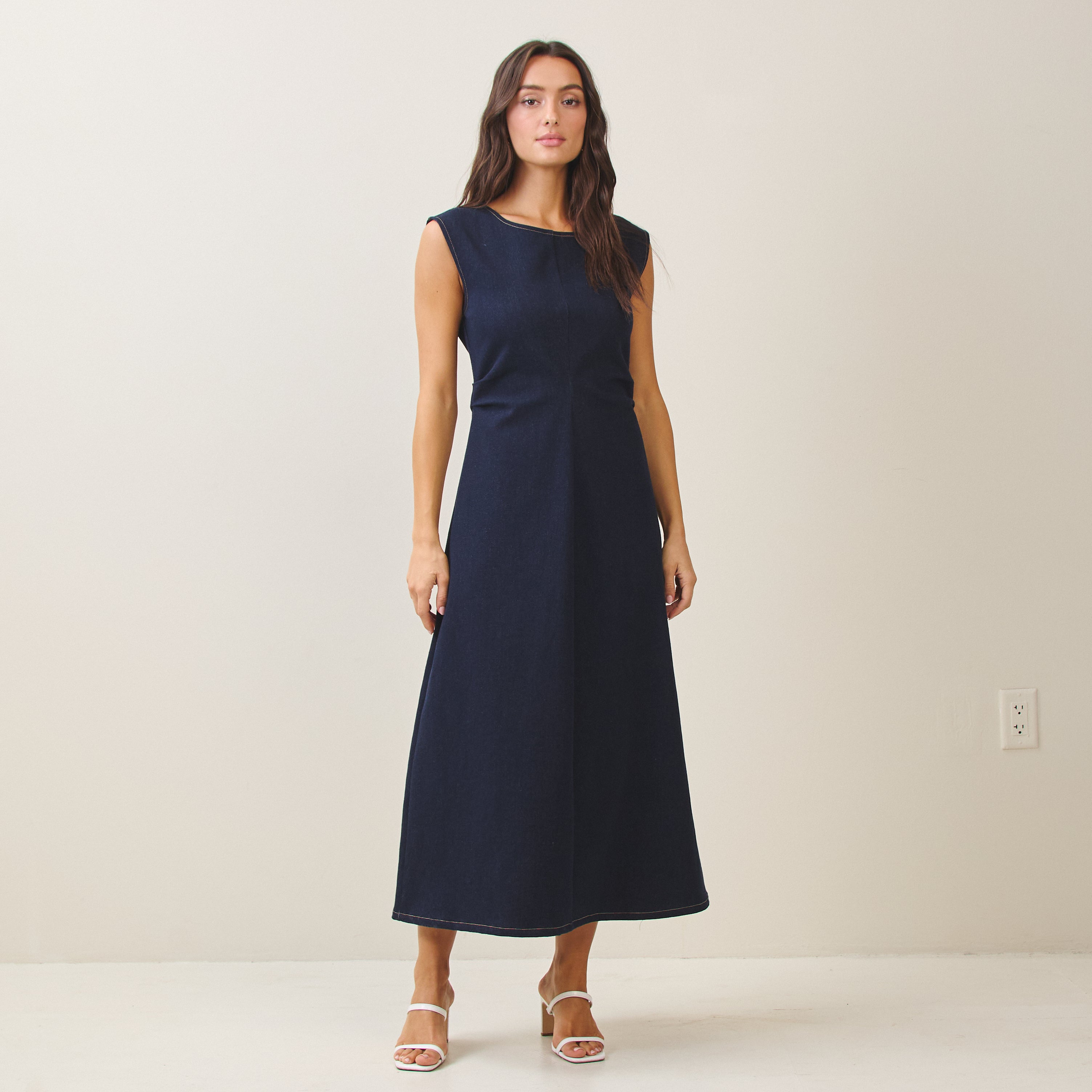 Sleeveless side ruched denim maxi dress