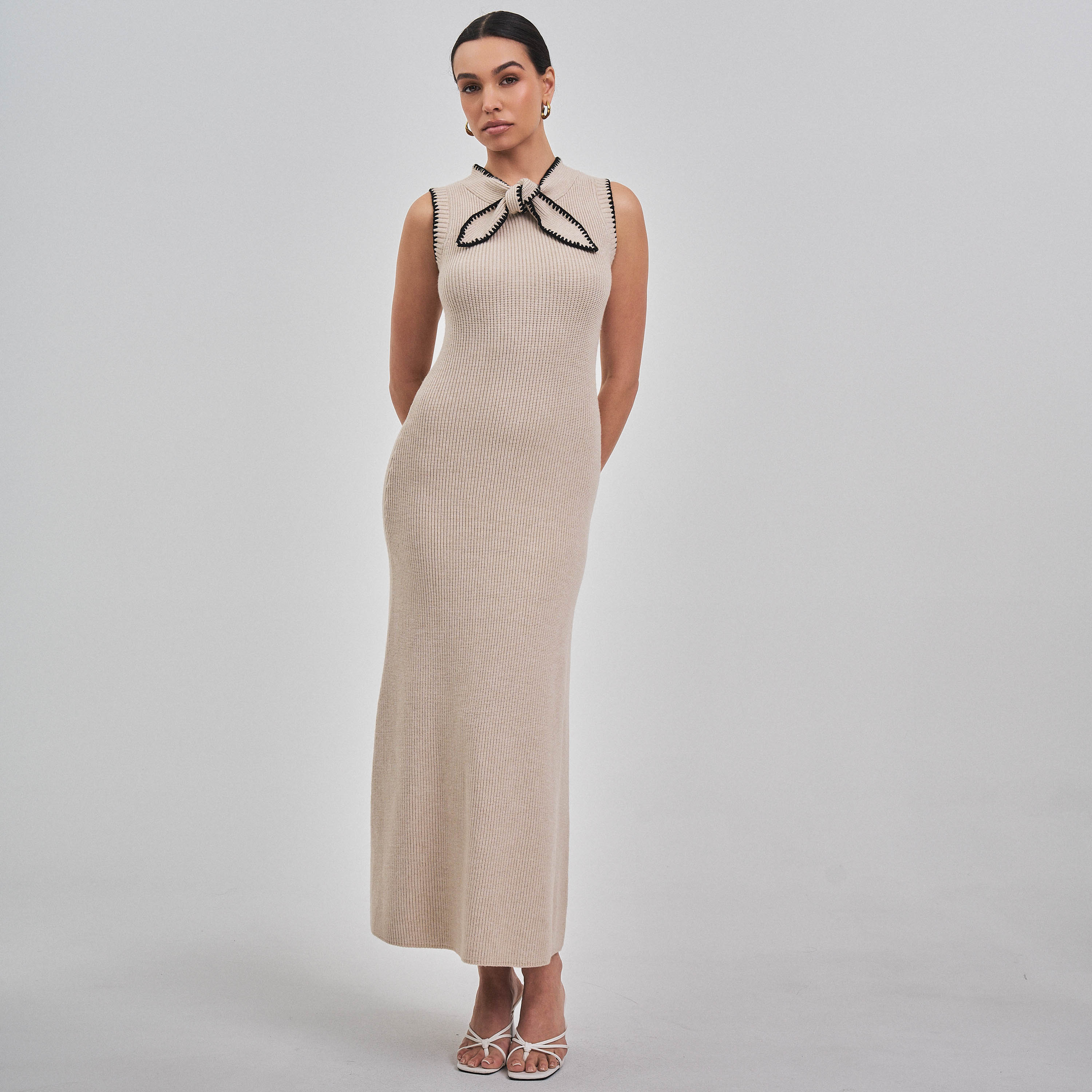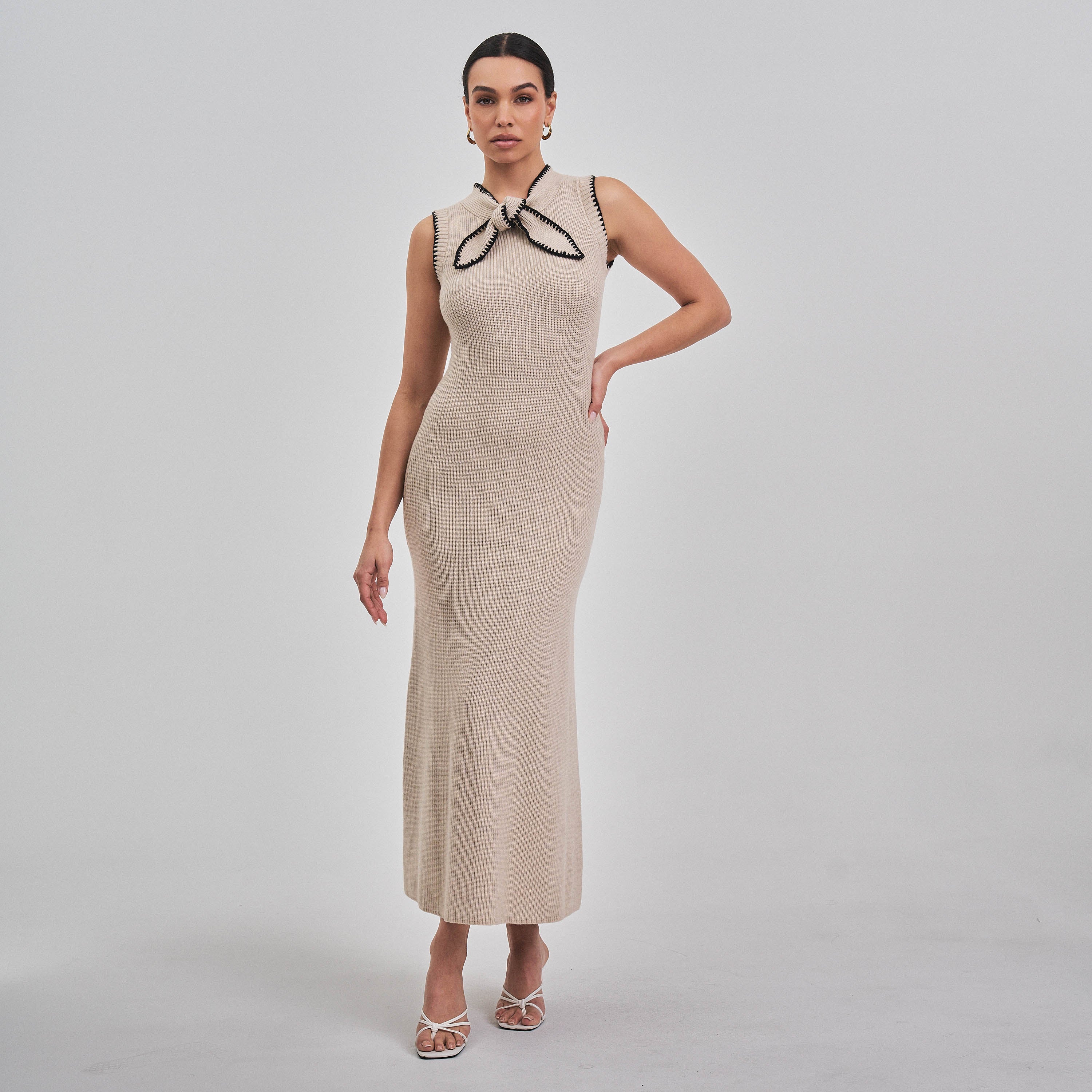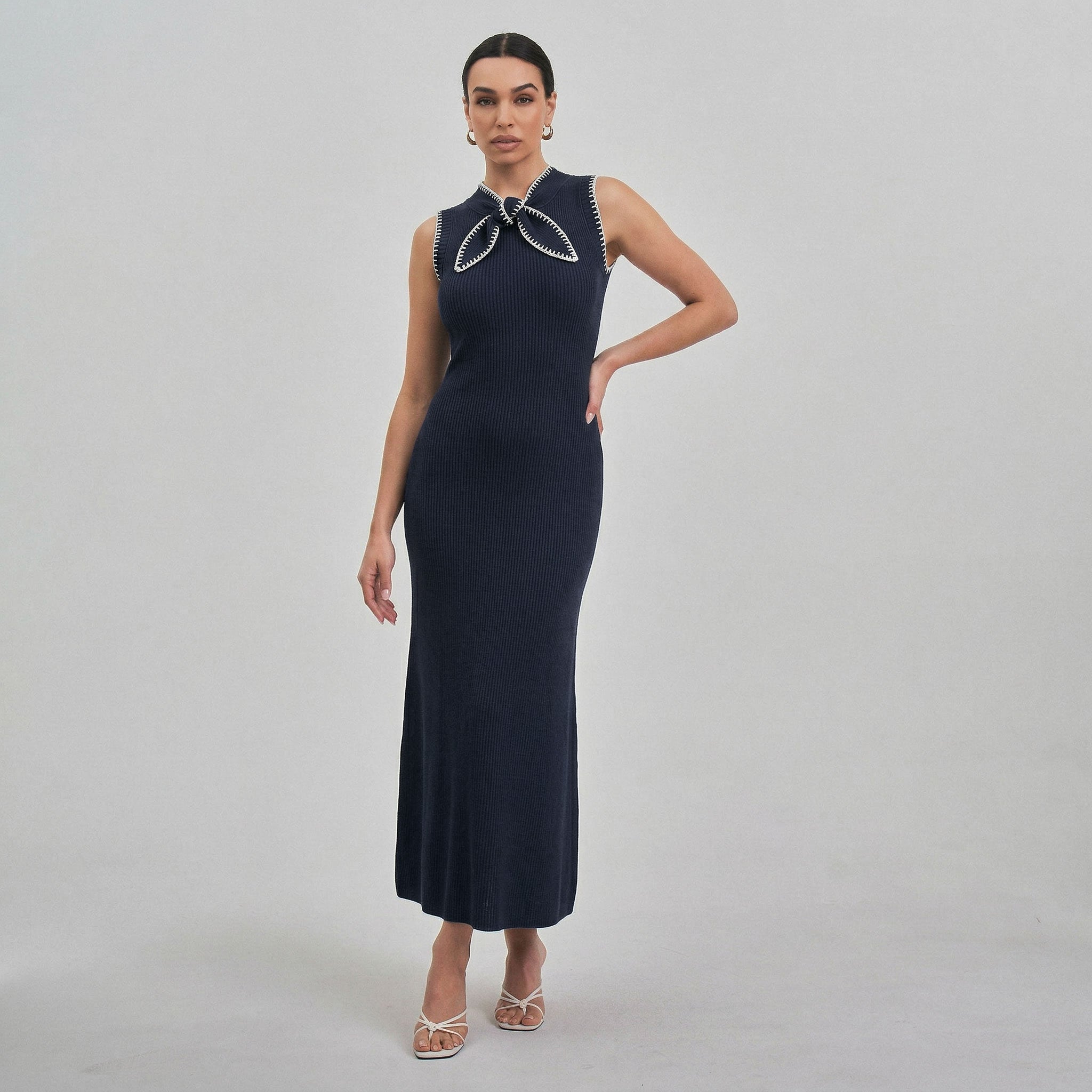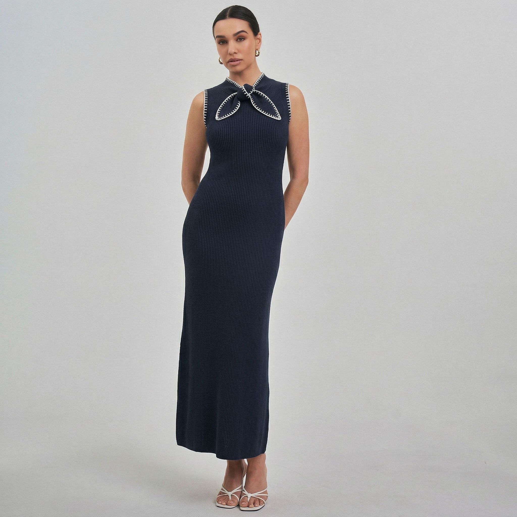 Whipstitch bow knit maxi dress