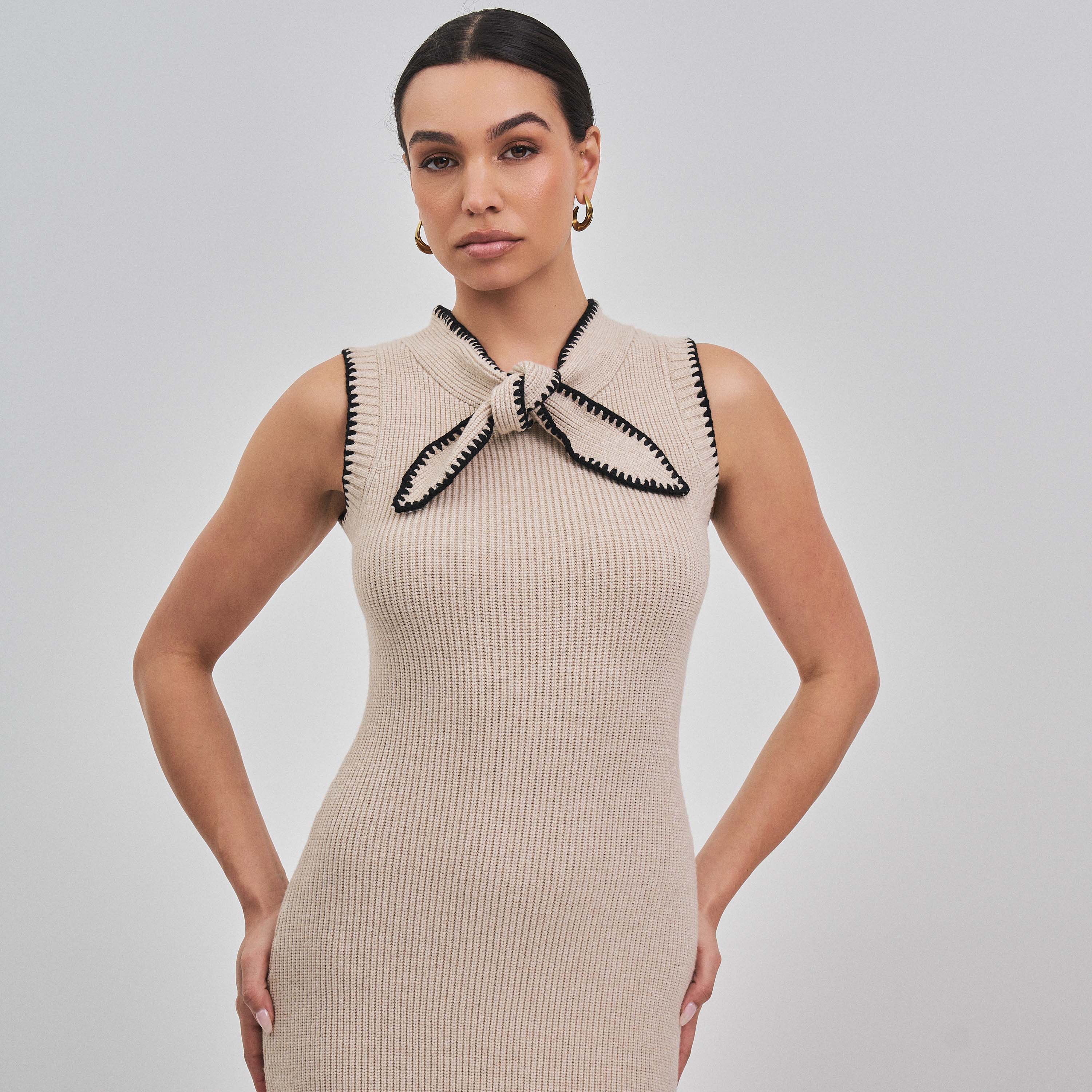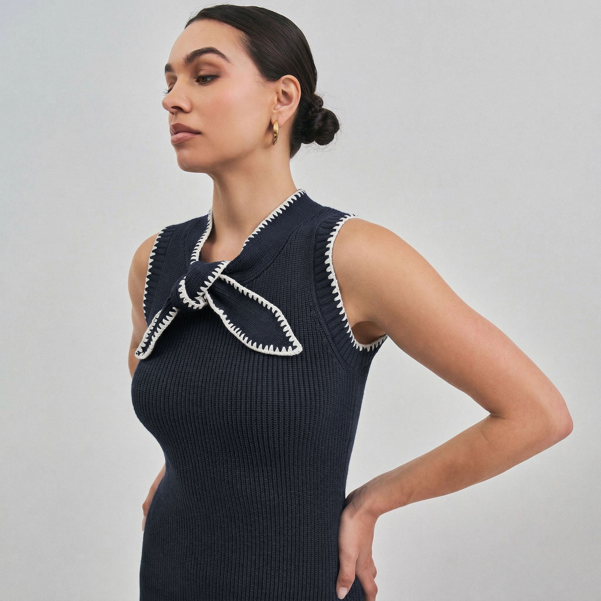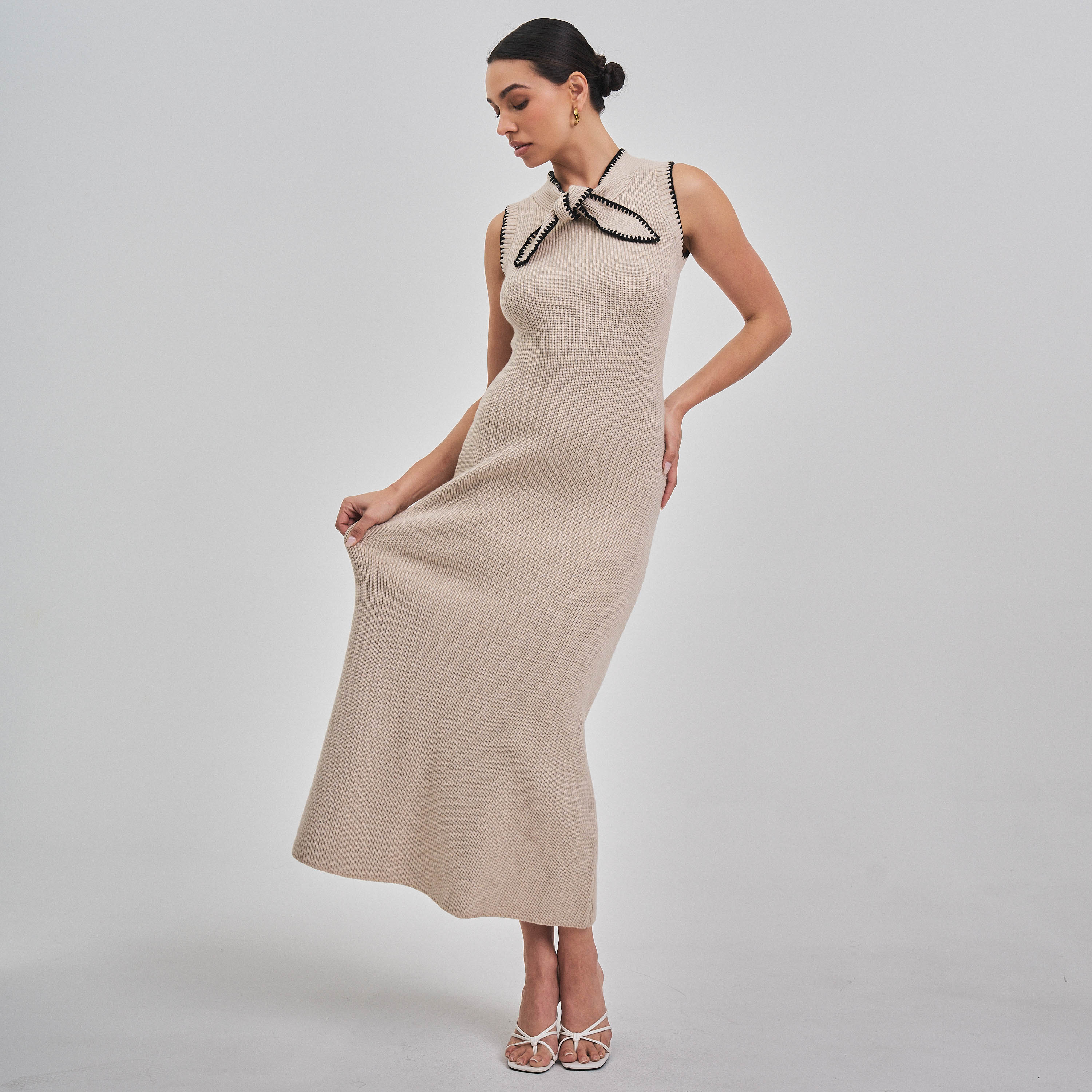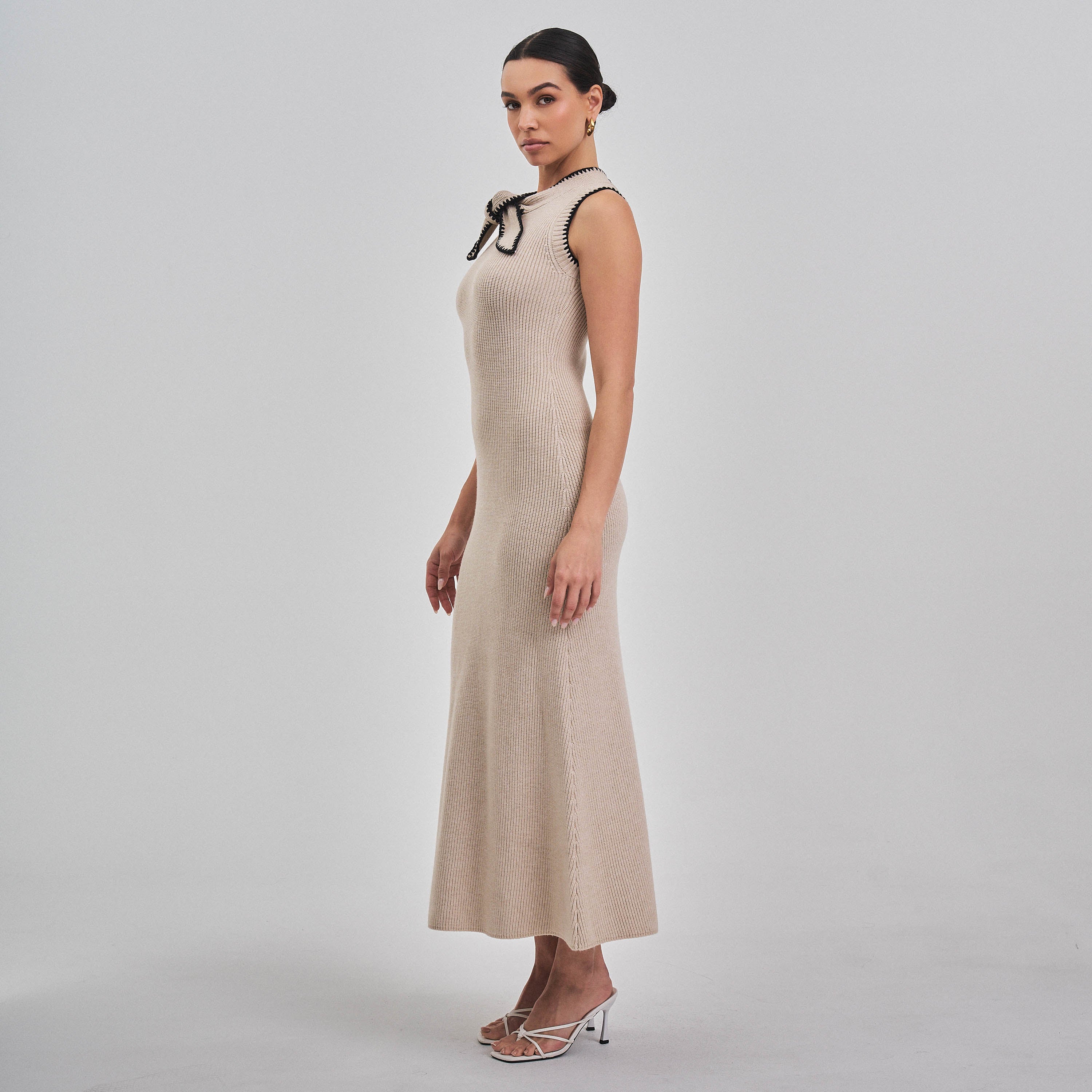 Whipstitch bow knit maxi dress