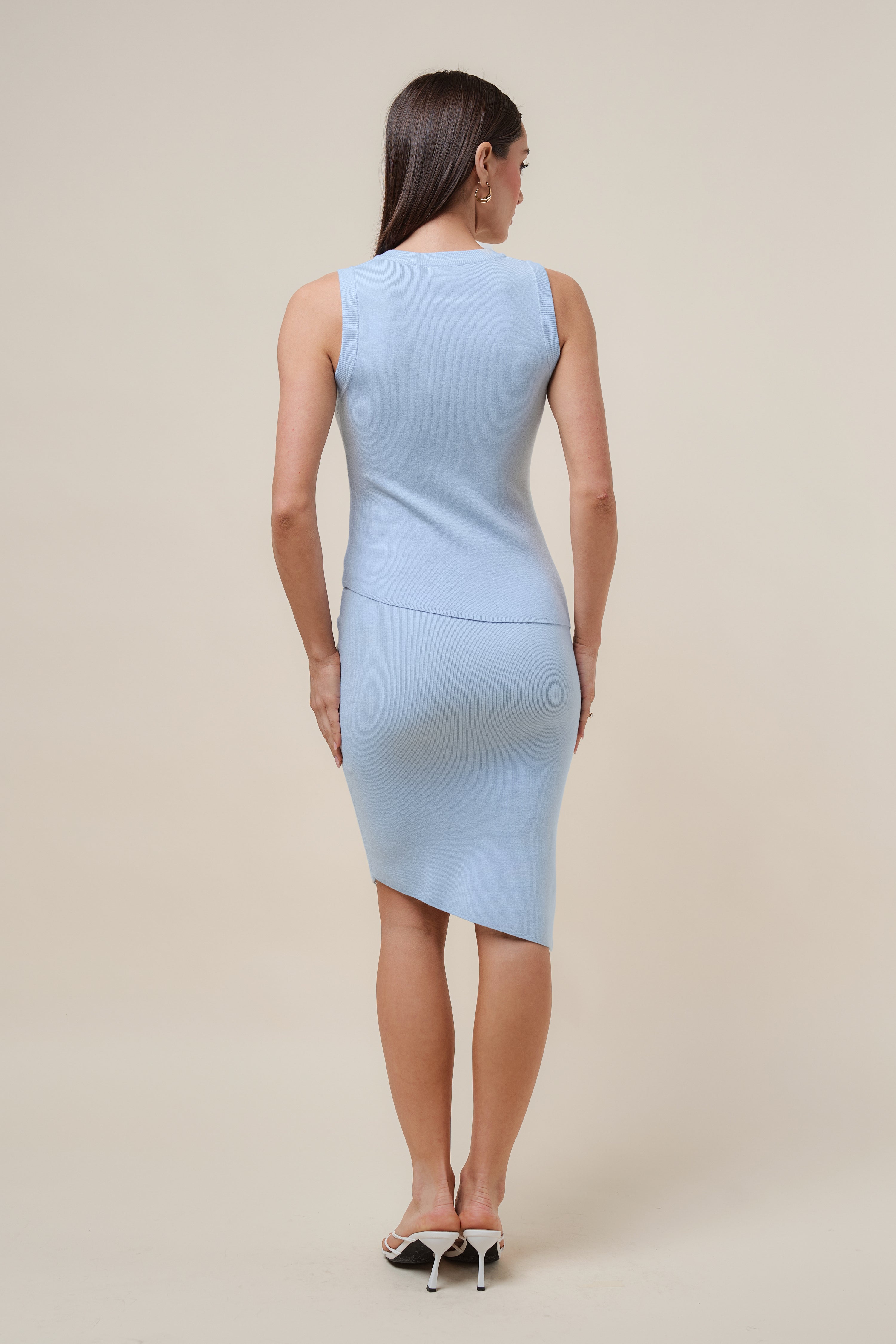 - Sleeveless sweater and midi skirt