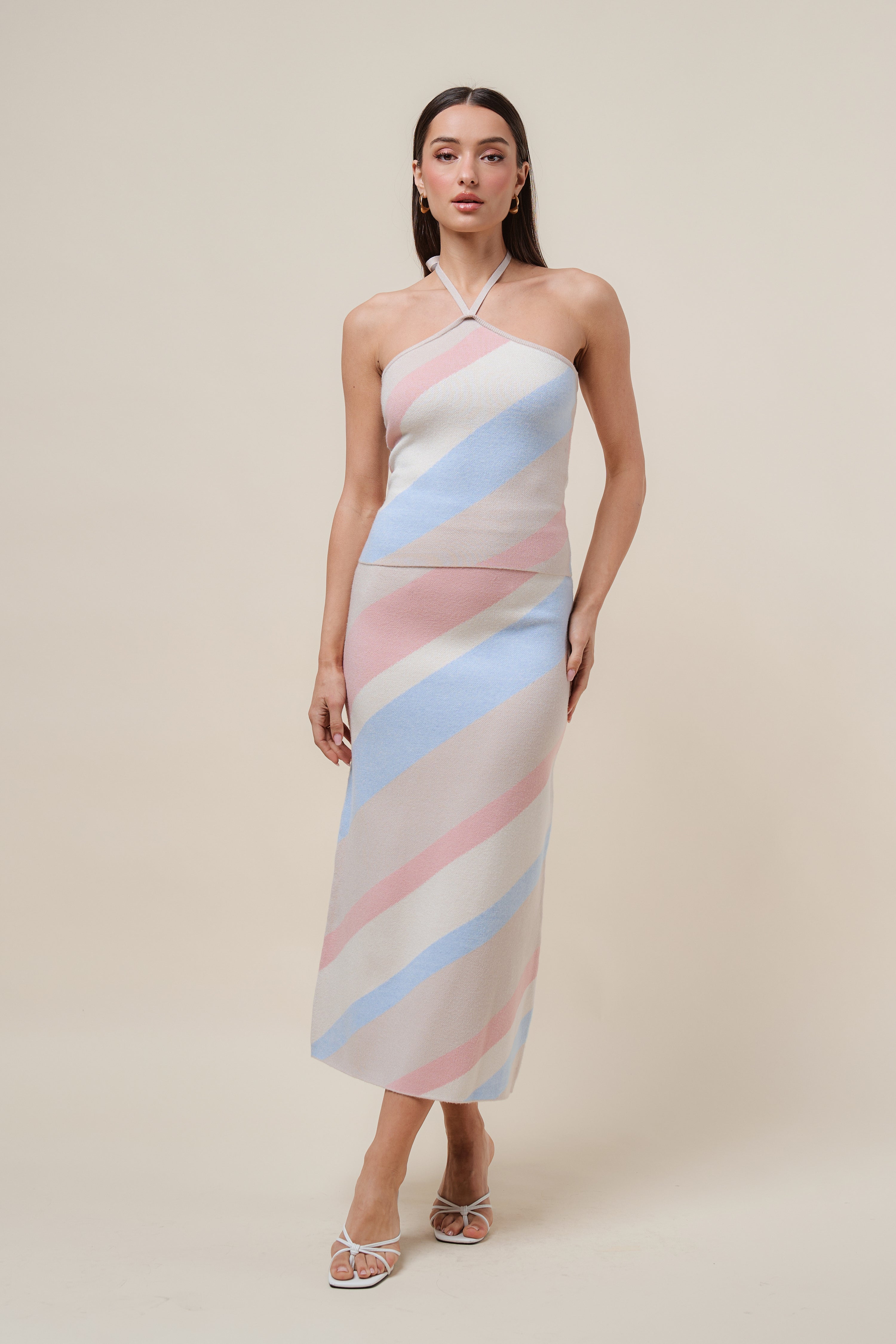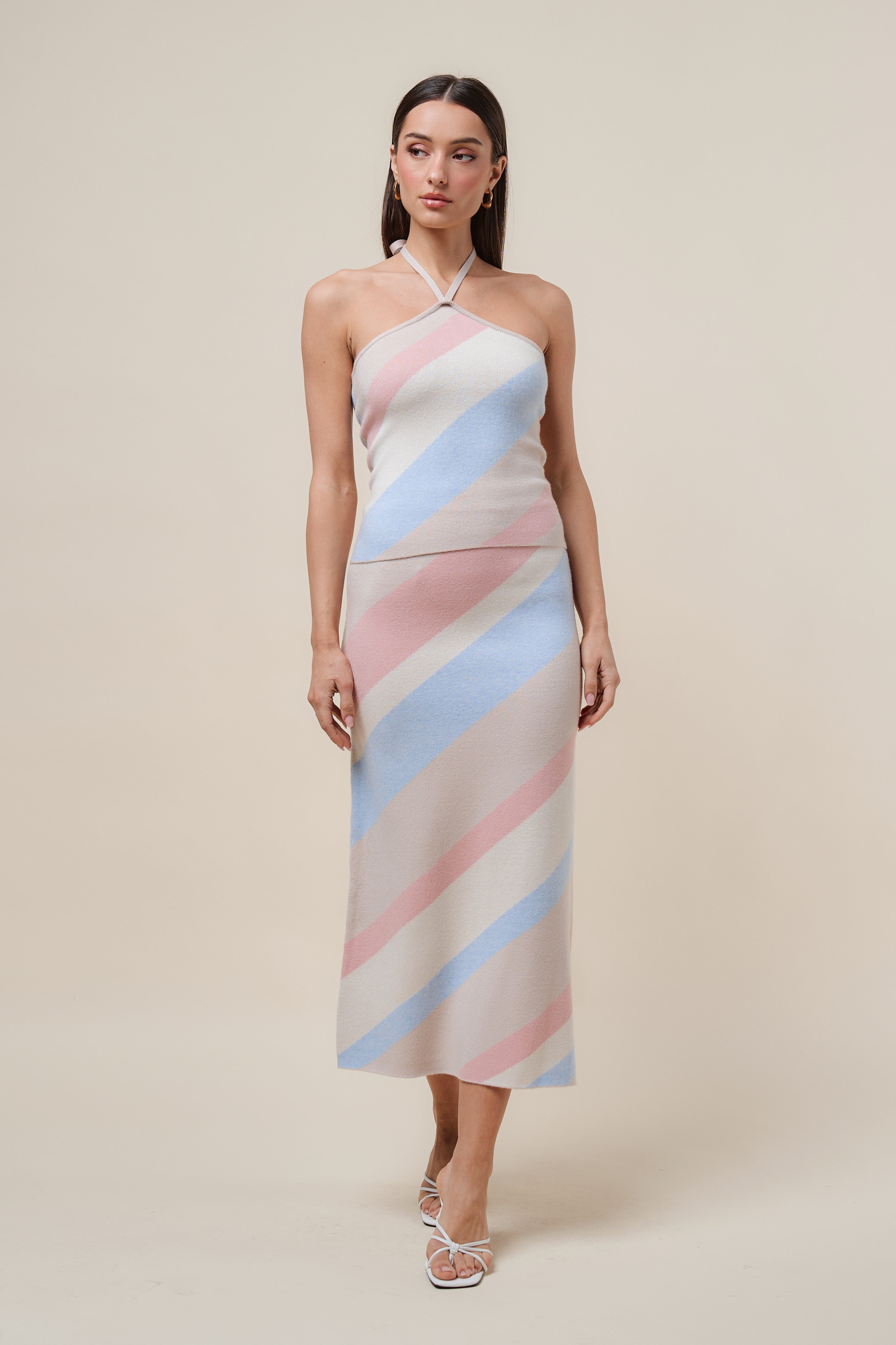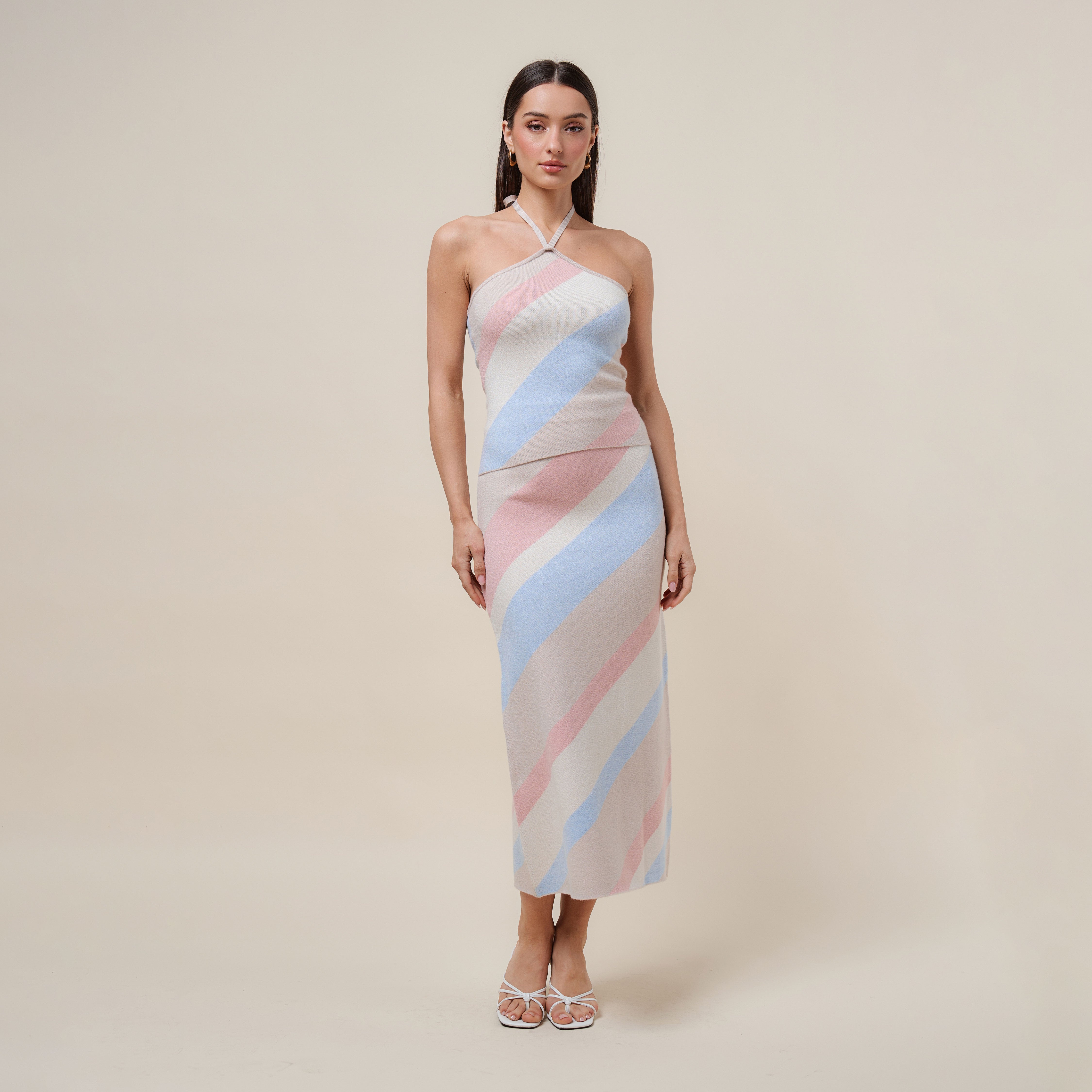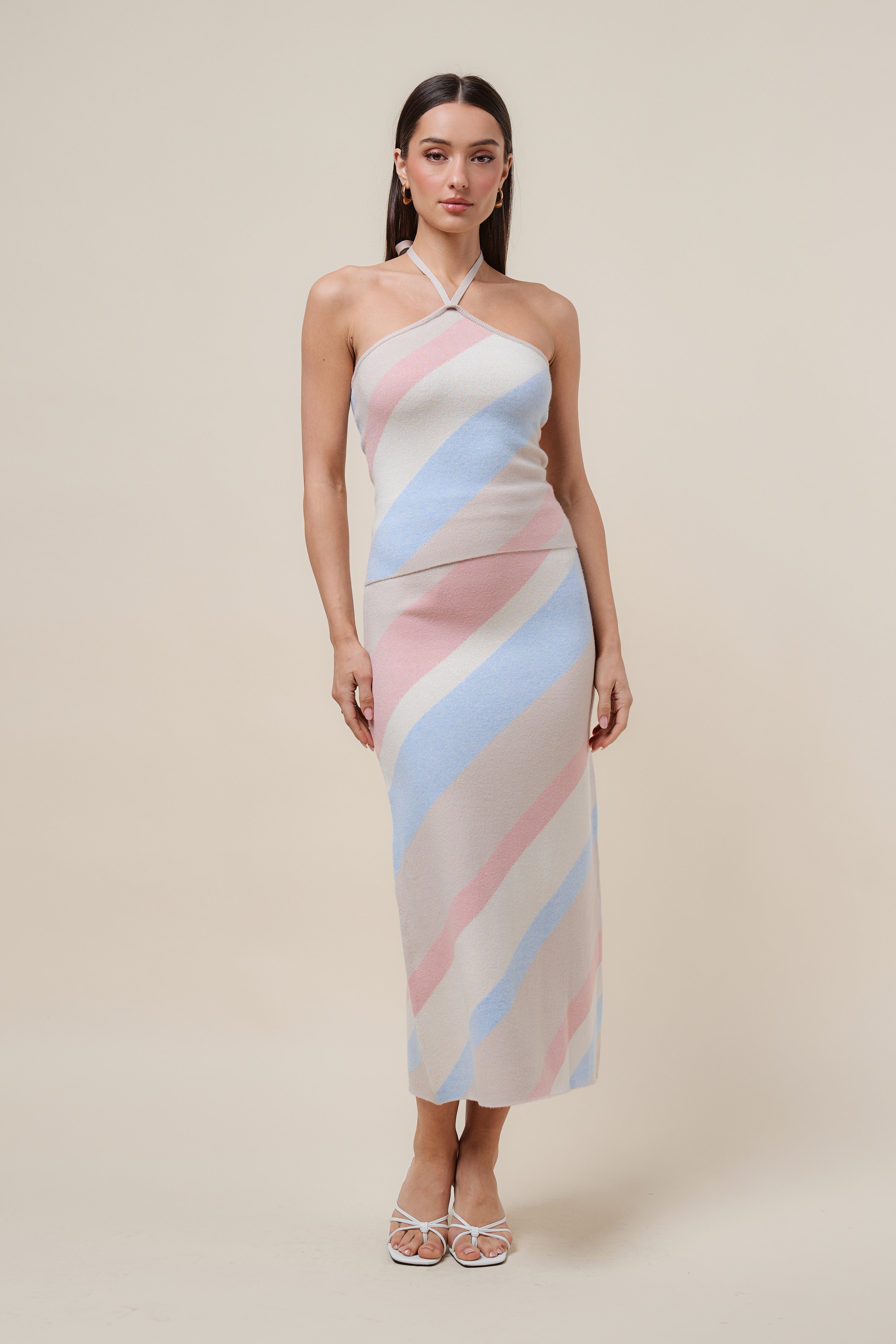 Diagonal stripe halter knit dress
