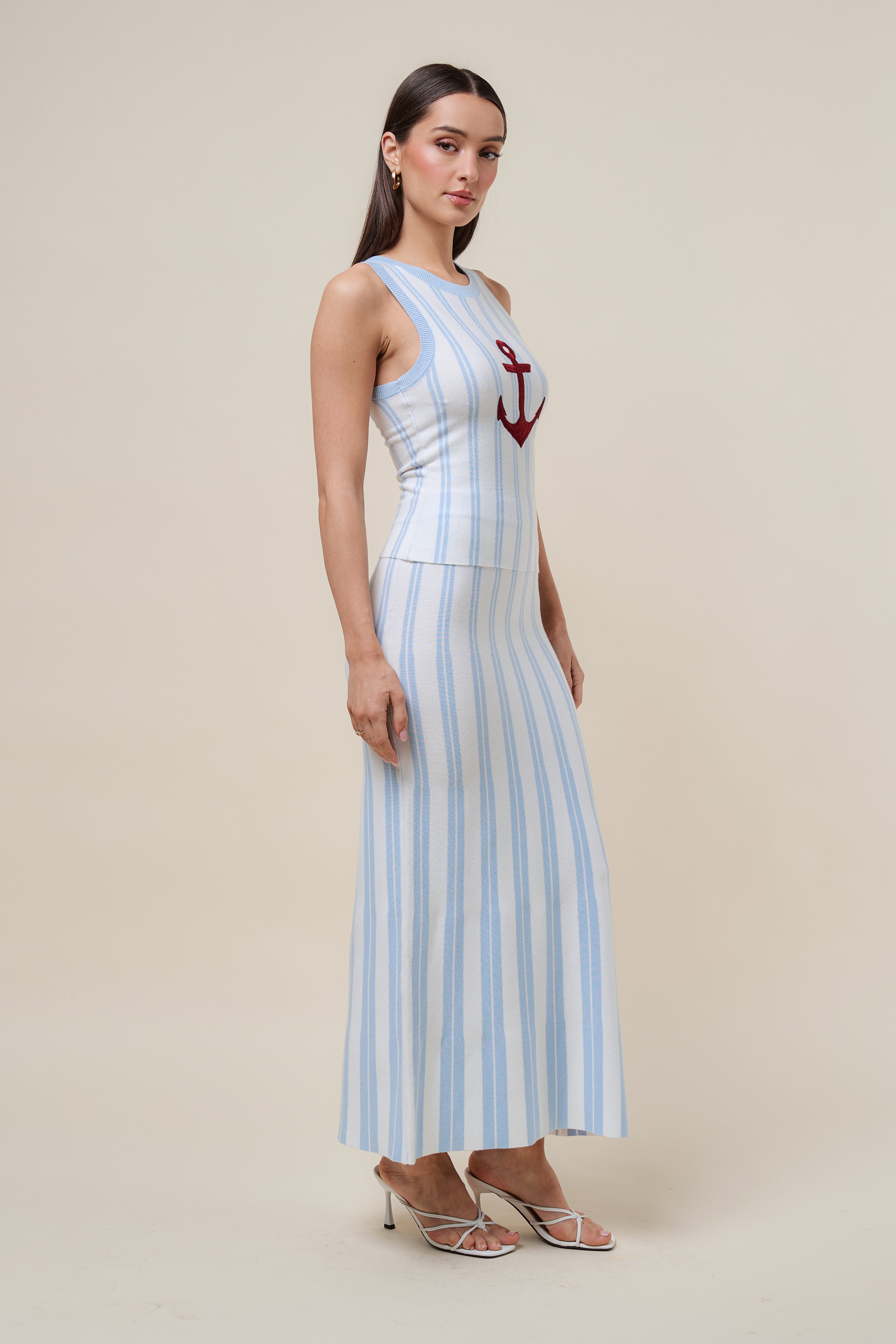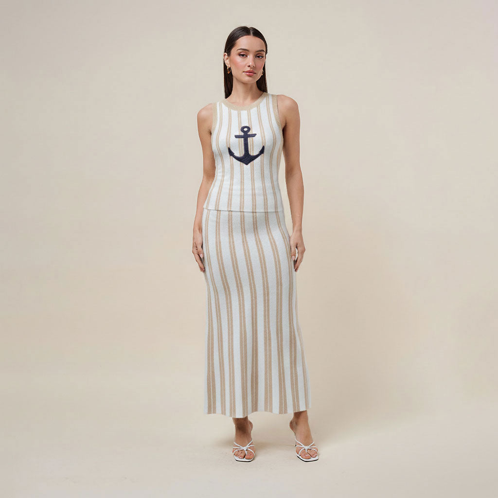 Anchor striped knit top and skirt set