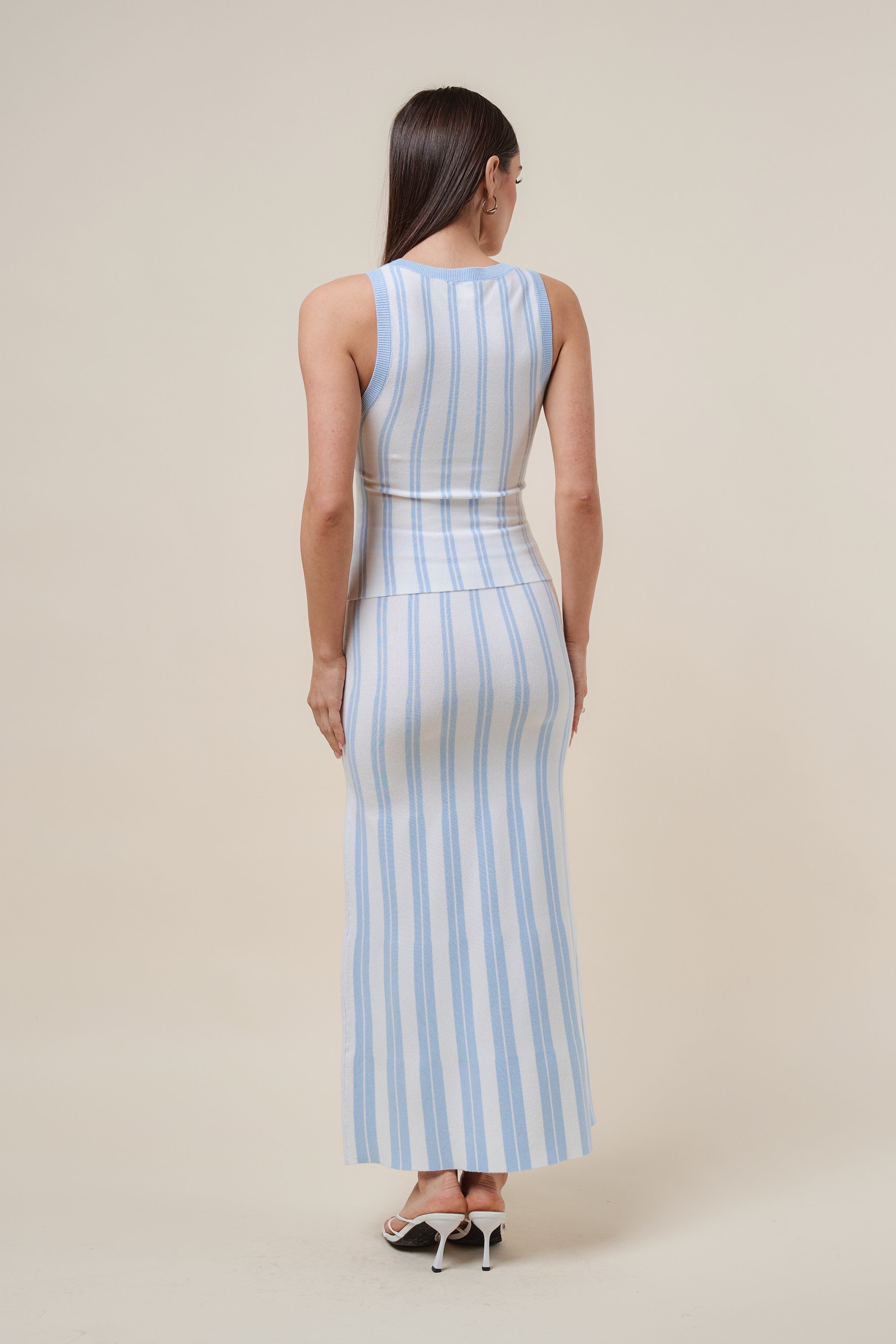 - Sleeveless sweater and maxi skirt