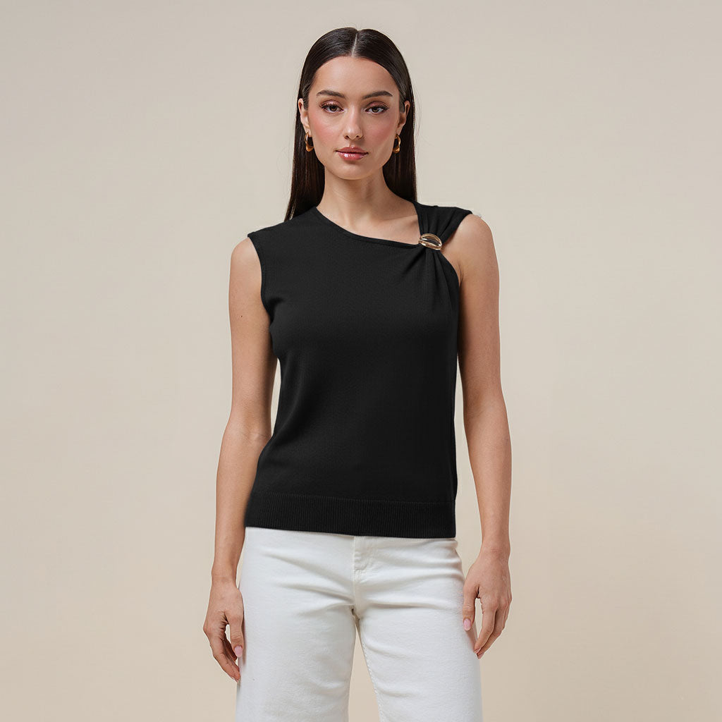Asymmetrical top with metal ring