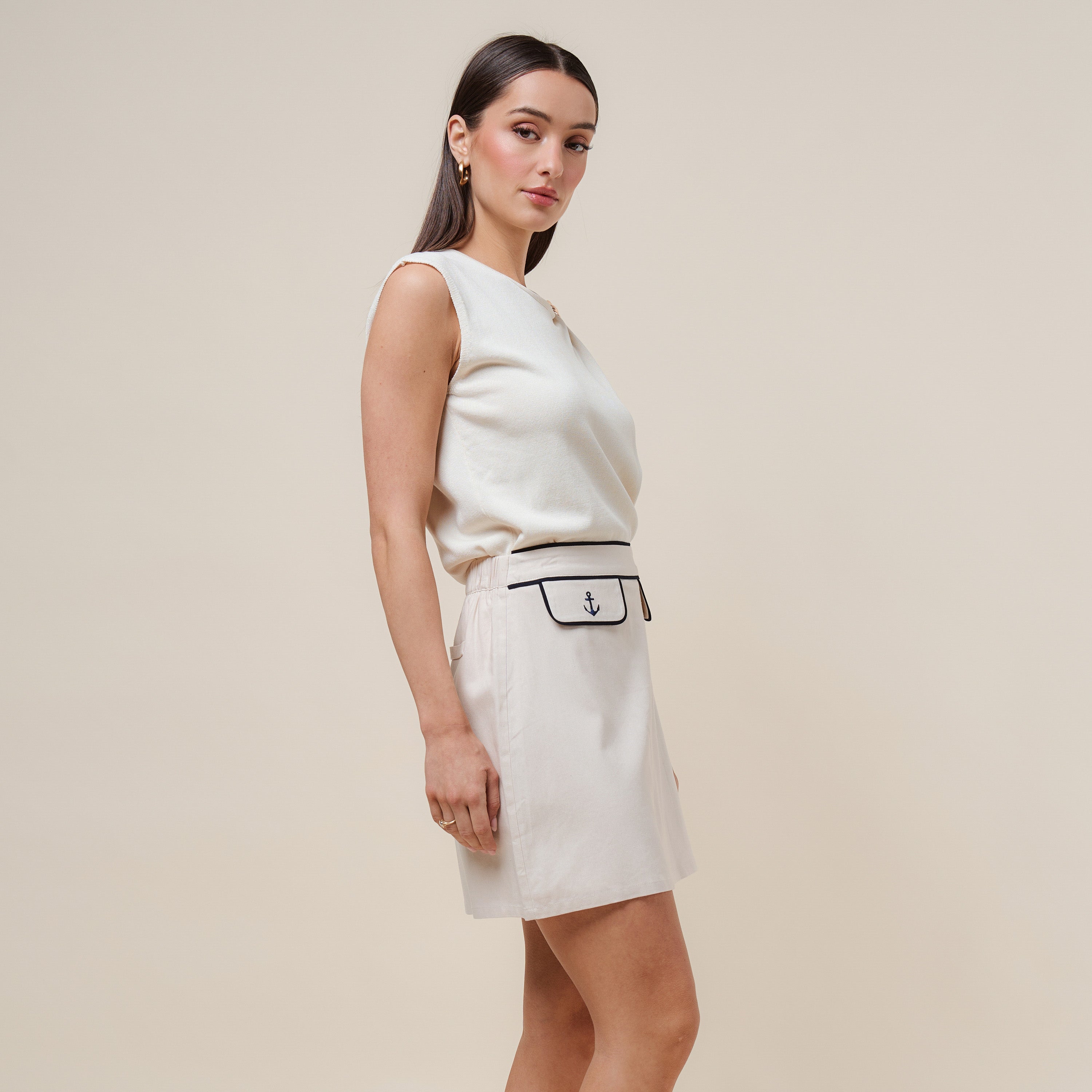 - Styled with AP3309(shorts), AK3310(mini skirt), AK3168(metal ring skirt) & AK3219(contrast maxi skirt)