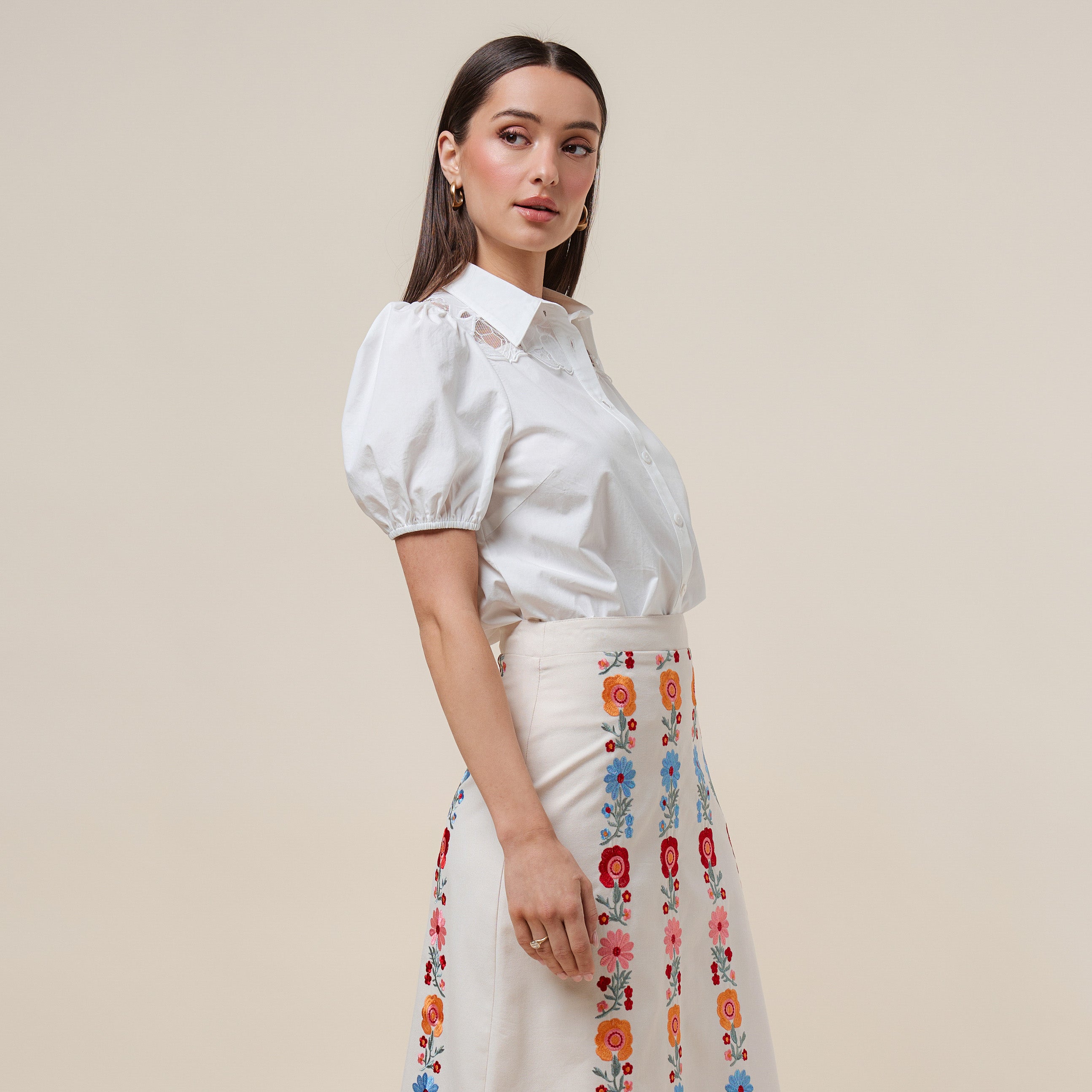 Puff sleeve lace blouse