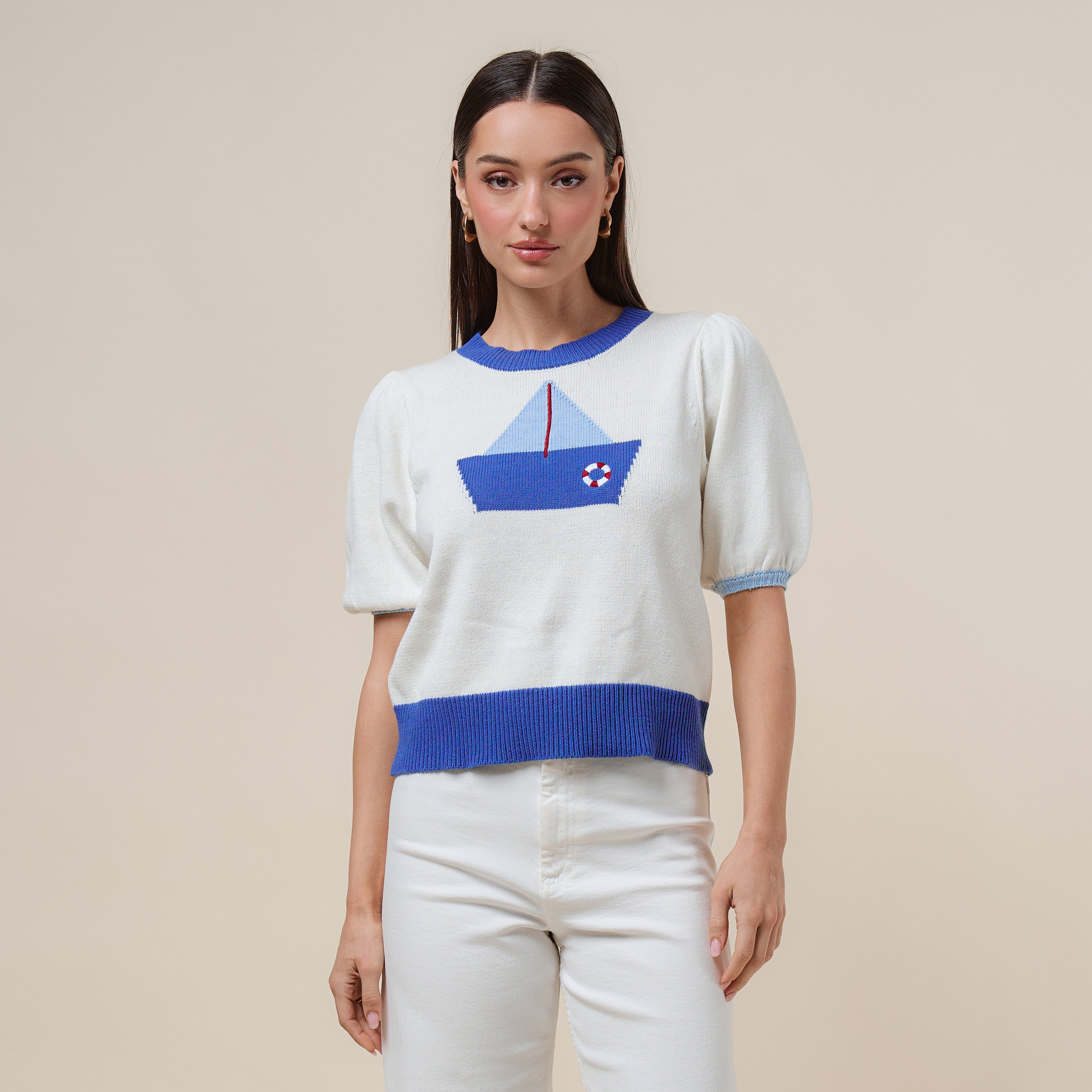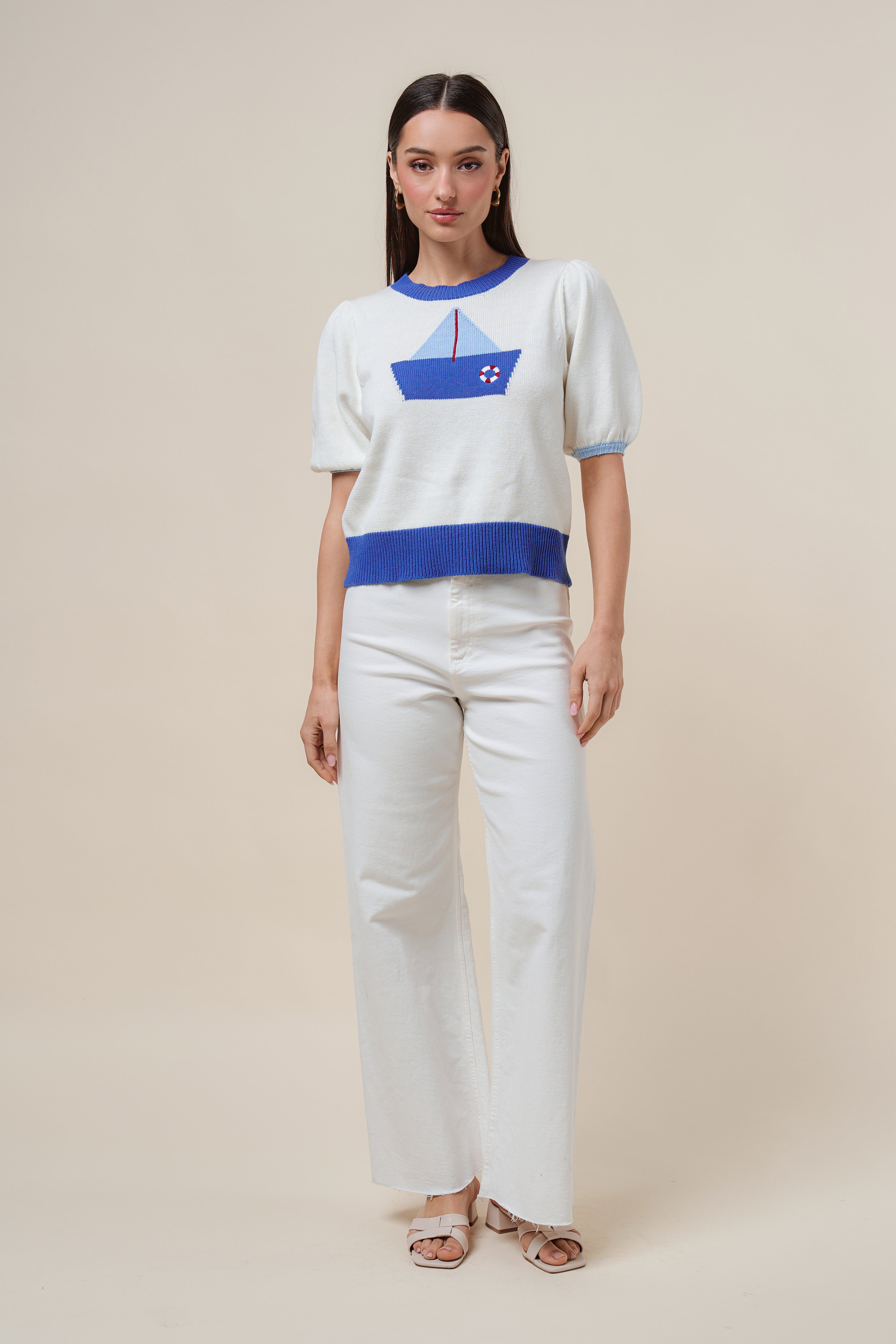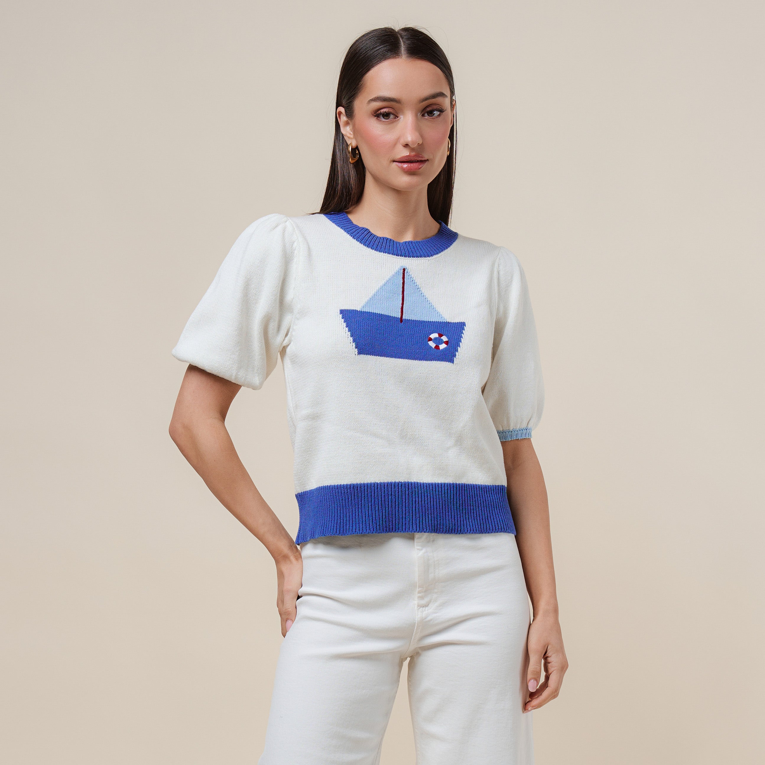 Sailboat short sleeve sweater
